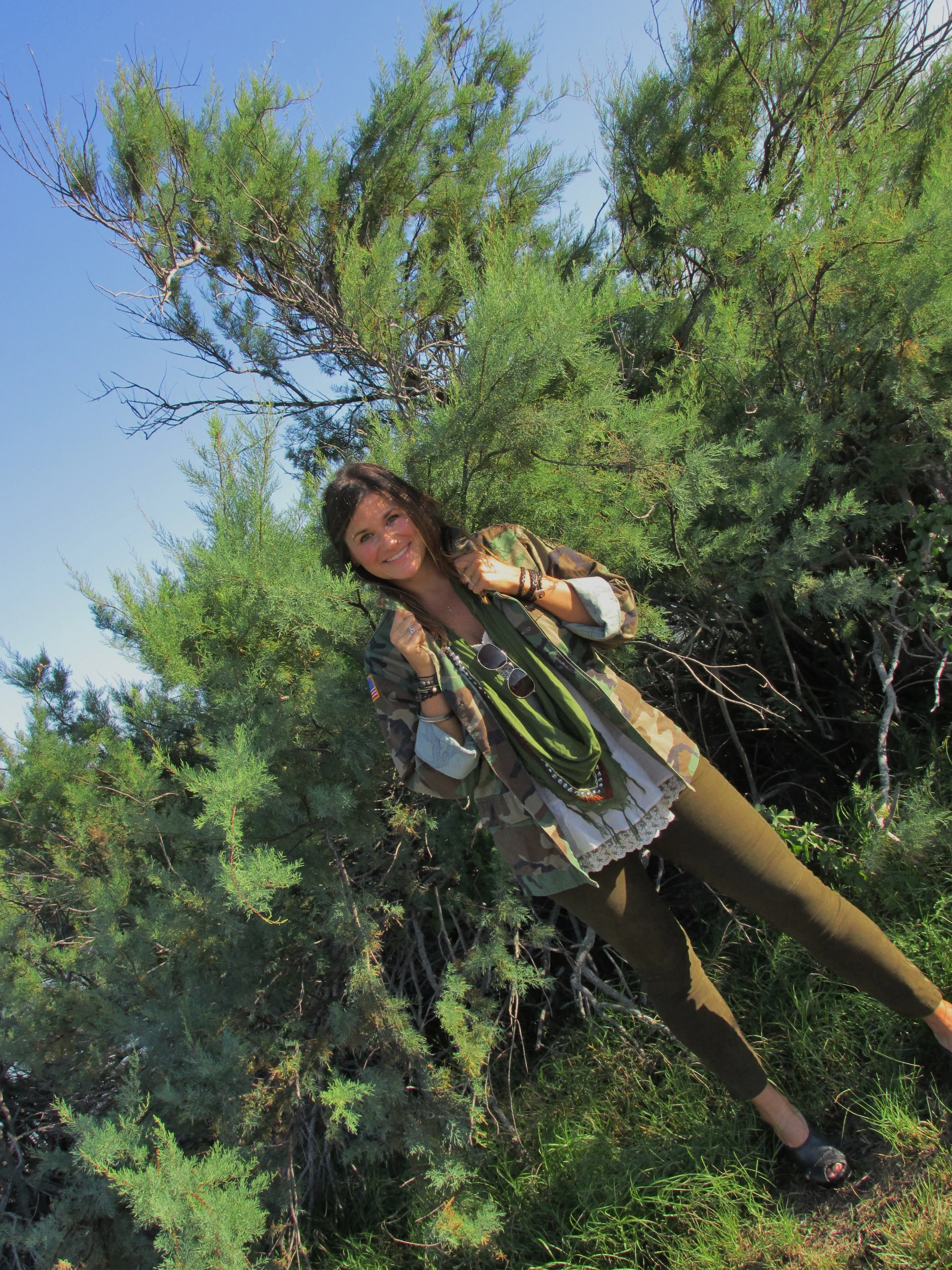 Military inspired fashion has been reappearing year after year and for good reason. I love the button details, the color army green itself (I have 3 army green jackets), and structured garments mixed with unexpected feminine pieces. I really dig that anyone can wear the look the way that fits their individual style. This season, a whole new level of military fashion was thrown on the table. I don't know about you, but when I first got a glimpse of Camo on the runways, I was a little fearful of the look and how it would be interpreted by women everywhere. I feel that Camo has the potential to go really wrong really fast! I also believe that when worn with the right pieces it can, in fact, be a great addition to your fall wardrobe. I knew I wanted something Camo for the season, because it would mesh perfectly with my style, but I had to find the right piece to know if it was really for me or not.