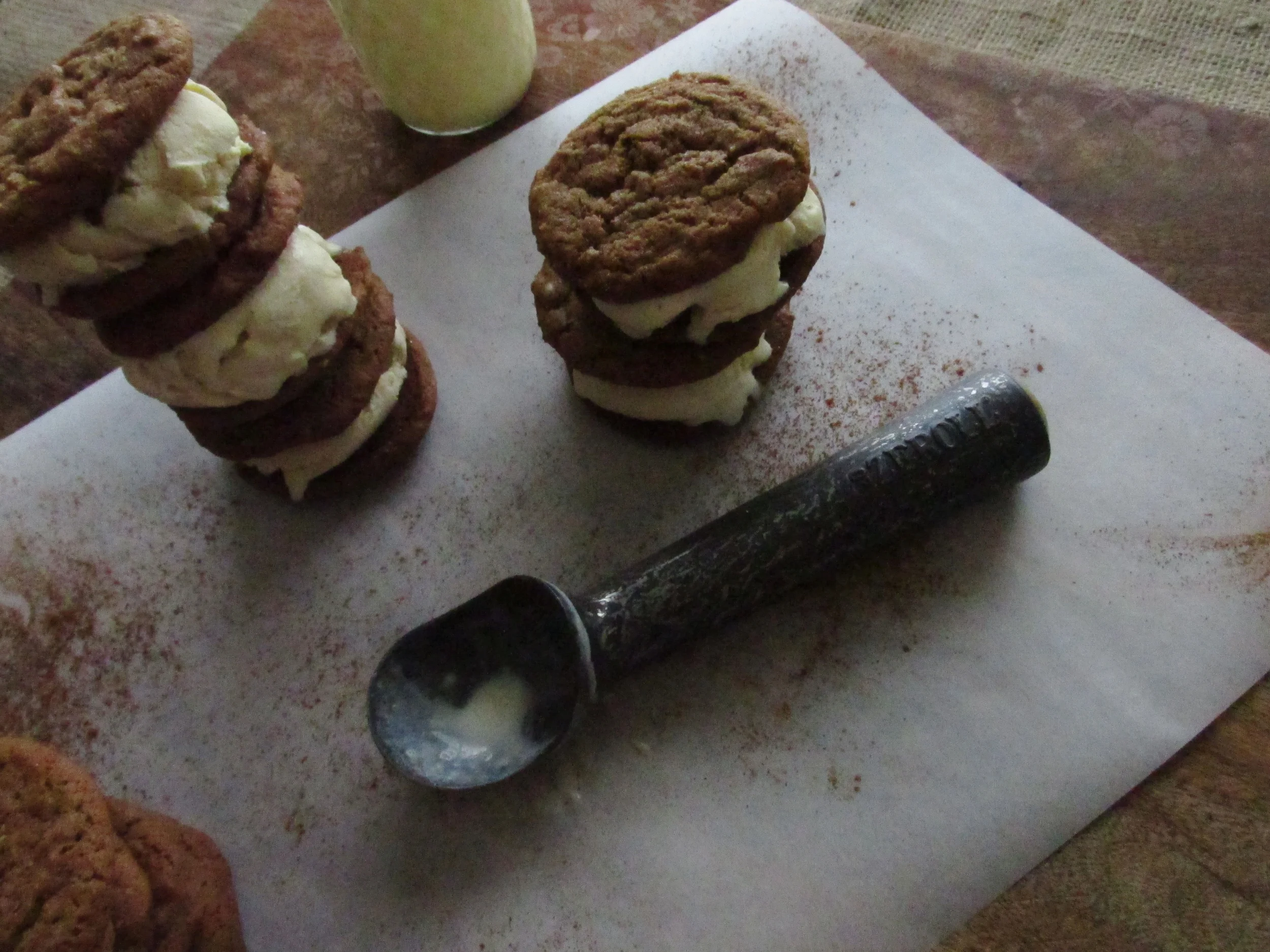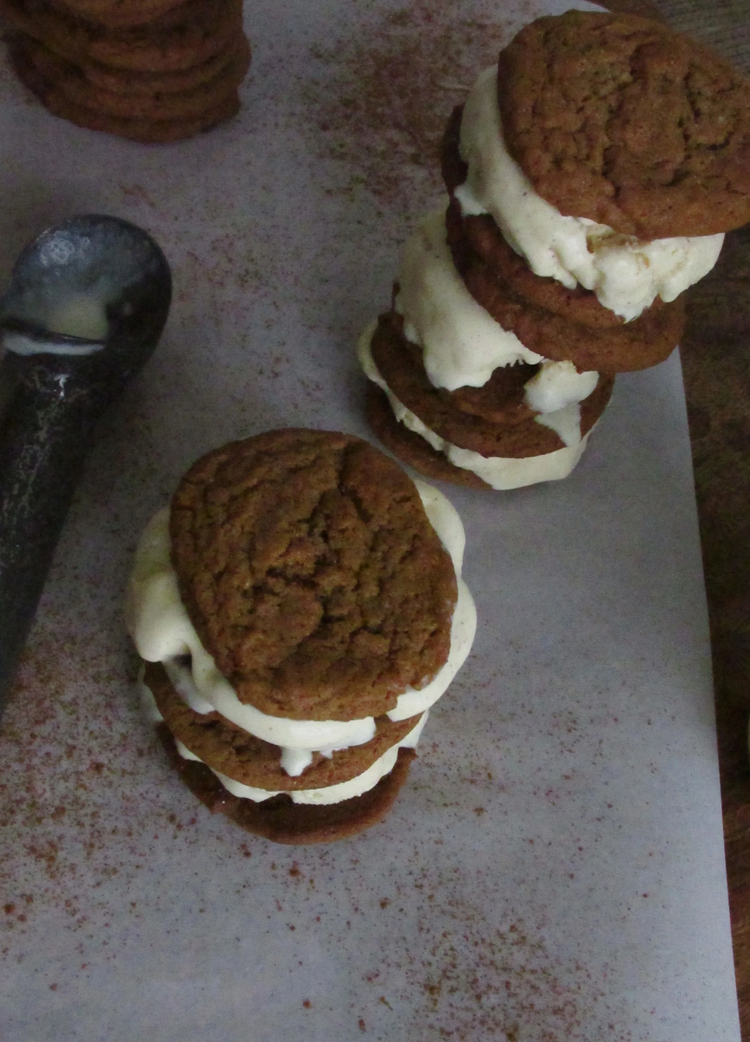 Egg Nog ice cream that's what, sandwiched between two chewy Ginger Molasses Cookies. Whoa...prepare to have your mind blown!