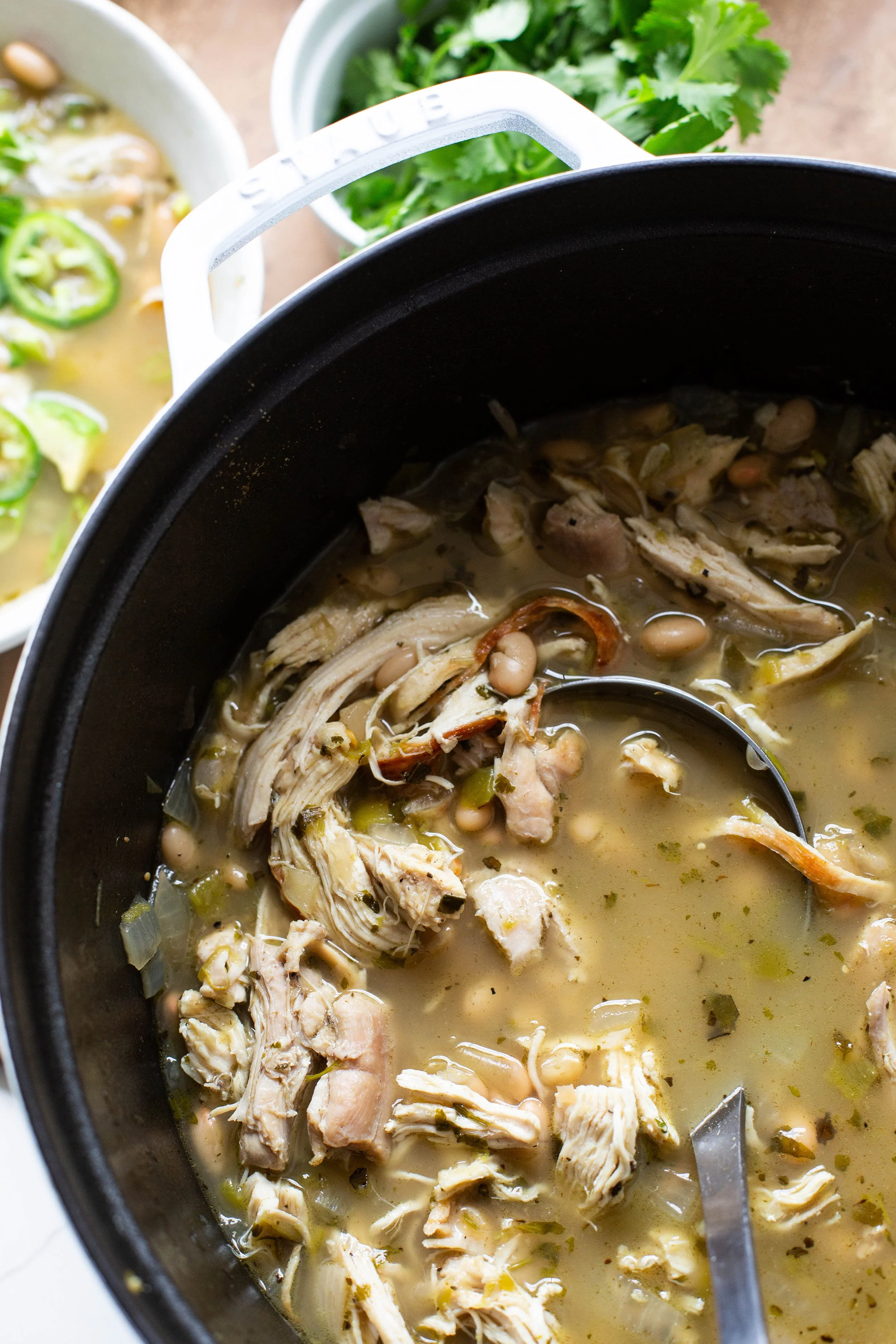 Do you need a one pot meal in your life like I did this week? Between building twelve wooden tables, Canean going out of town, and my dad coming in town, a one pot meal was a life saver this week. Since it's fall technically, even though the Louisiana weather refuses to admit it, I made one of my favorites. Healthy white bean chicken chili is one of my favorite go-to weeknight meals in the fall because it's easy and really, really good.