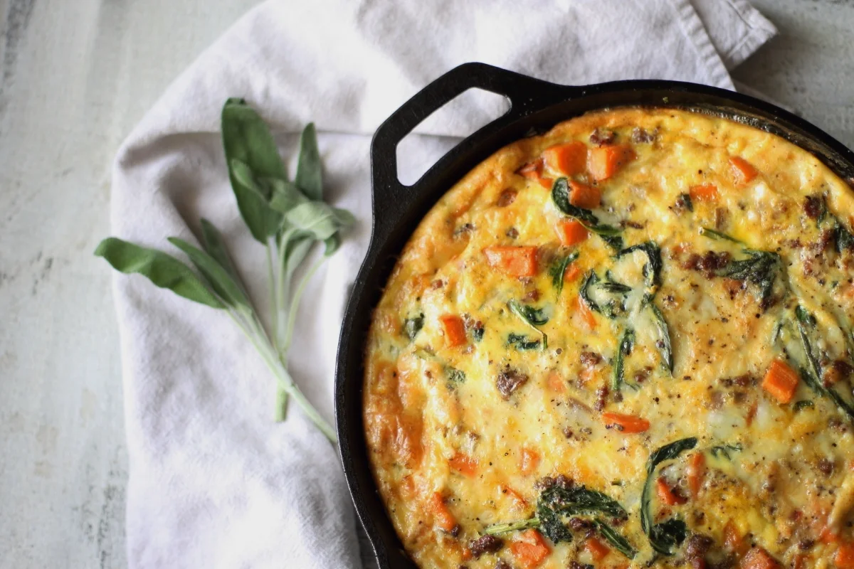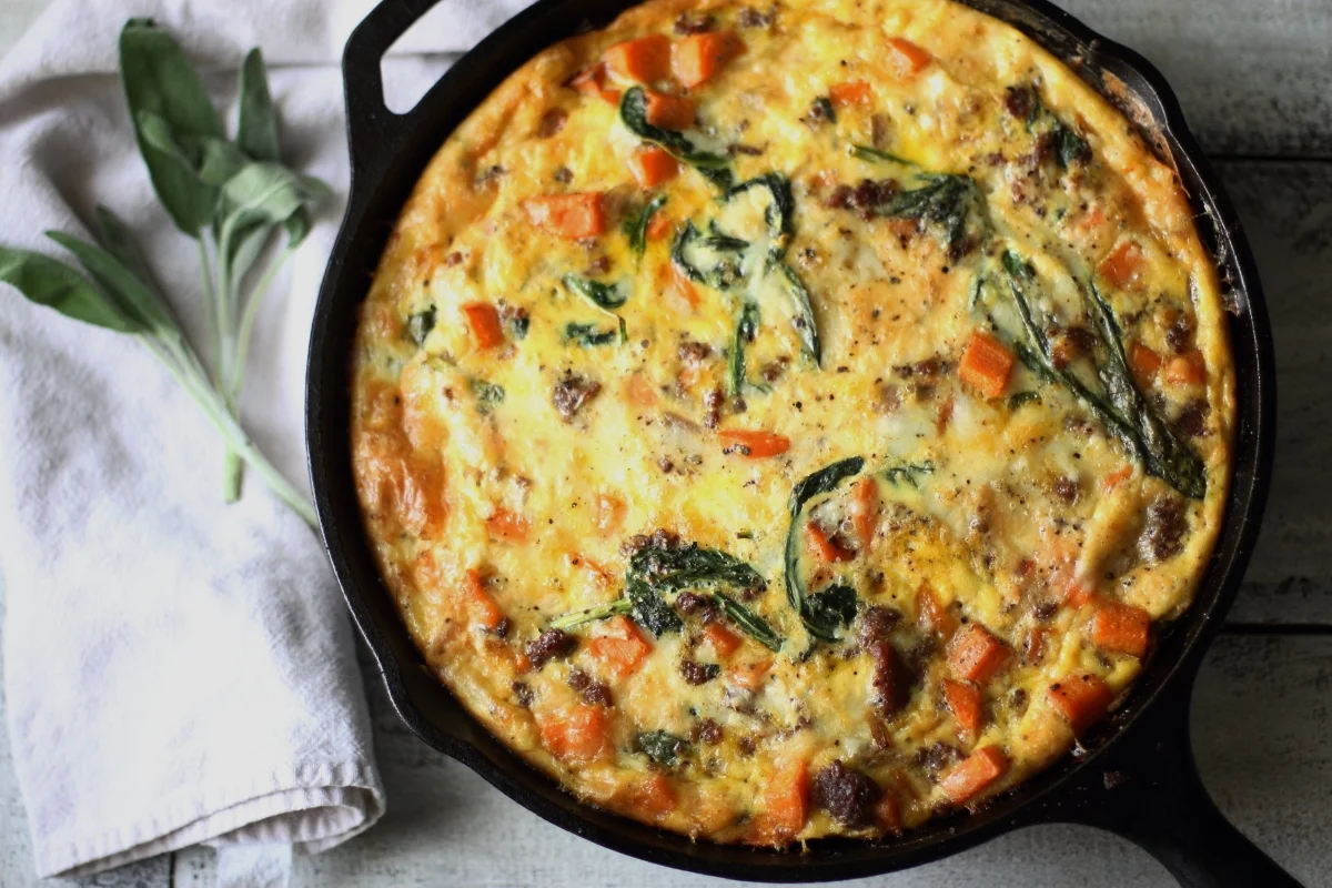Hi, it's me...Leigh Ann, the girl who disappeared on ya for a couple of weeks. I know I am horrible and you have probably been starving because I have not been posting my recipes regularly...or maybe you actually can survive with me, but I don't like to think about that. So let's pretend your life hasn't been the same without my usual posts to keep you company. K? I am here to feed you today, and the recipe is really good, so maybe you can forgive me, just this once. I have the perfect brunch for your Thanksgiving weekend to make you a rock star in the eyes of all of your houseguests. My sausage, sweet potato, and sage frittata is super easy, you will have most of the ingredients already, and it will knock everyone's socks off in the taste department.