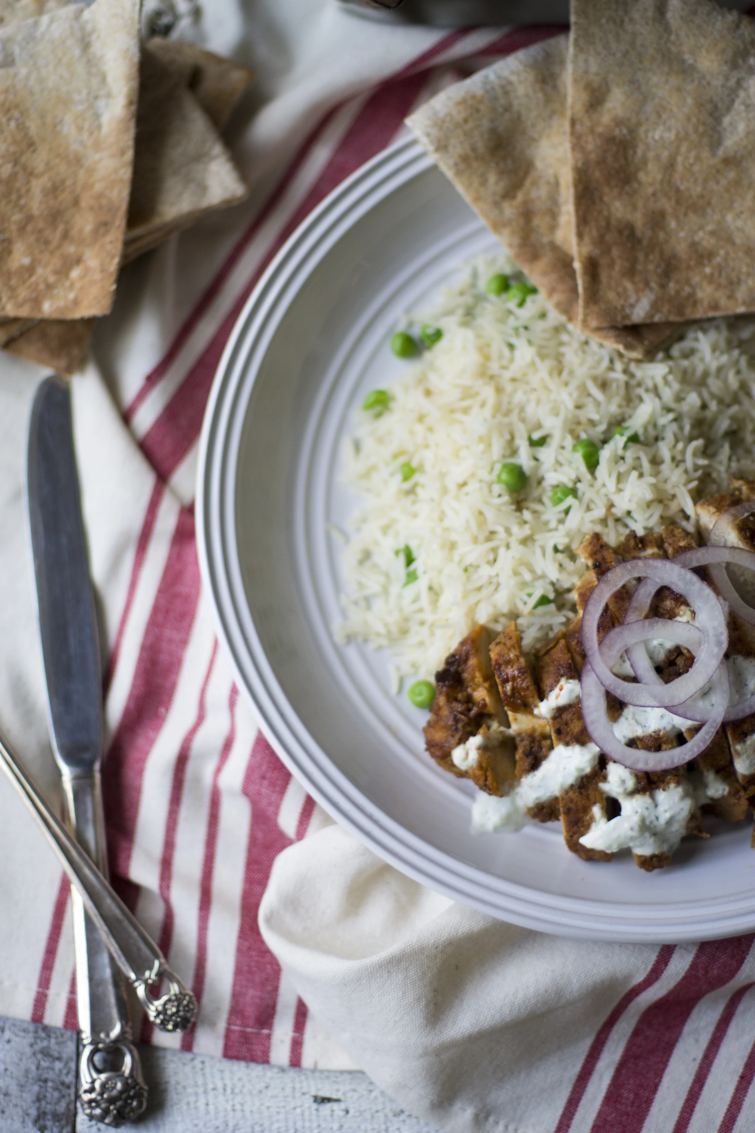 With all of the traveling that I have been doing over the past six weeks, I feel like I have not been eating the best for my body and this week I am back to cooking every night, even if I still plan on sneaking a cookie or two here and there...because it's December and you can't not eat cookies. And first up on the menu is this chicken schwarma over Greek rice. You gotta make it!