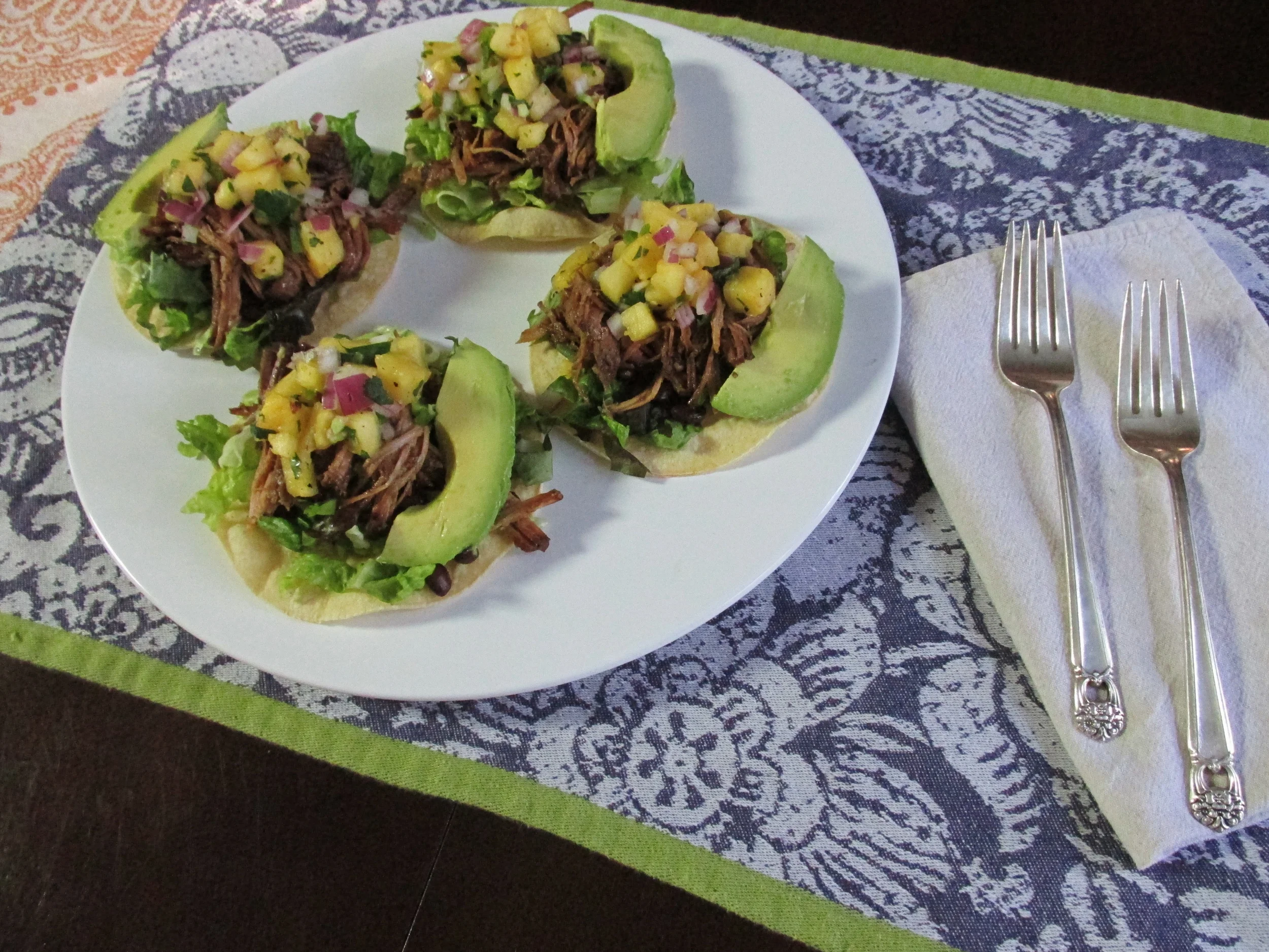 Crock Pot Jerk Pulled Pork with Pineapple Pico de Gallo Tostadas (and what to do with the leftovers)
