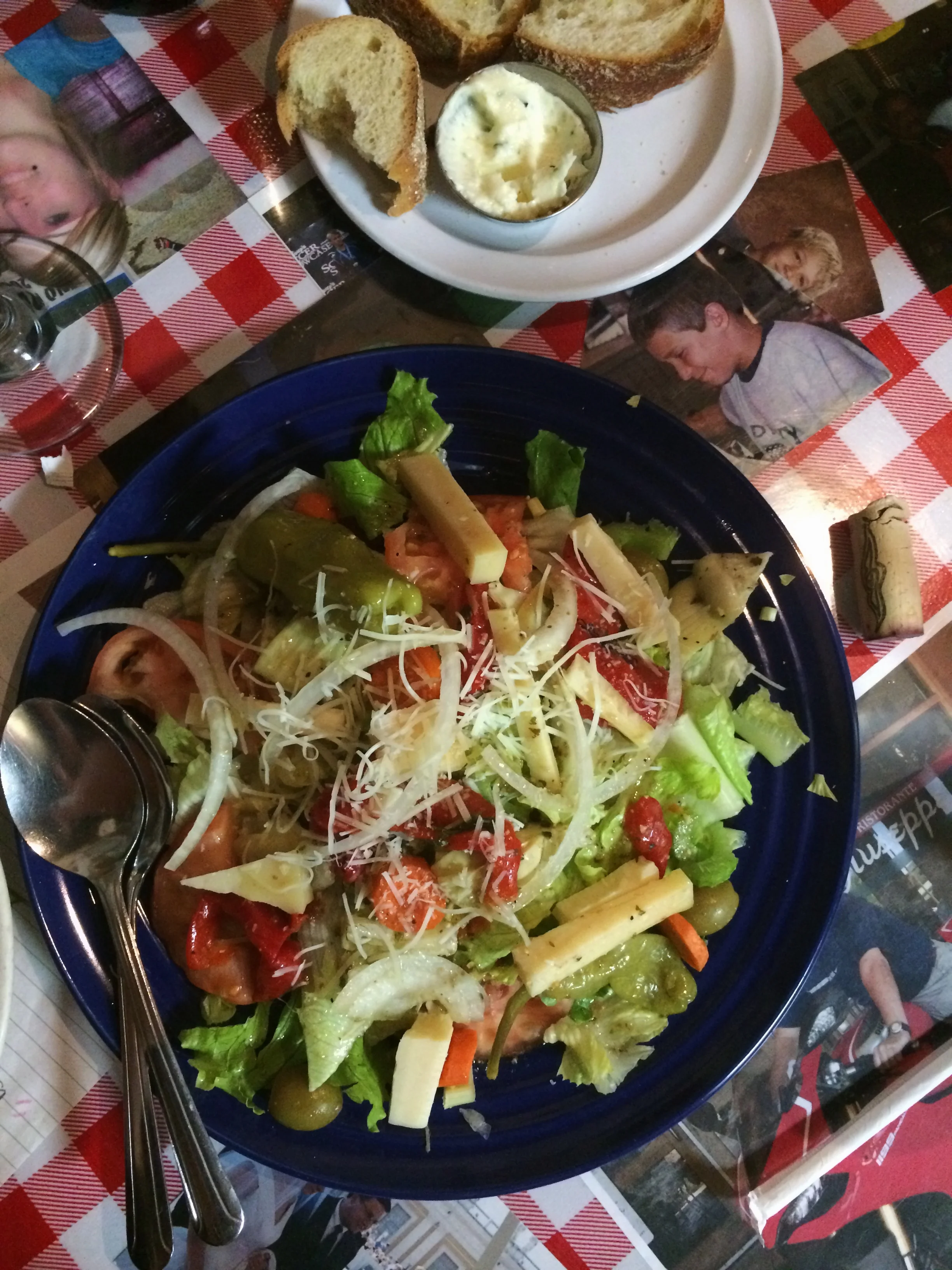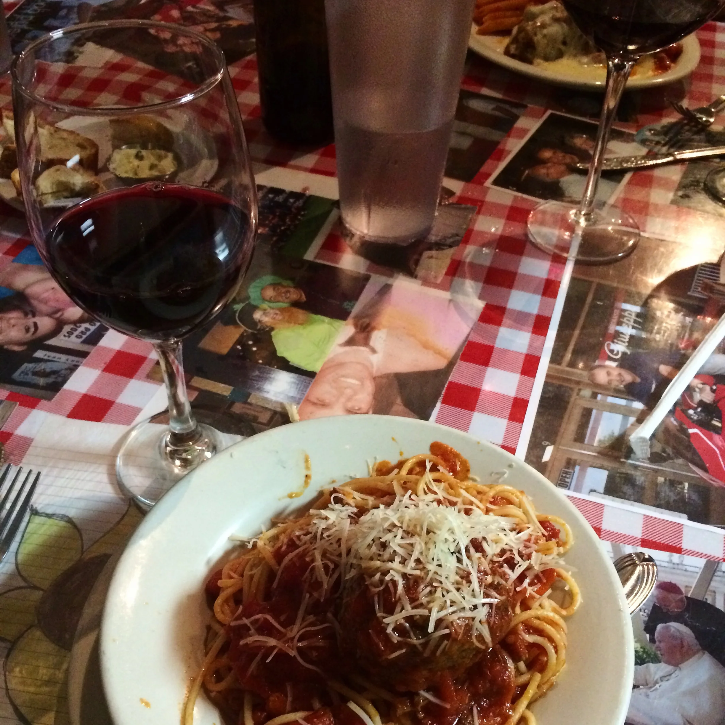 We started with a smoked provolone Italian salad, bread with garlic butter, and I of course opted for spaghetti with a meatball, because y'all know I can't resist that meal especially if it's made with homemade pasta! It was divine! We left bellies full and smiles on our faces.