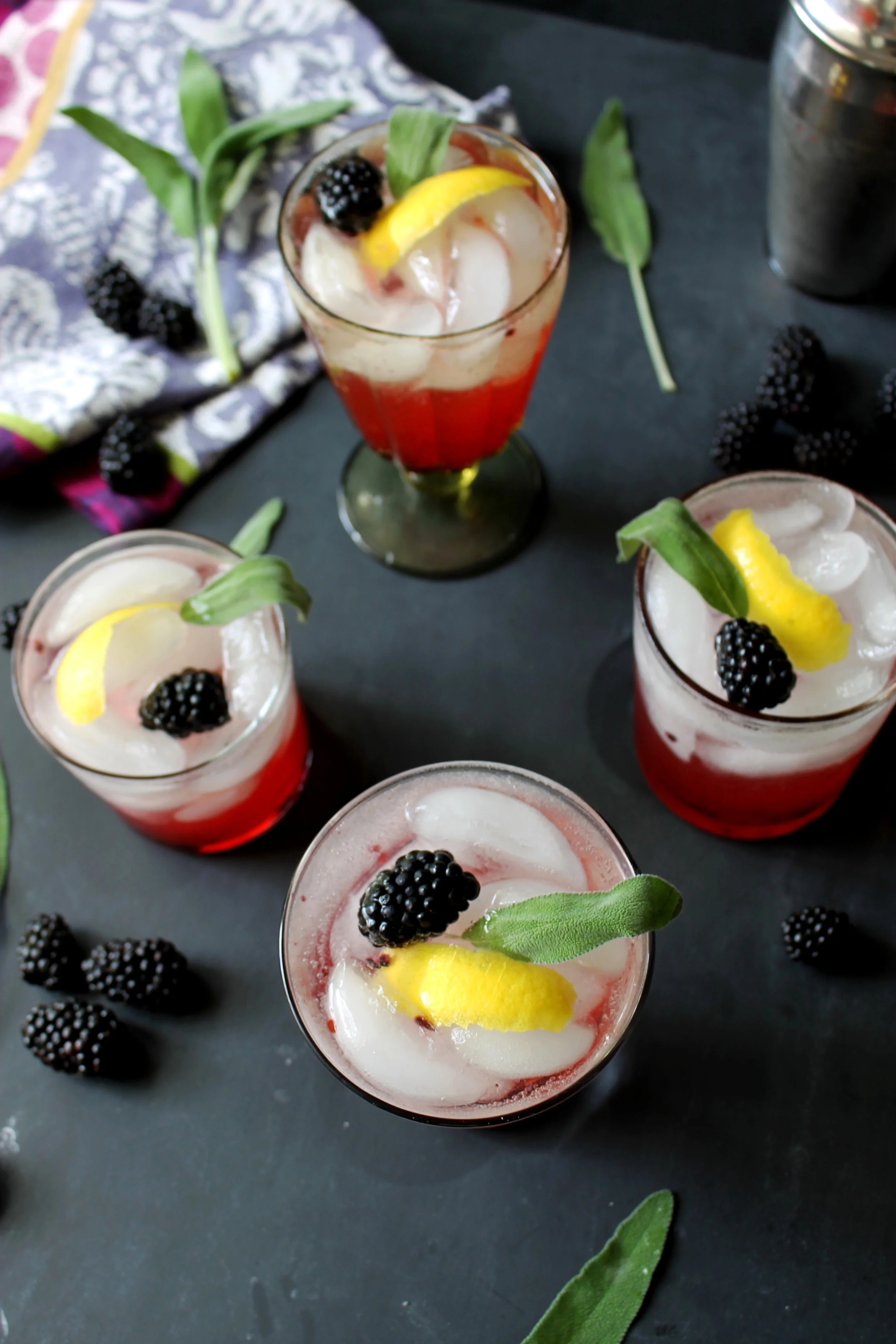 - Garnish with fresh blackberries, a sage leaf, and a piece of lemon rind that you twist over the glass before dropping it on top of the drink.