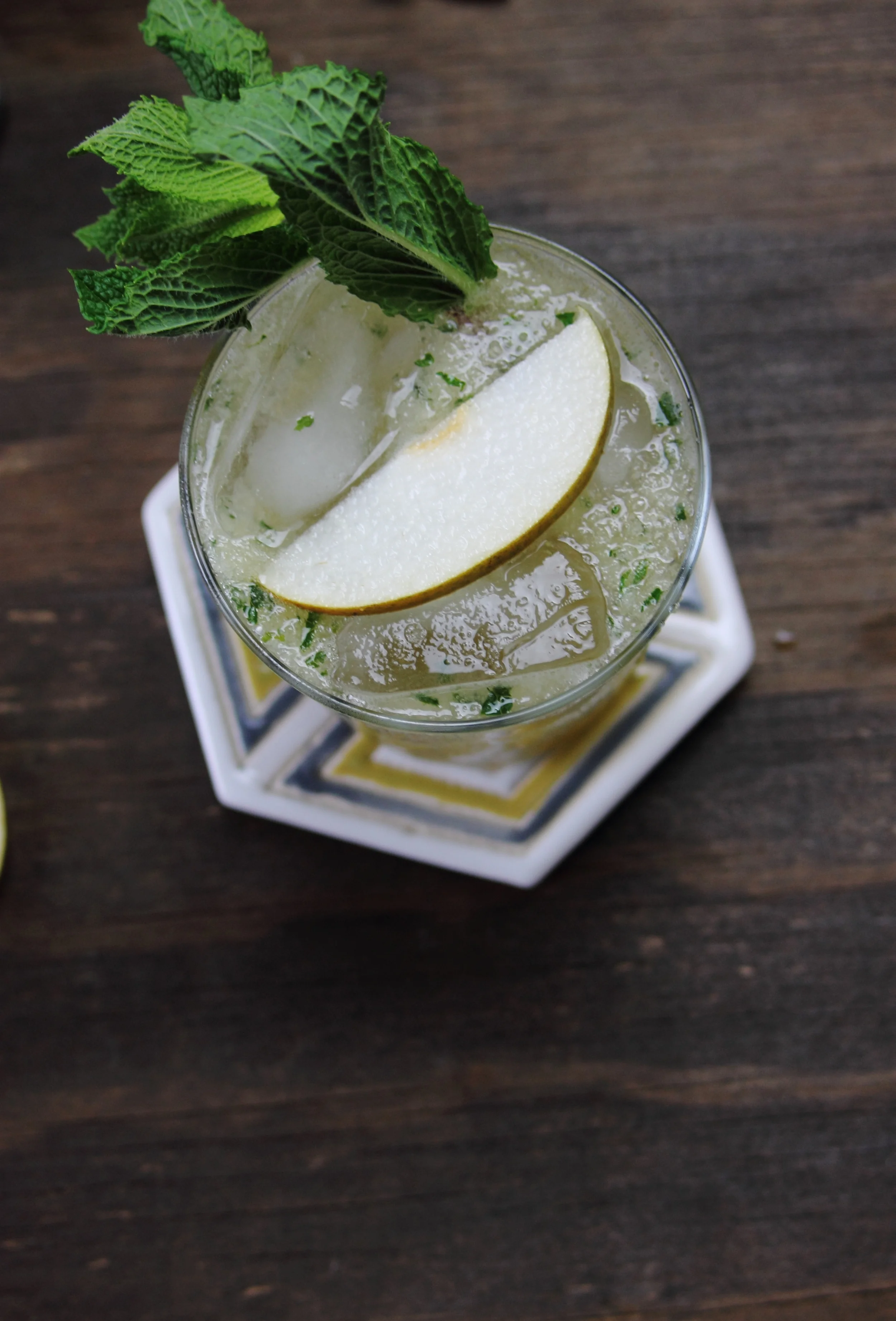 It's bourbon month so I figured that I better get on board and make you people a cocktail. Last week whiskey, this week bourbon...what is happening to me? Regardless, this week has been cray cray to the second degree. I have seen Canean maybe for thirty minutes each night before we both crash and I have been operating on go mode since Monday. An Asian pear and mint bourbon sparkler is just what the doctor ordered and I plan on drinking one (or two) of these bad boys tonight to celebrate tomorrow being Friday.