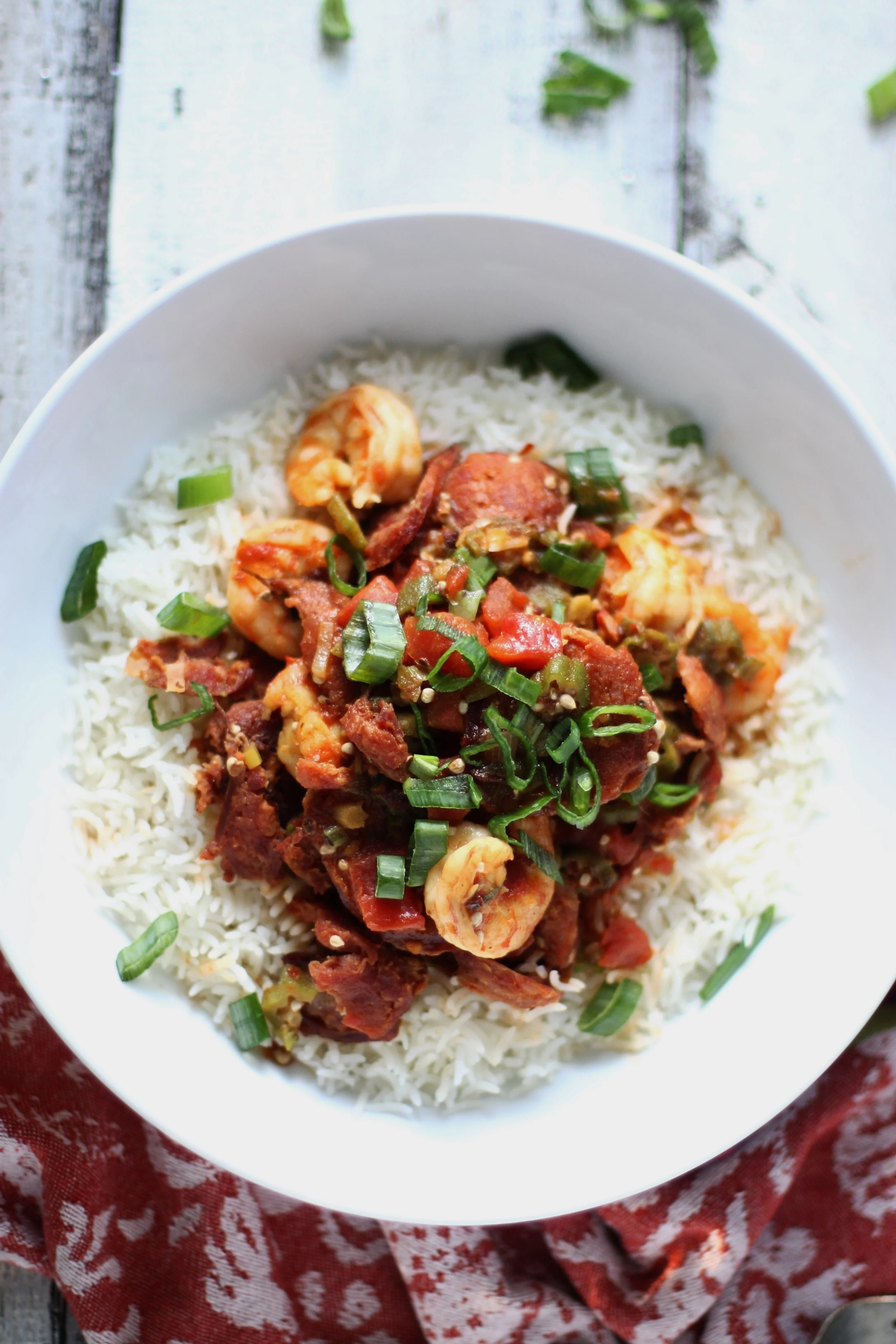 It's spicy and full of so much flavor and is perfect served over rice, it really encompasses yummy Louisiana flavors in one dish. It's easy and the clean up is quick because it's all made in one big pot.