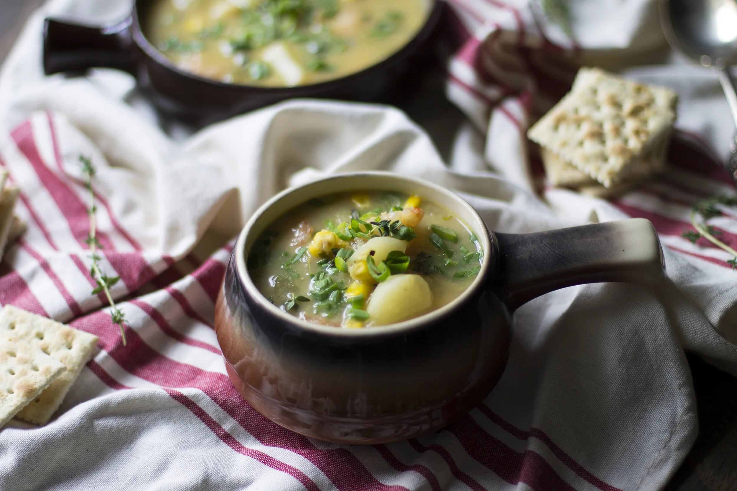 I love shrimp and corn chowder, and it might be Canean's favorite soup to eat! But usually it is so packed with heavy cream and butter that I rarely indulge because quite frankly I'd rather spend my calories elsewhere than on one bowl of soup! I figured it can't be that hard to make an at home version a lot healthier, so that is exactly what I did!