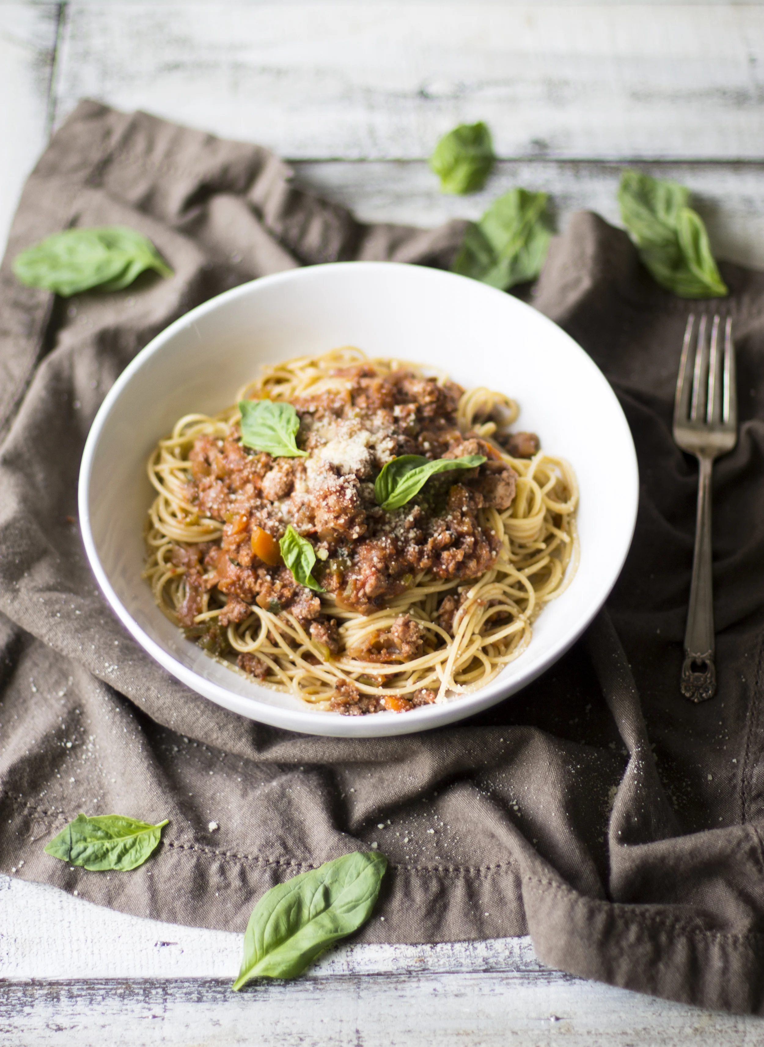 Oh right, back to my healthier bolognese! Because I cannot for the life of me give up my pasta, I often times find ways to cut a few calories here and there so I can feel less guilty about eating it more often! I turned a traditional bolognese recipe into a healthier and lighter version that is super easy to make and just as delicious...well I don't want to be judged against that grandma in Italy, because she would cringe at the idea of a healthier version, but trust me you will never know the difference!