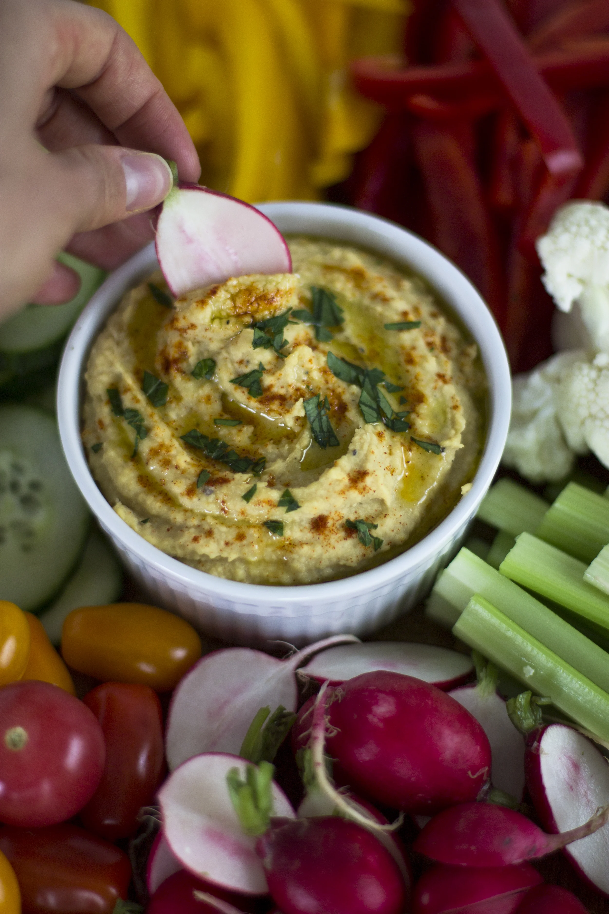I have been dreaming of going to the beach lately. It's like everywhere I turn around I see signs of white sand and ocean or someone I know is going to the beach. I usually have a spring beach trip planned at least for the weekend, but this year is probably the first year that nothing is set in stone yet. With moving, and everything else transitioning in our life, Canean and I are going to try and squeeze in a trip later in the summer probably to the Northeast Coast to try something different. With that said, I know most of you have summer vacations planned or at least some lake and pool days are going to be happening, and I KNOW, that you are all about getting those summer bodies ready to be on display. My easy classic hummus is the perfect dip to make for when the snack monster comes to destroy your hard work and is sure to keep you looking fit and feeling good right through the summer months!