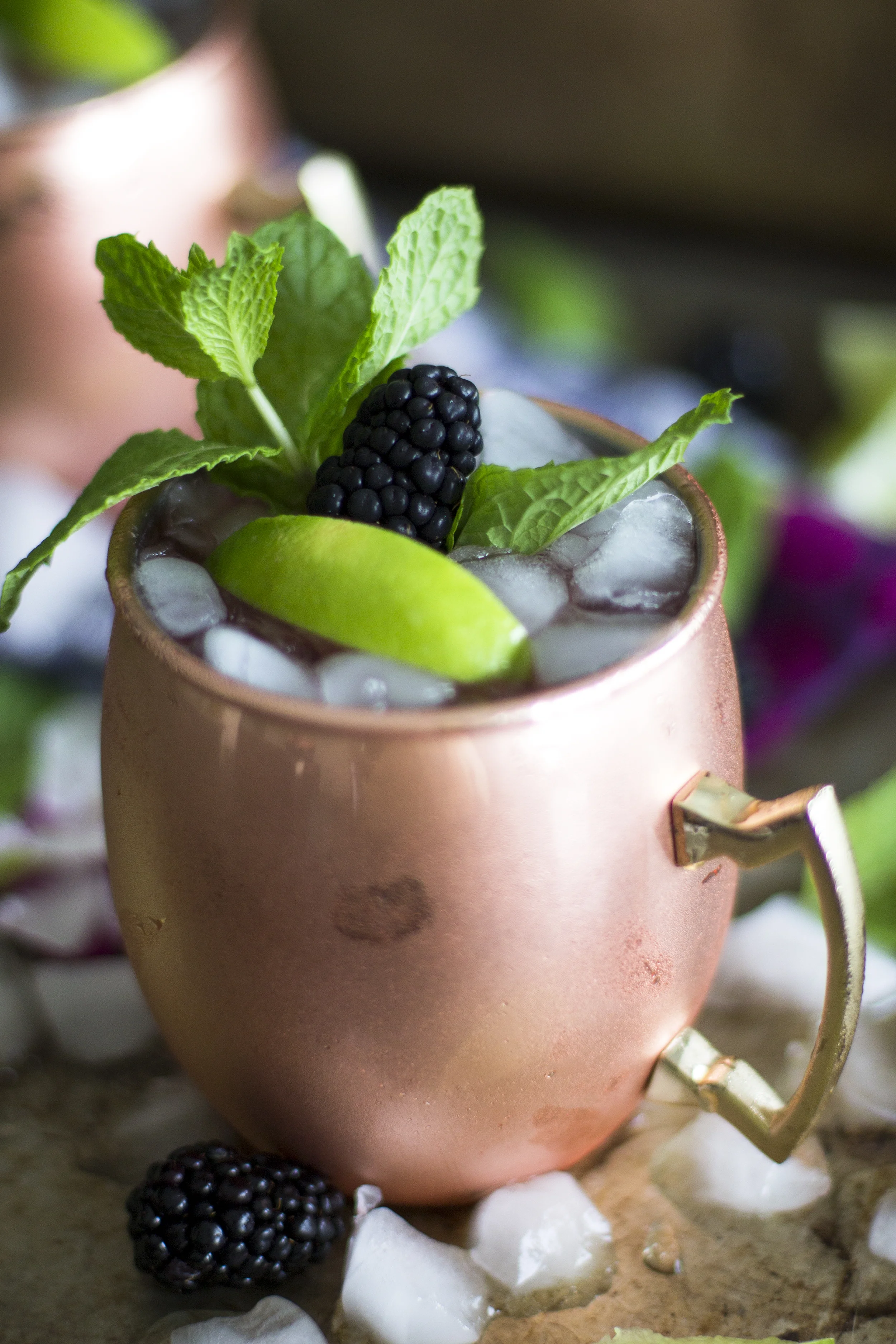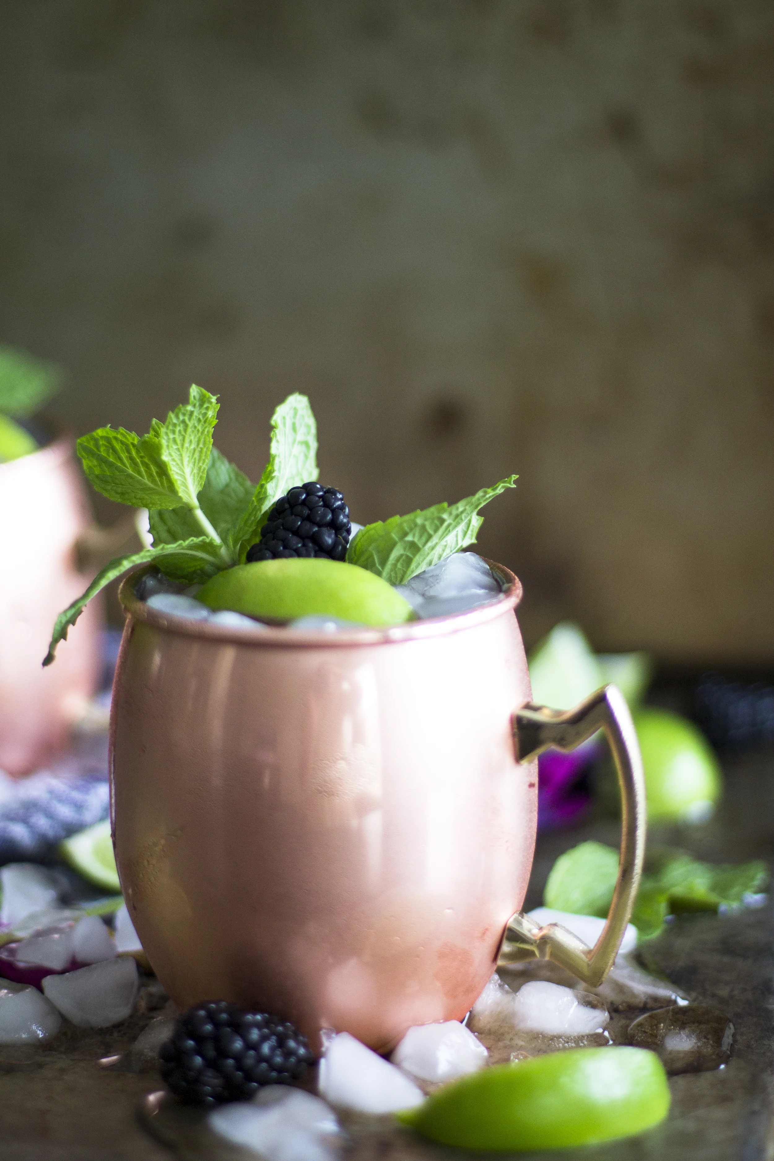 One of my favorite times of year is when all berries come into season. I can still remember being a little girl growing up in Tennessee and picking blackberries from bushes that grew in our neighborhood or on the side of the road. We would eat them all day while playing outside. They were sweet and juicy and made for perfect snacking for me and my friends. It's my mission to find some places here in Texas that I can go and pick fresh berries this year! I love picking them straight from the farm and there is something about the fresh picked ones that make them extra sweet and special! I happen to use blackberries a lot mixed into drinks because of their sweet and slightly tart flavor. My blackberry mule mocktails are the perfect Springtime drink to enjoy at any time of day!