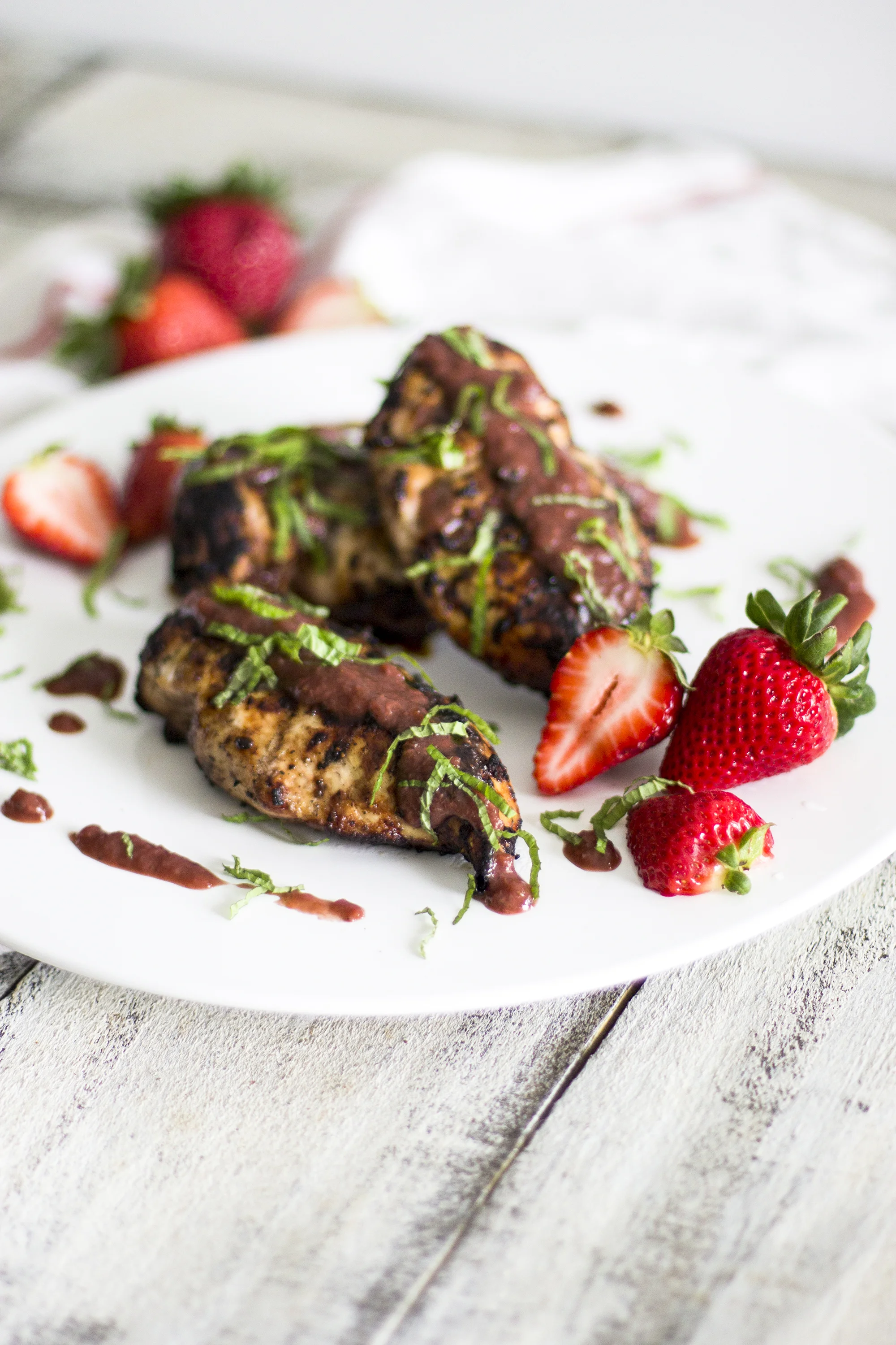 Like most people, I have fallen into a chicken rut where I find myself cooking the same recipes over and over until we are completely chickened out. This recipe is just the thing to bring your love of chicken back to life! It's sweet from the berries, tangy from the vinegar, and together mixed with the smokiness from the grill this chicken is so delicious!