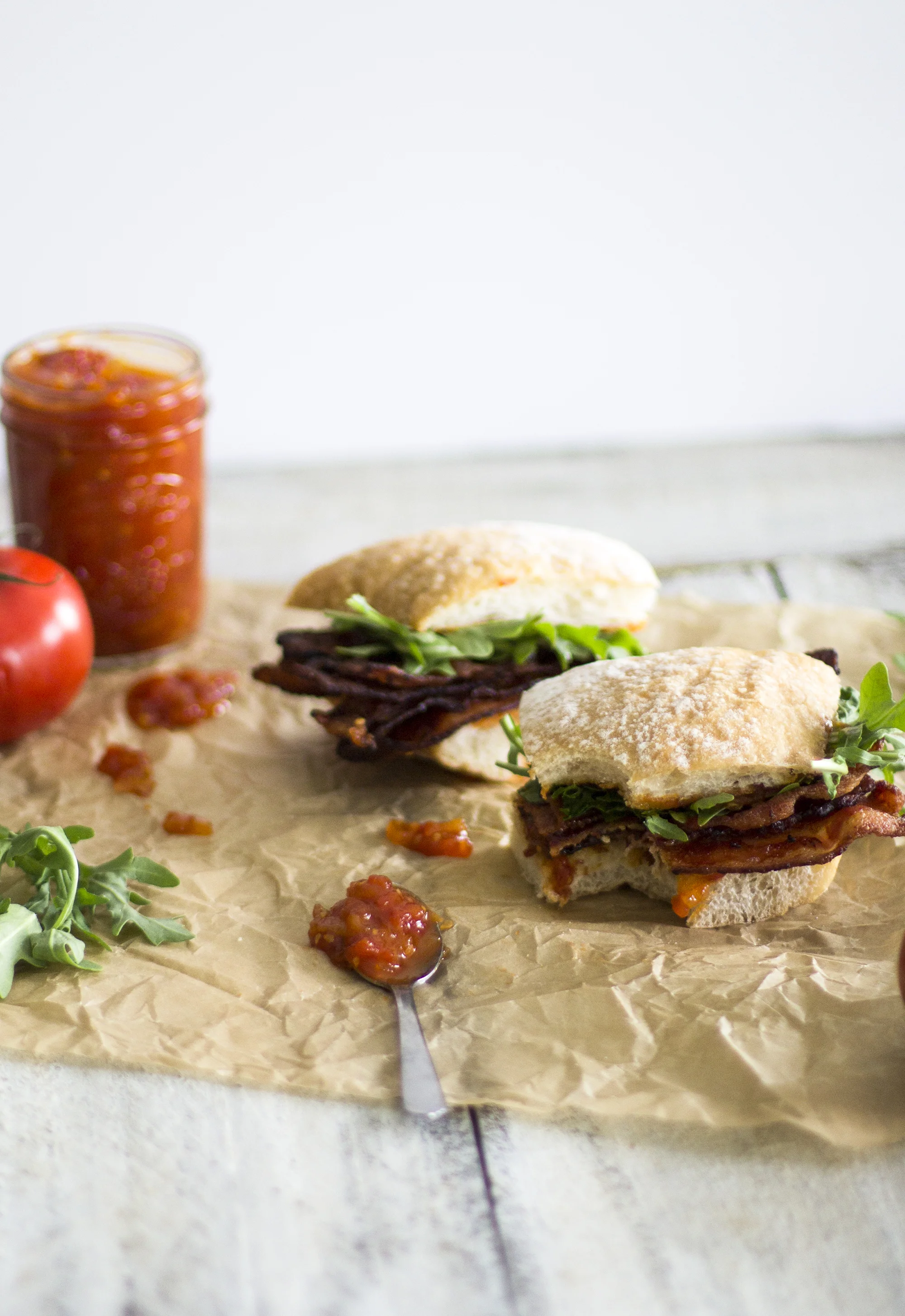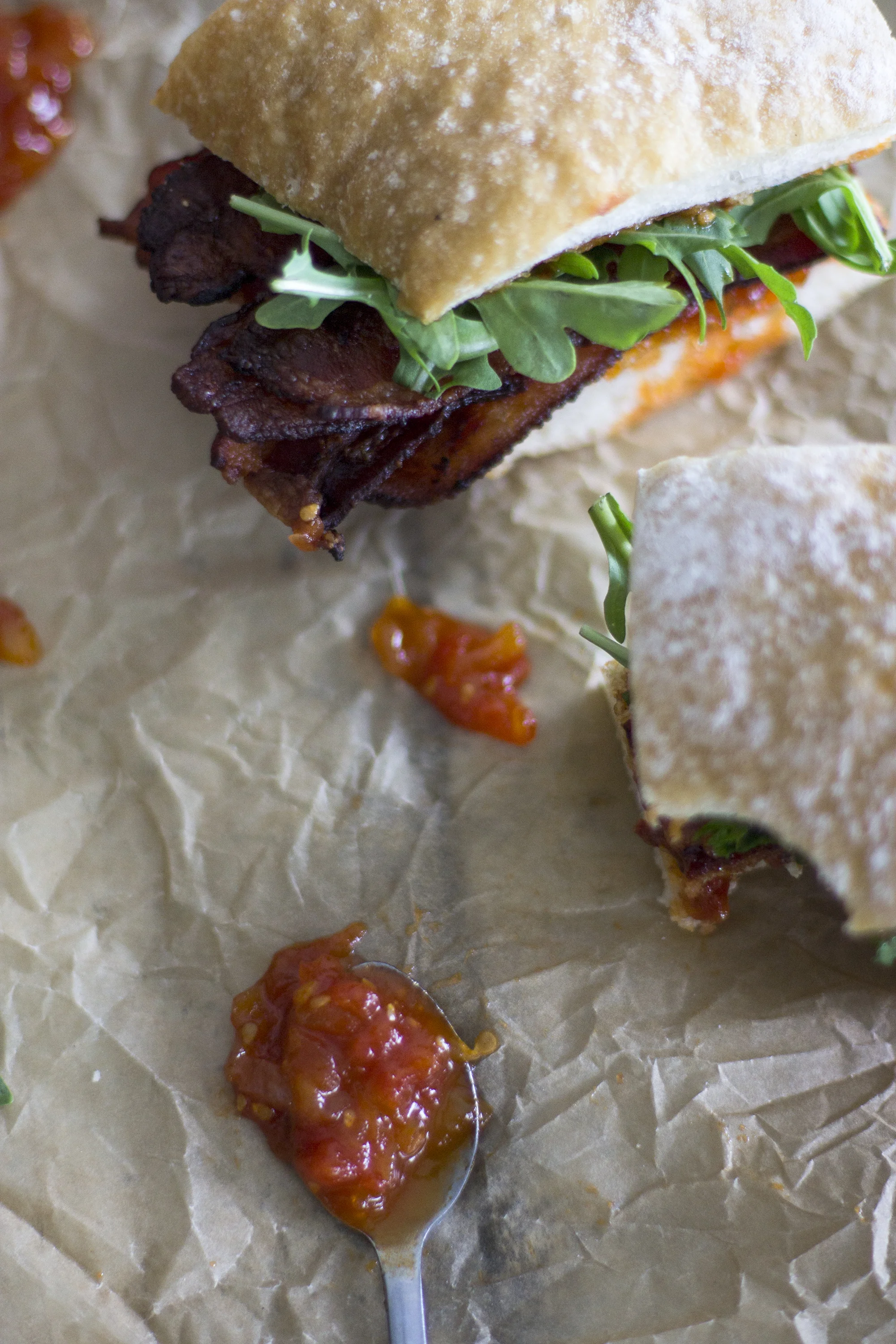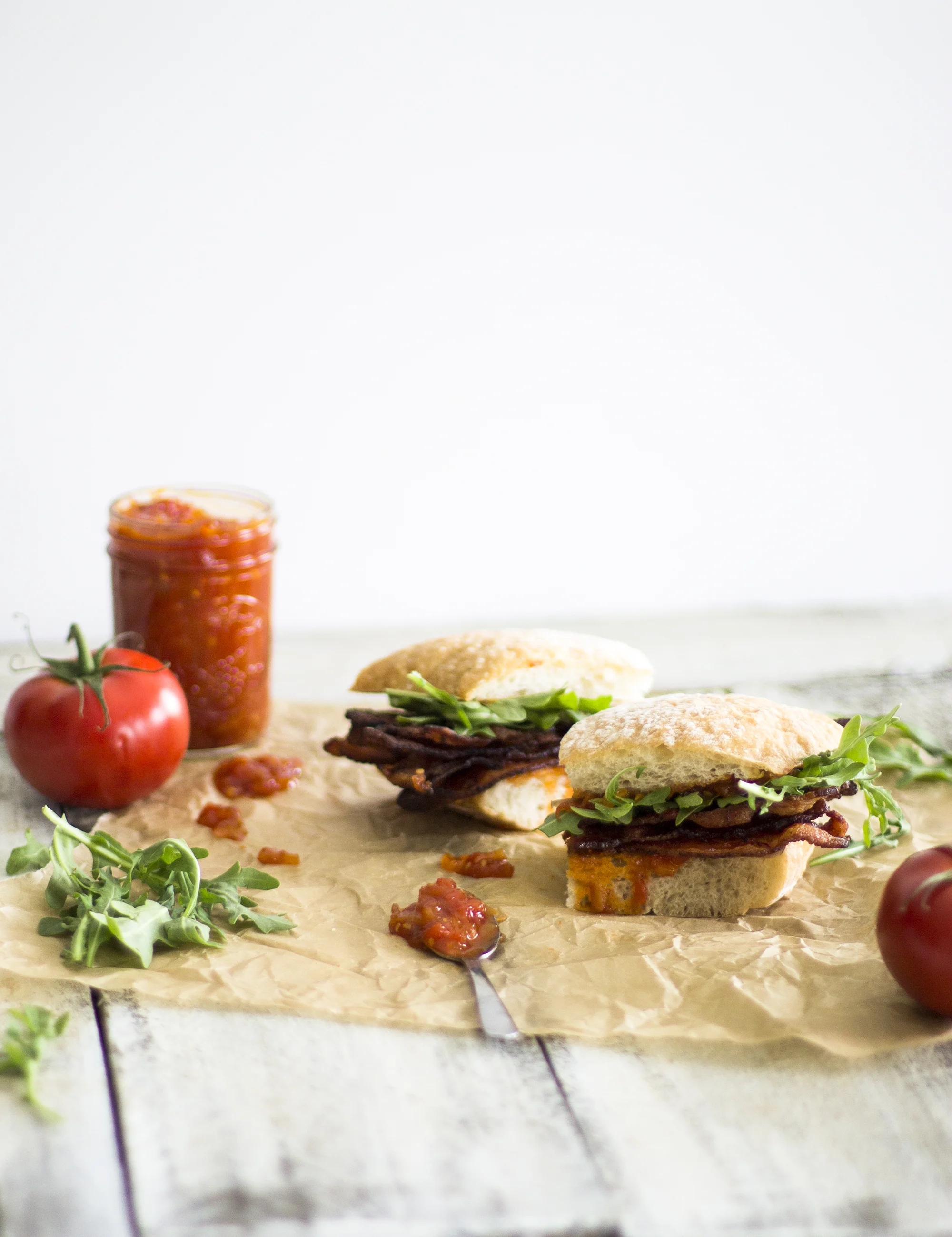 I have never met a sandwich with bacon on it that I didn't like, and I am a firm believer that bacon can make anything taste better! This sandwich is smoky from the bacon, slightly sweet and spicy from the tomato jam, and is perfectly balanced with peppery arugula to create the ultimate sandwich experience!