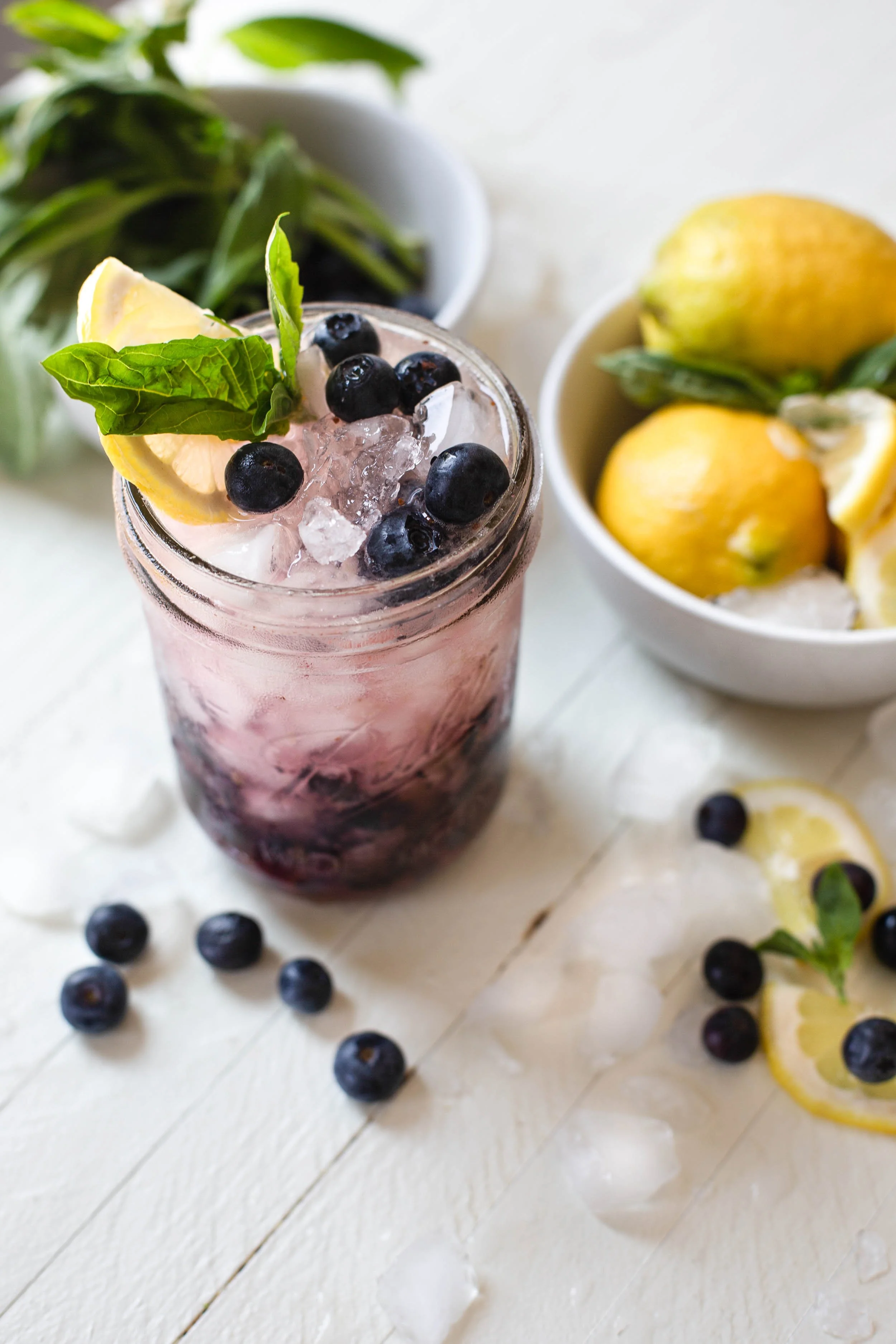 Needless to say, I still love lemonade to this day and with summer officially arriving in a couple of weeks, berries of all kinds are at their peak! And personally, I can't get enough blueberries during the summer months! I've been adding them into yogurt, salads, grabbing them by the handful, and lately I've been using them to make this refreshing drink!