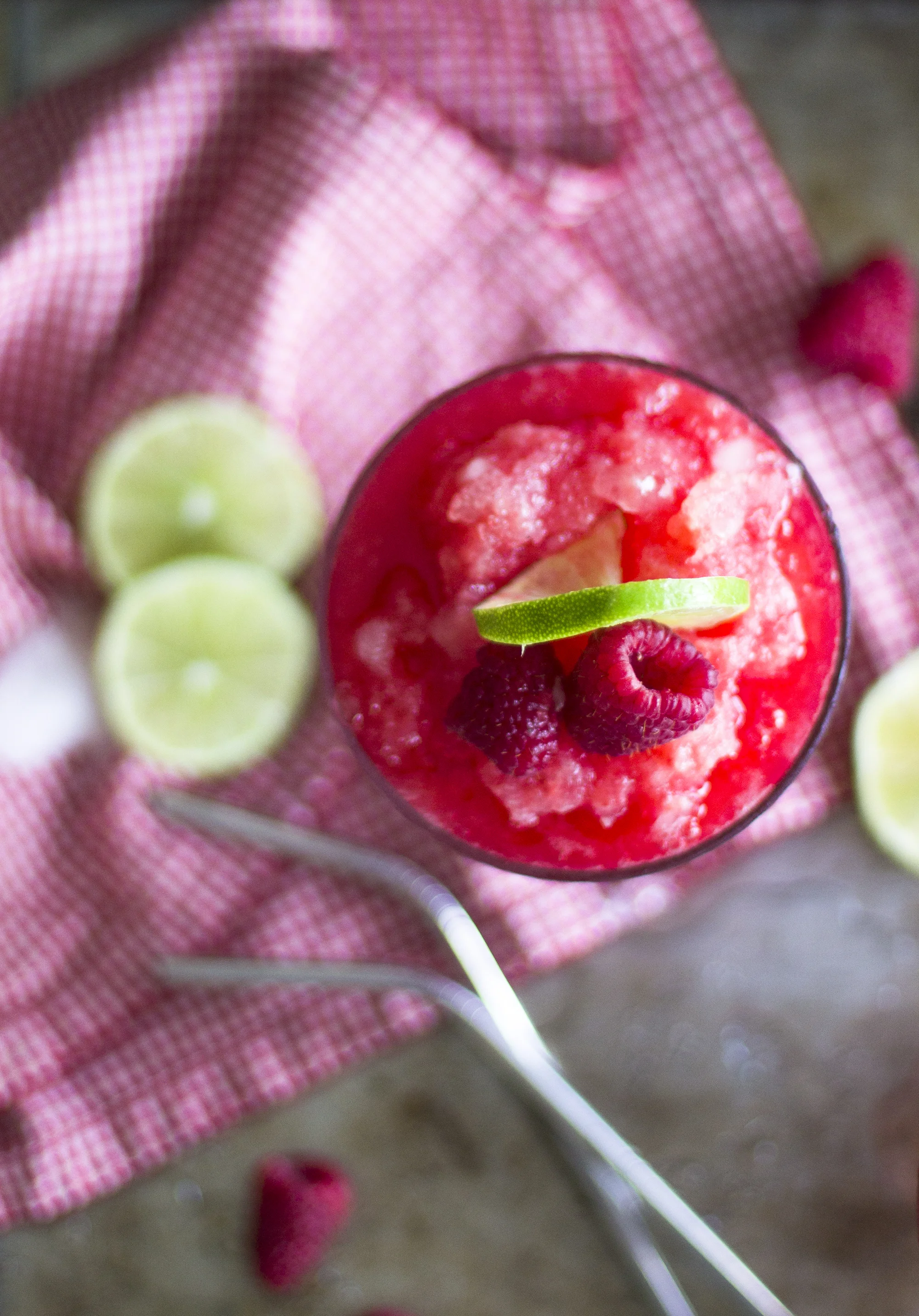 I've been planning out our 4th of July menu for a couple of days now. We have friends coming into town from Louisiana and I have been figuring out what our menu is going to look like over the weekend, including cocktails! For the 4th we are going all American and I'll be serving up ribs, homemade baked beans, corn, and slaw and I thought the perfect cocktail to accompany such a menu needed to be super summery, fresh, and fun! My raspberry and lime vodka sno cones are the ultimate 4th of July drink to serve up at any celebration this weekend!