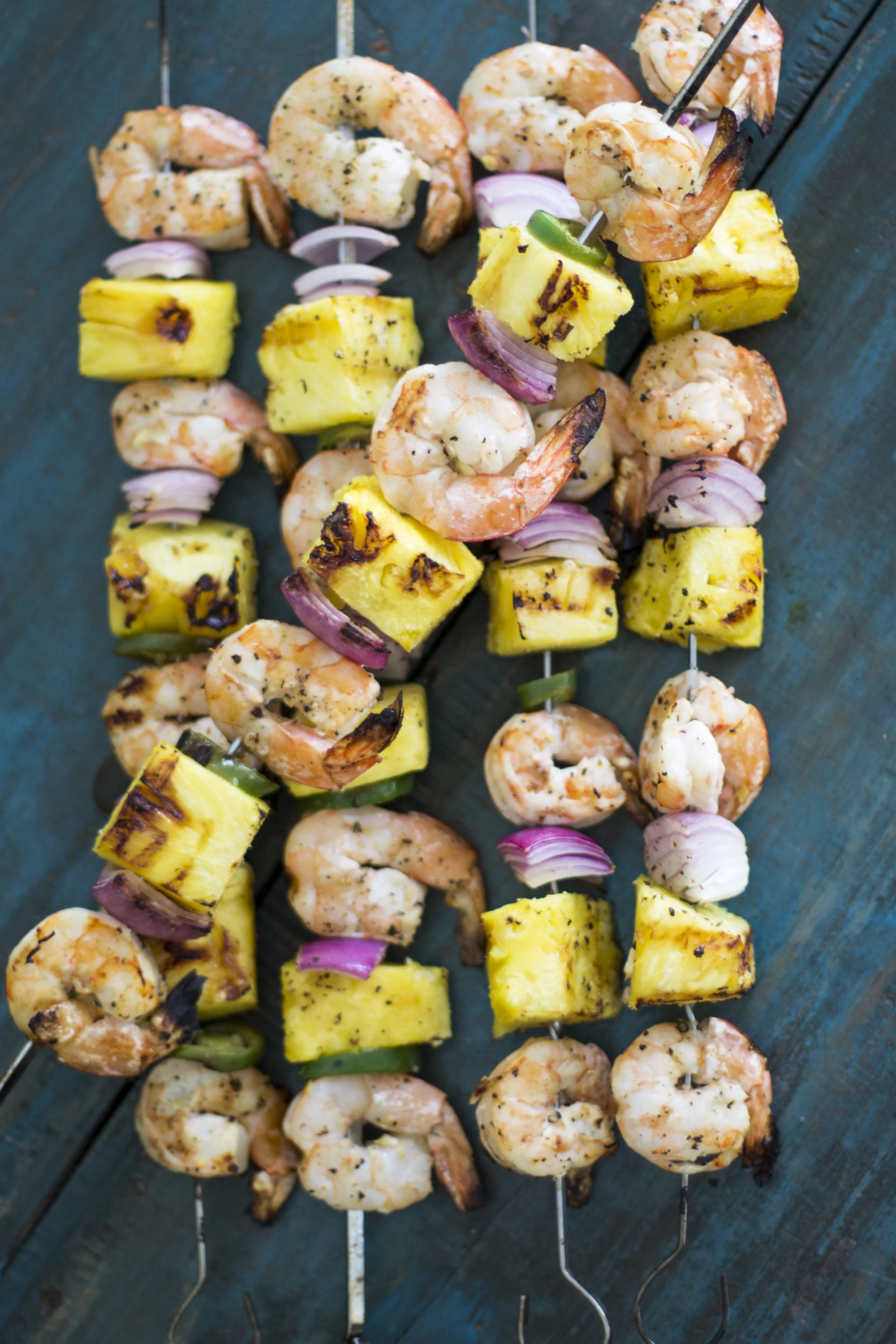 We have a few weeks left of summer and I am taking full advantage in the kitchen. I'm whipping up light and healthy meals that I can grill up for a fast dinner almost every night of the week right now. With kids back at school and vacations officially over for the year, schedules are getting busier and busier and no one has the time to worry about dinner. My grilled pineapple and shrimp skewers are super healthy and fast and you can feel great about feeding them to your entire family.