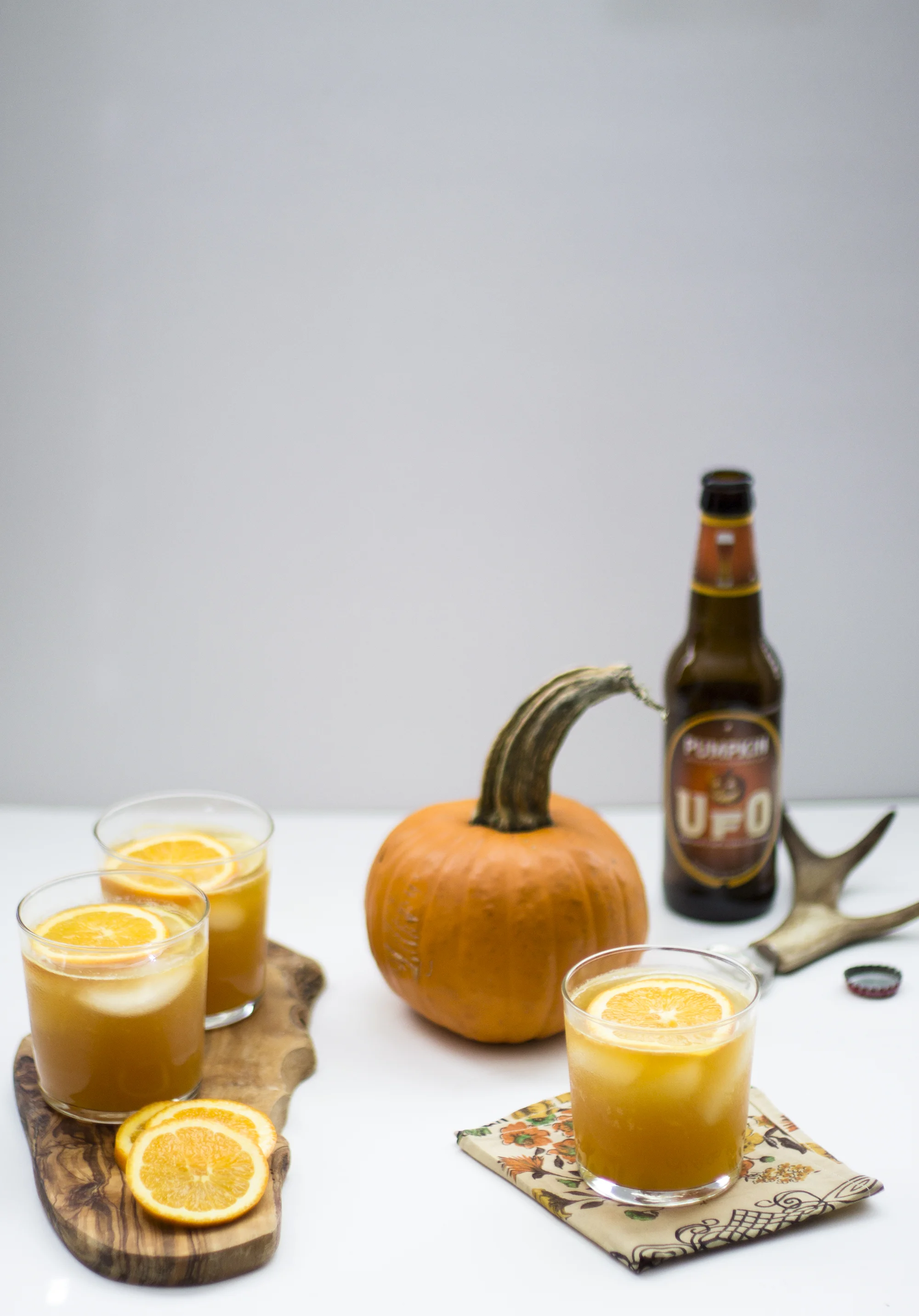 Every year I wait for fall for when I can make all things pumpkin. Everywhere I go it's pumpkin this and pumpkin that. When everything screams pumpkin, I really can't be blamed for hopping on board with this whole pumpkin palooza going on right now. When fall rolls around fall beers of all varieties are released, out comes about a bajillion kinds of pumpkin beers. And since the weather is still on the warmer side here in Texas I thought a pumpkin and orange beer shandy sounded absolutely delicious right about now!