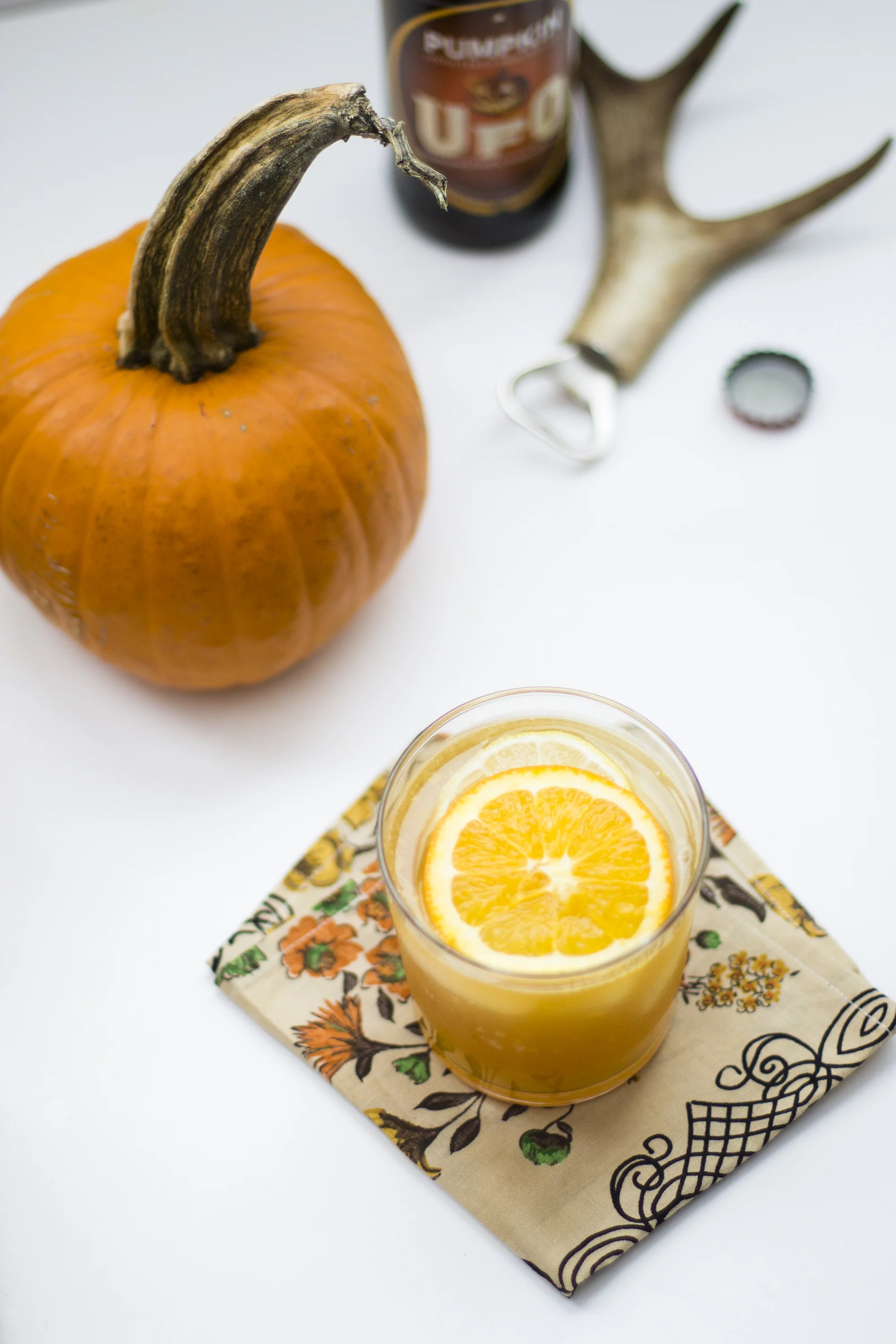 Even though I have three more weeks until I can partake in any cocktails myself, Canean has already been taste testing for me. He found a few new pumpkin beers that he likes and so I used one of his favorites to create a refreshing and tasty fall drink that you will definitely want to make over the weekend!