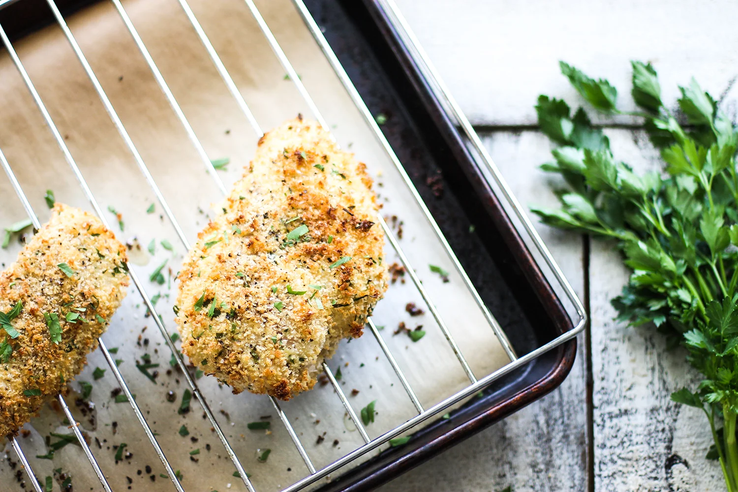 I am always looking for ways to cheat my way into satisfying my cravings. It's a trick I love to do because I refuse to give up the foods that make my belly do a happy dance! Whether it's my favorite pasta, burger, or ice cream I can guarantee I will find a way to cut some corners to make it an acceptable part of my weekly meal plan. Fried chicken is no different and because we seriously hardly ever indulge on the real thing, my easy and healthy breaded chicken is the golden ticket in satisfying my tastebuds.