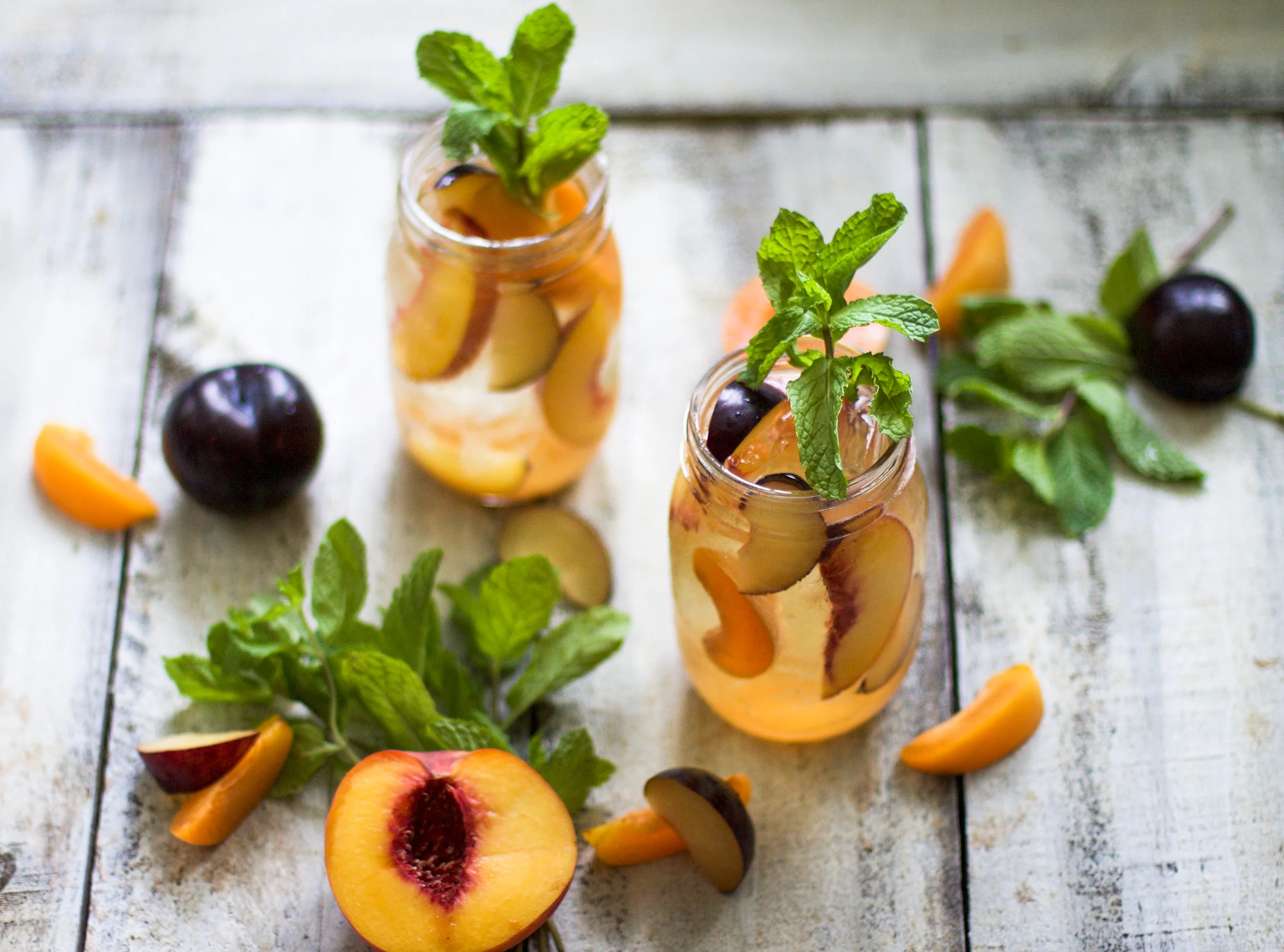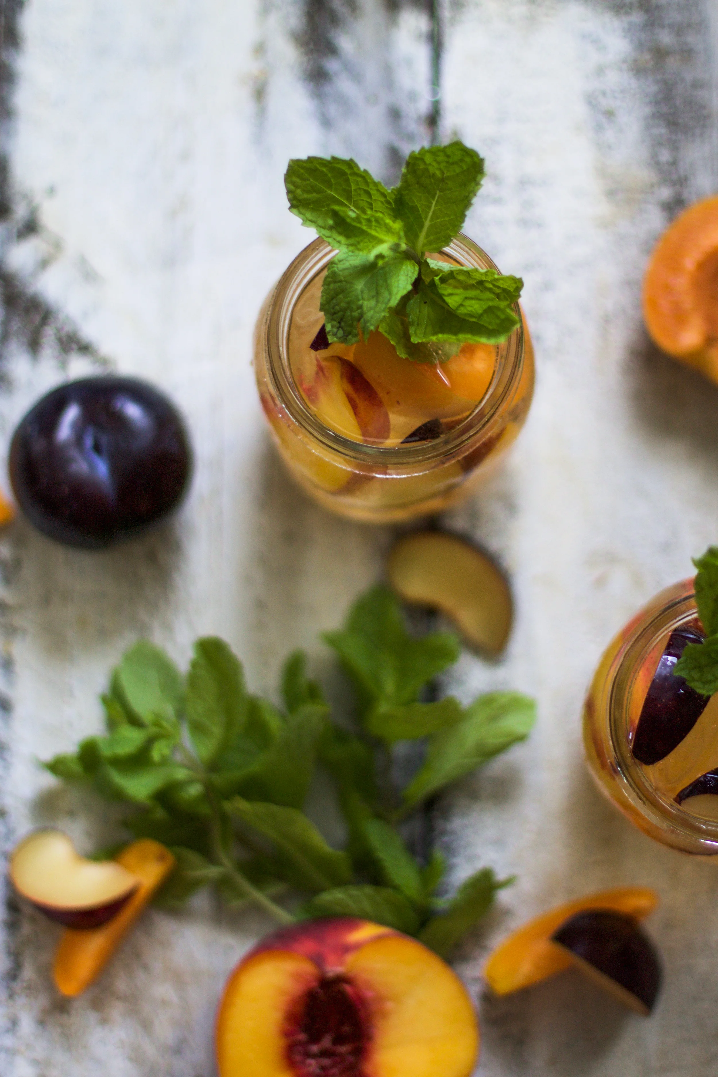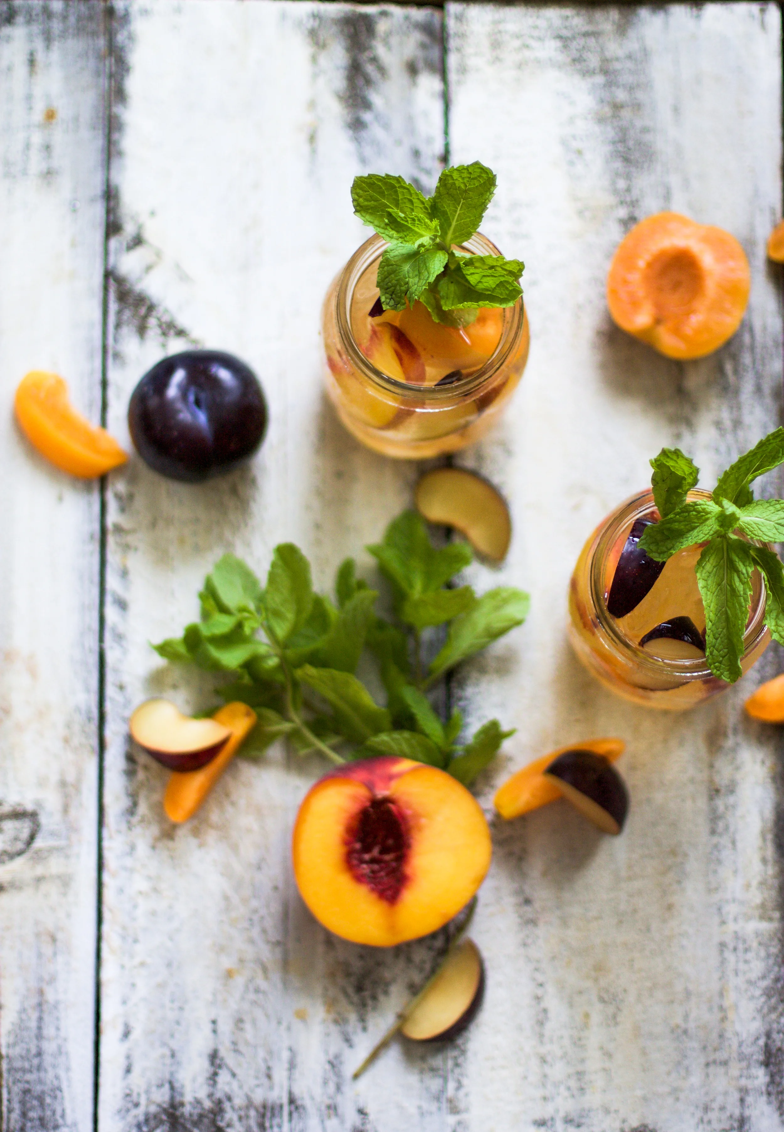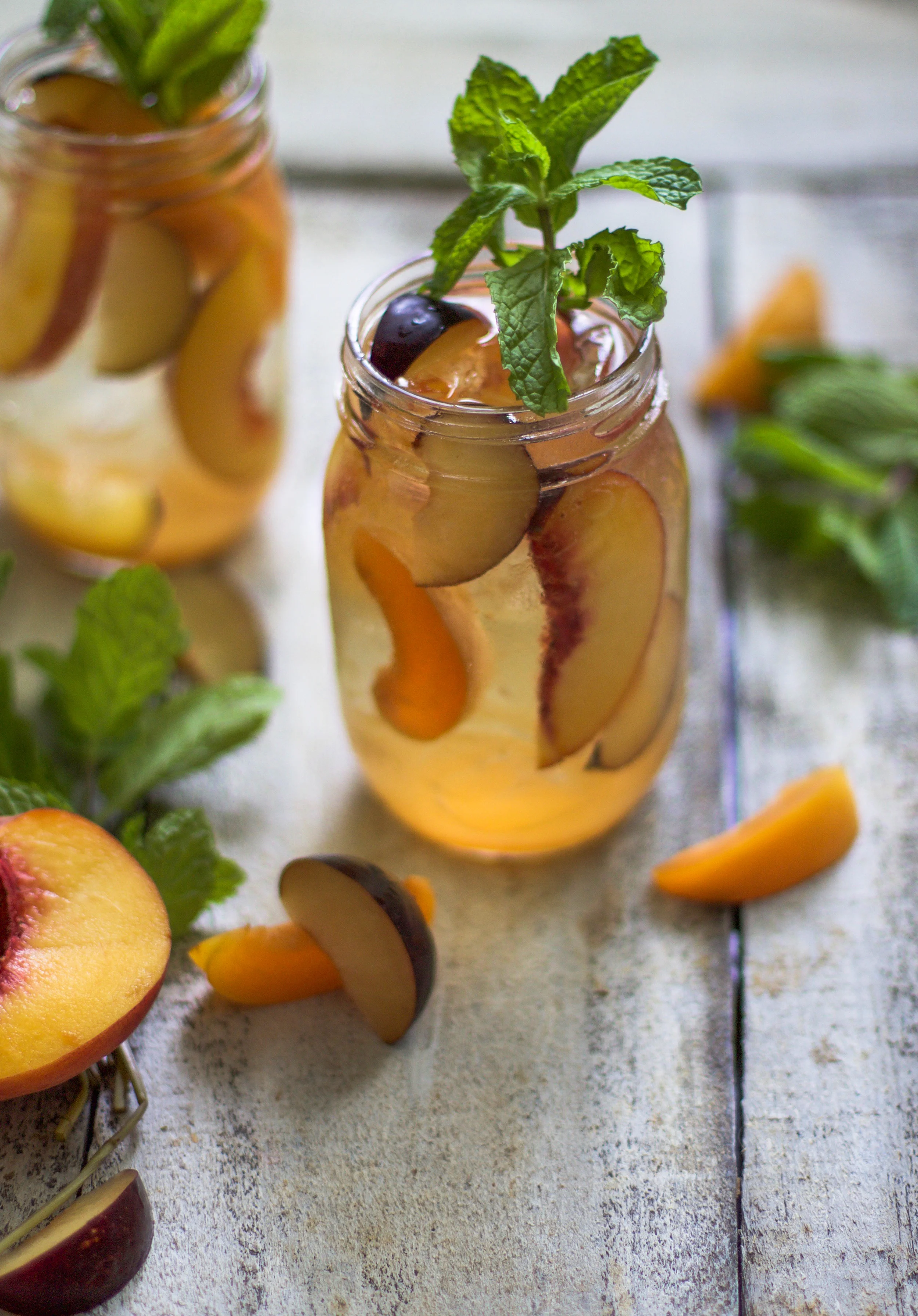 Also can we talk about how I am going to cry when stone fruit is no longer in season?  I have been putting peaches, nectarines, plums, and apricots in salads, on the grill, and they are especially delicious in a cocktail!  One of the things that usually keeps me from making sangria during the week is that I have to make a big pitcher and sometimes I just want one glass of it!