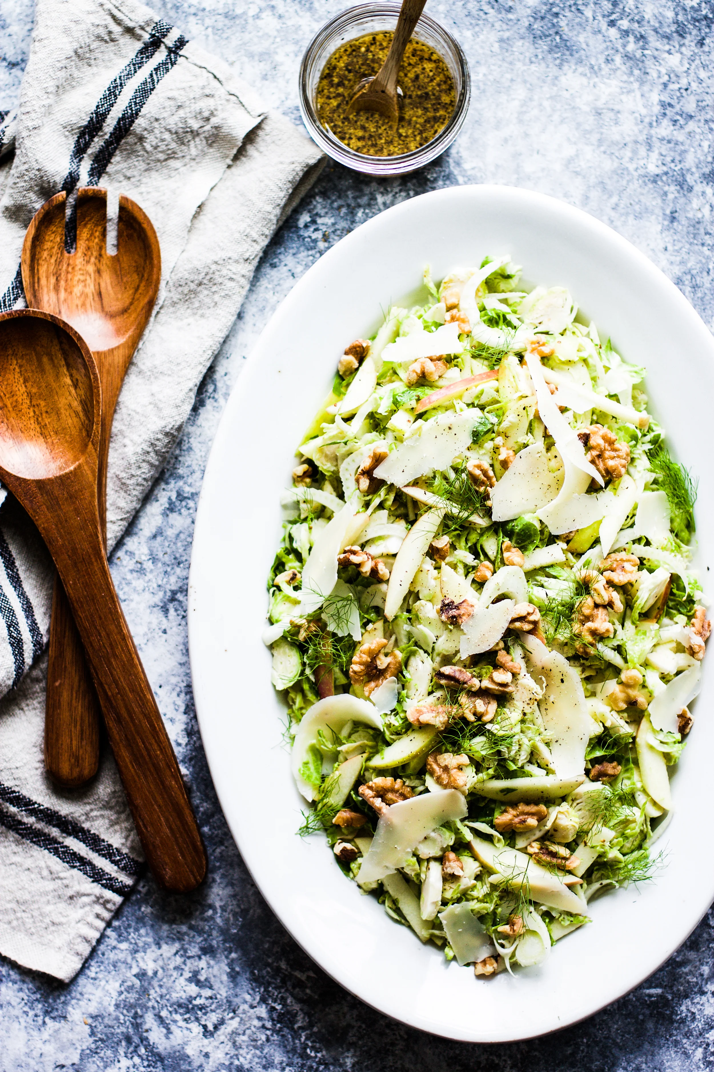 Brussel Sprout, Apple, and Fennel Salad with Toasted Walnuts and Parmesan