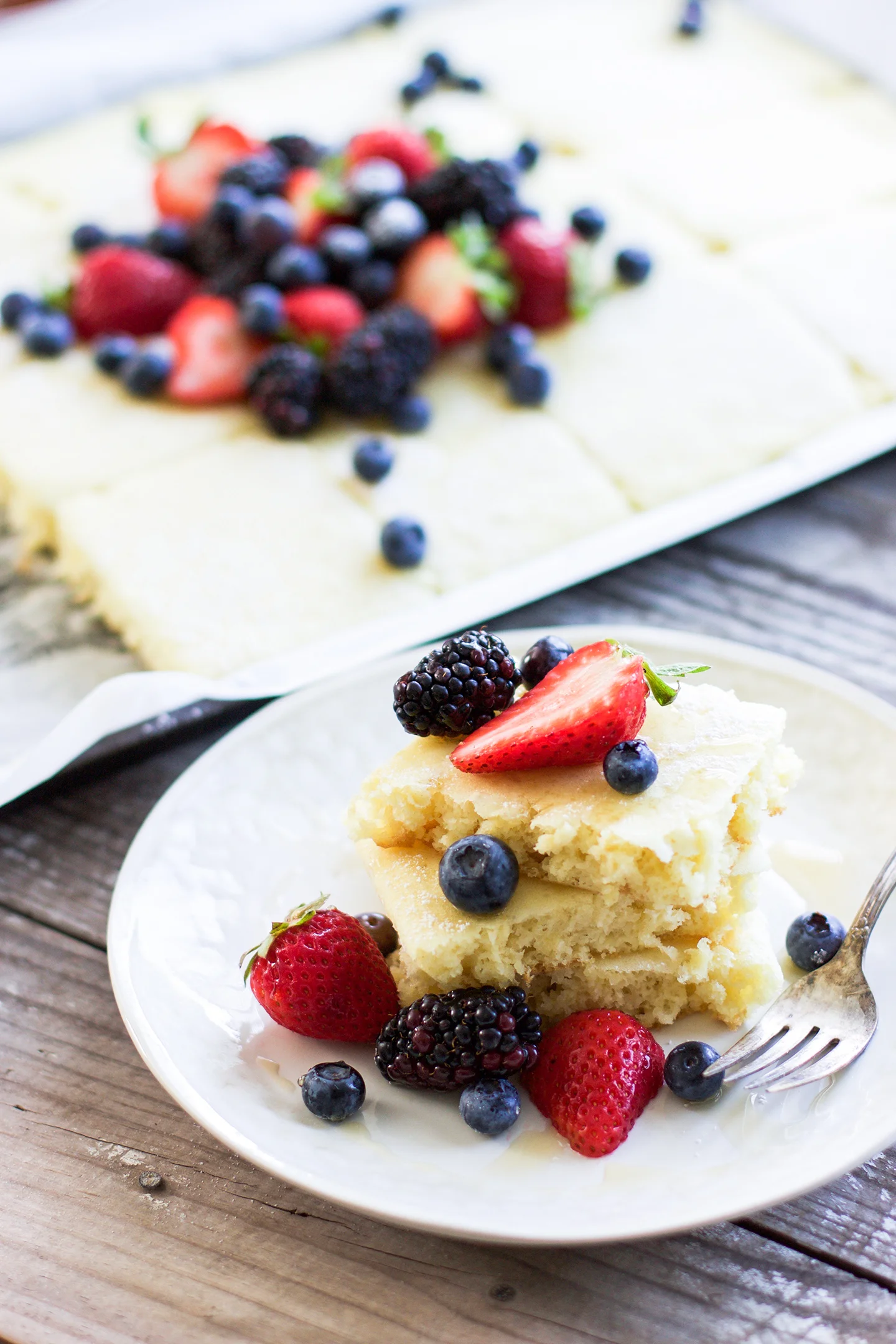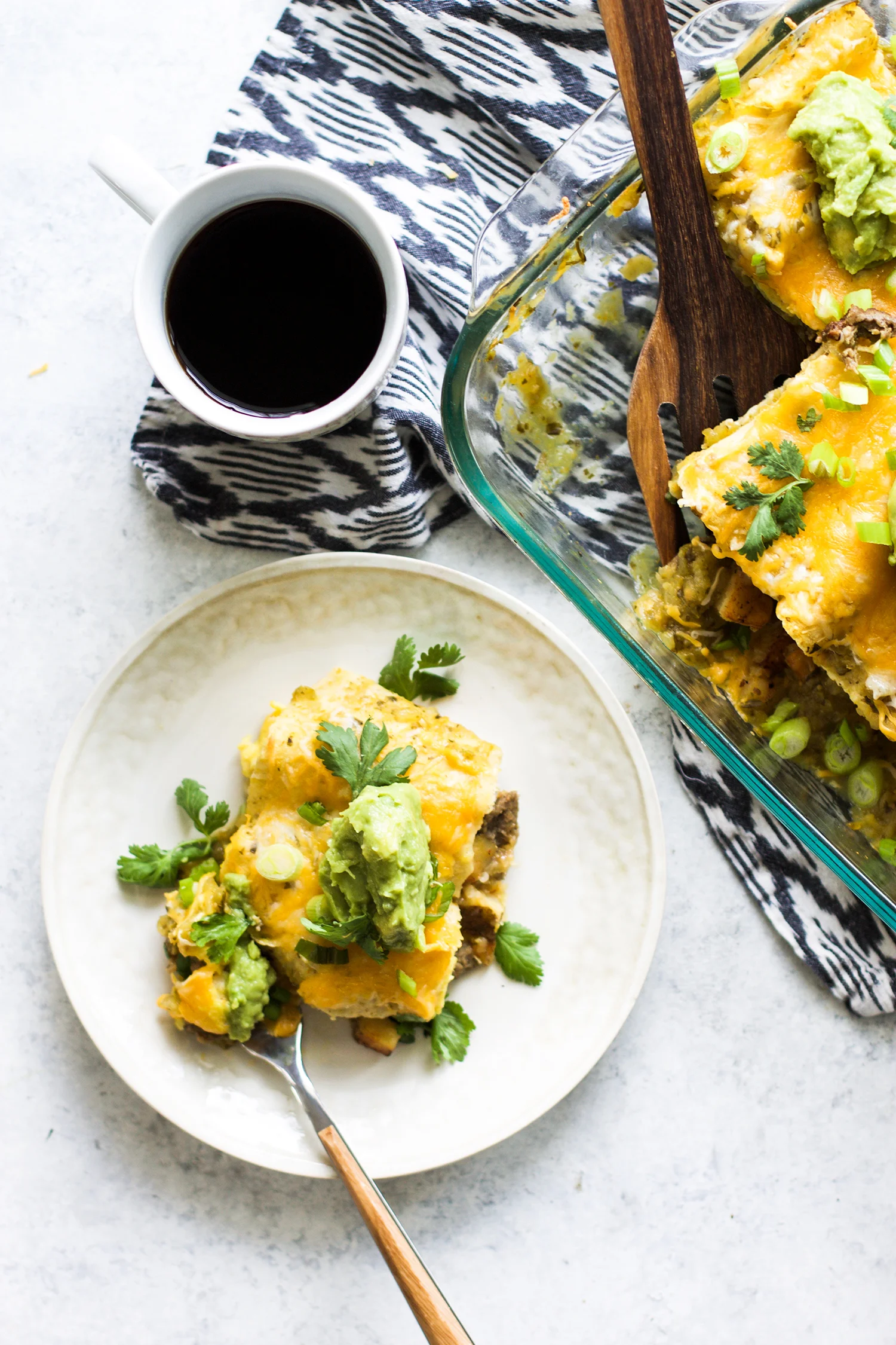 With this menu I suggest picking a savory dish like my breakfast enchiladas, paired with a little something sweet like easy sheet pan pancakes, whip up a smoothie or granola pop for something lighter, offer up a brunch cocktail (because what is brunch without a cocktail?), and finish it all off with some fresh fruit to create a spread that you can be proud of!