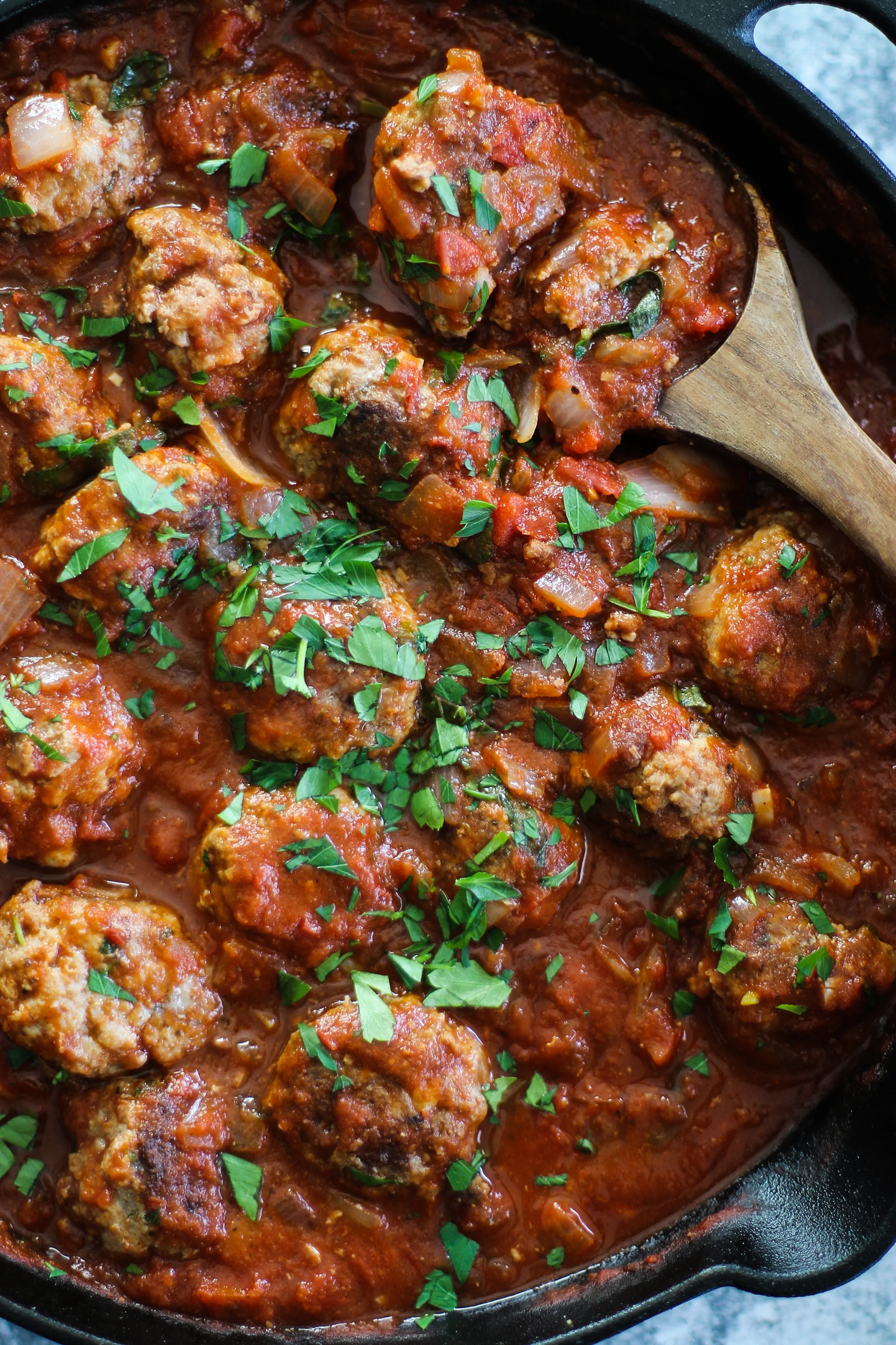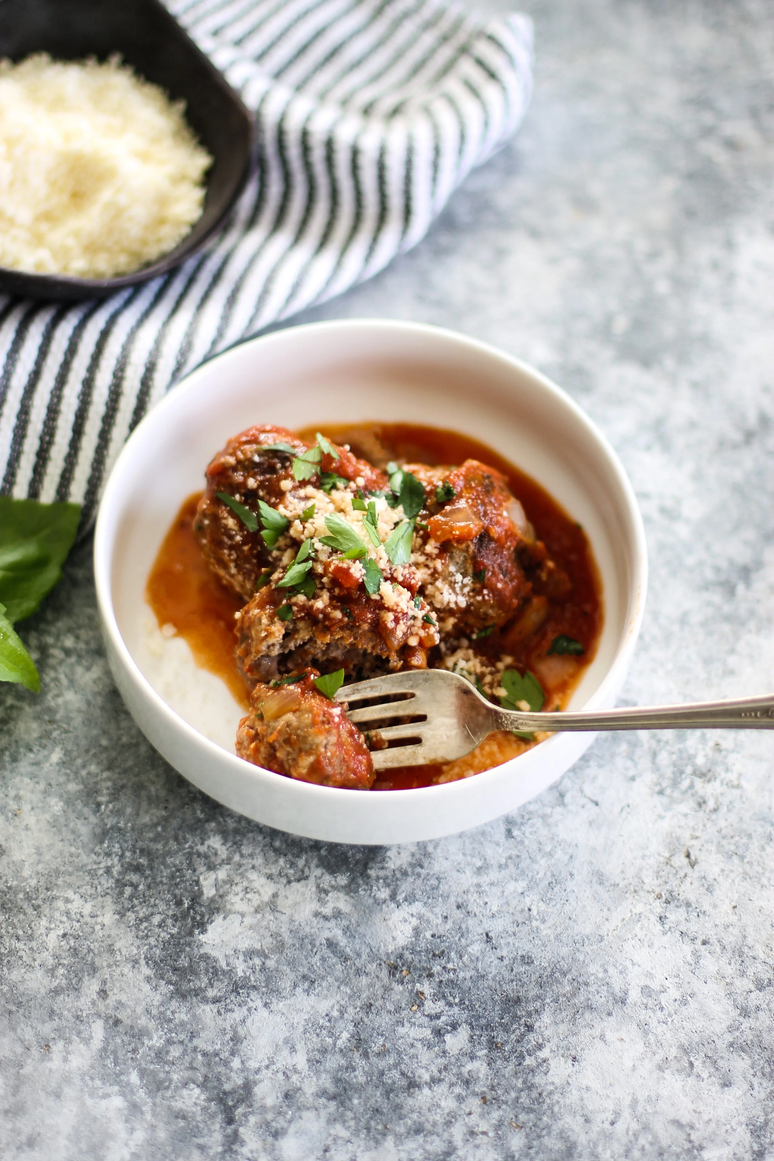 There is something so comforting about not only the taste of a meatball, but also the smell of them cooking in your house. There is just nothing better in my opinion. You can scoop them over pasta with this recipe or make a meatball sub or heck I would eat them as the main dish with a side of veggies! Whatever you decide to do with your meatballs, just promise me that you will make them and you will drink a glass of red wine while you do it.