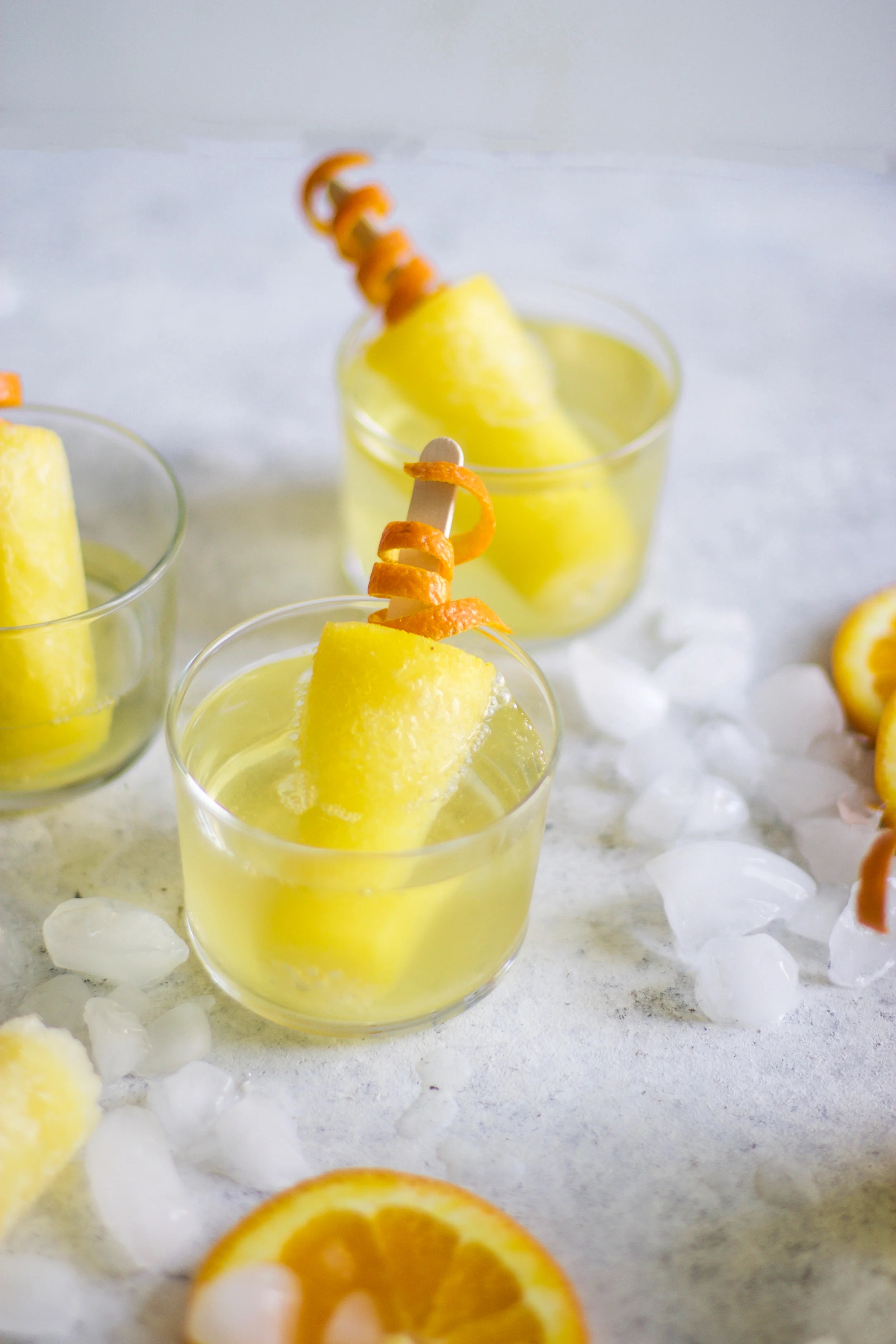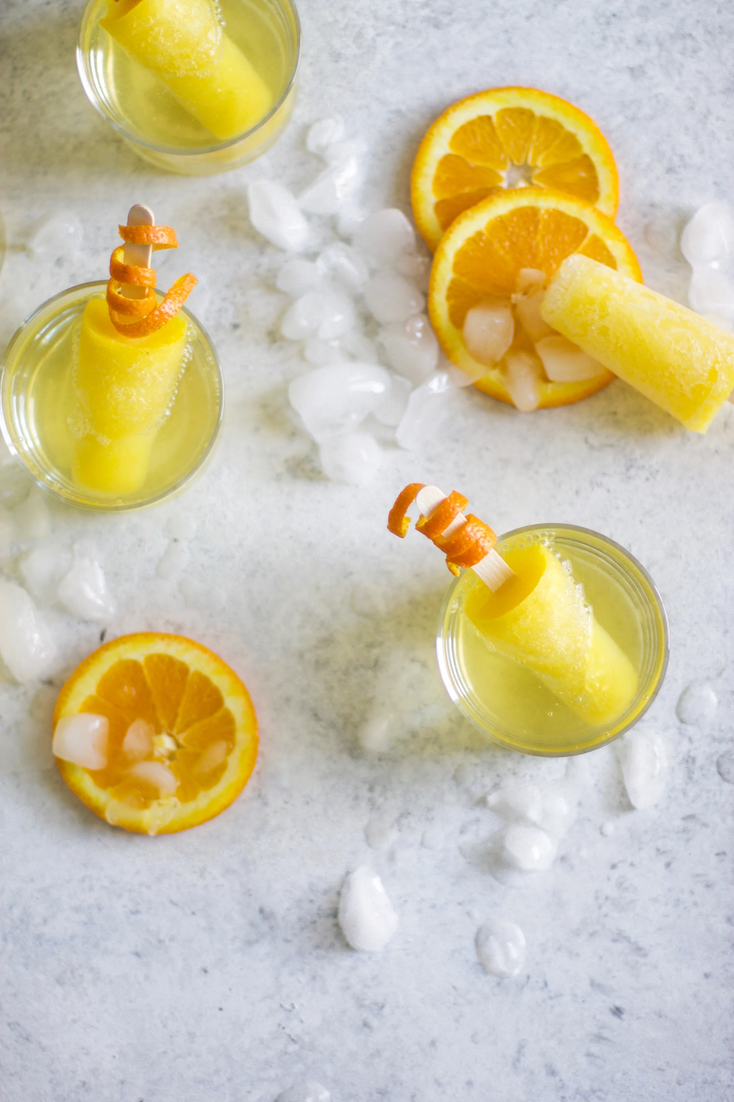 It's almost the weekend! I can taste it, can you? We are headed to Louisiana for the weekend to hang with friends and family and feast ourselves on my father-in-law's famous crawfish. To say I'm excited about his crawfish would be an understatement...I literally eat more than every grown man at the table! There are a few things in this life that I will change my plans for and one of those is a crawfish boil...the other happens to be champagne. Just mention the word and I am there! One of my favorite activities on the weekend is brunch and I think half of that is the fact that I can drink mimosas before noon and it is 100% acceptable. And what's even better than that is a mimosa turned into a popsicle! My mimosa pops swimming in even more champagne are the perfect addition to your at-home brunch plans this weekend!