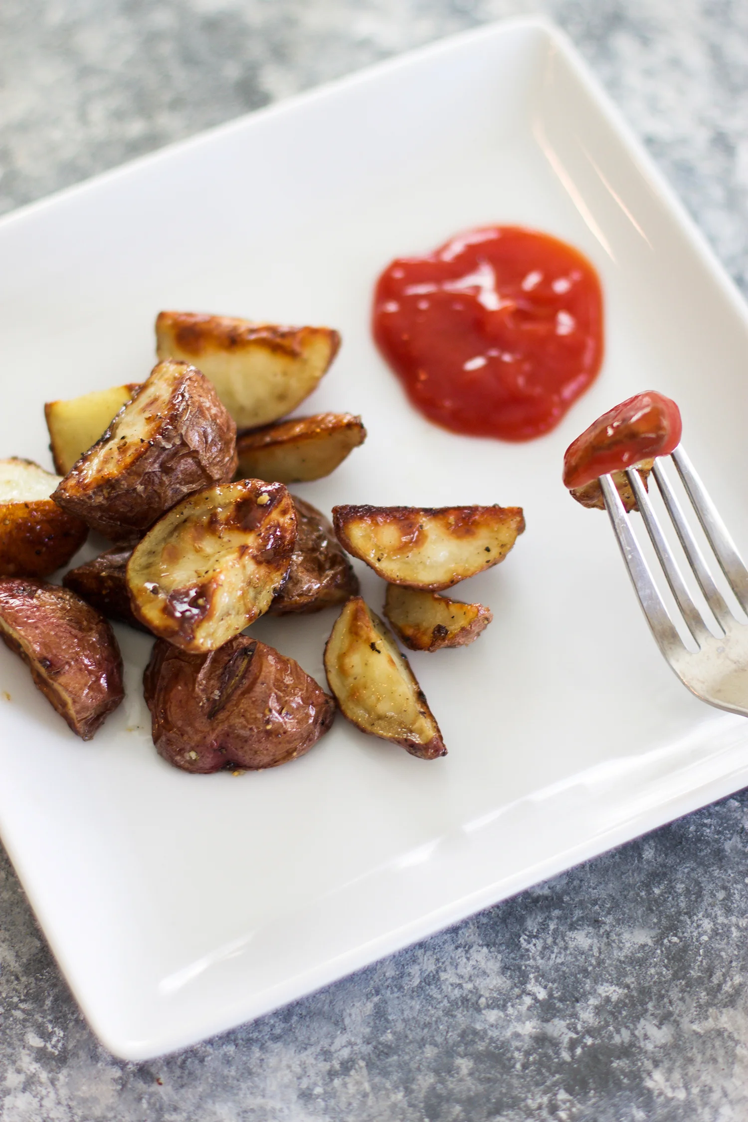 Anyway, that's my rant about that but more importantly you need these potatoes in your life. They are perfectly crispy on the outside, tender on the inside and seasoned perfectly. I love roasting these for breakfast with fried eggs or serving them at dinner as an easy side with a veggie and a protein!
