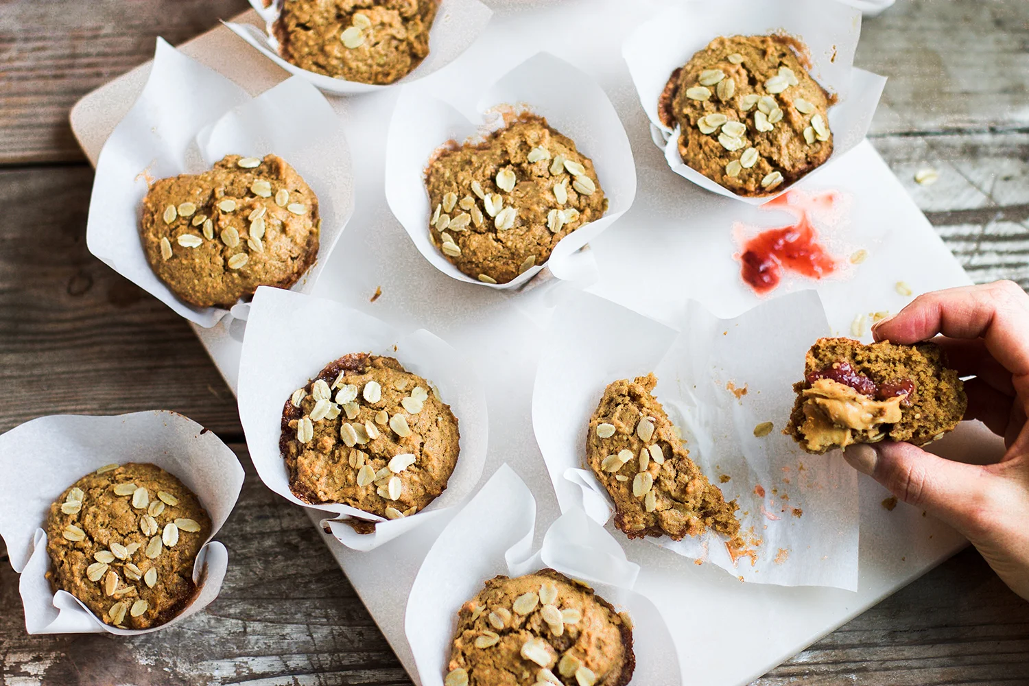 Healthy Peanut Butter and Jelly Oatmeal Muffins