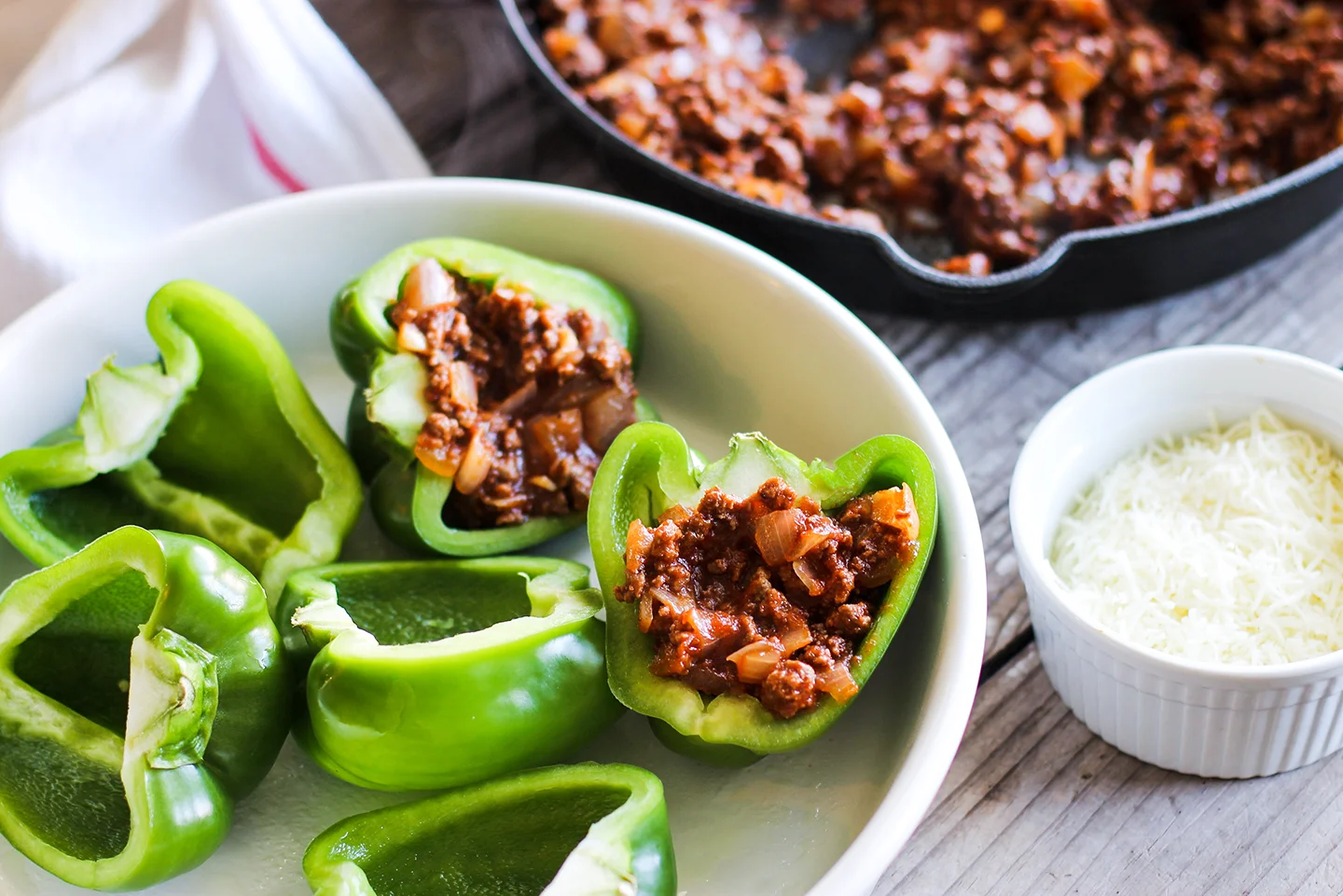 Happy Monday! How was your Easter weekend? We had family in town and the kids dyed eggs, ate their weight in candy, played in the mud, and just had the best weekend together! Yesterday I am pretty sure that 90% of Parks' diet was sugar and I wasn't far behind him! So now that Easter is over and my excuse to eat candy is no longer valid, I am meal planning for the week and I am all about preparing light meals that the whole family will love while keeping me on track! My sloppy joe stuffed peppers are just the kind of meal that is super satisfying while being low carb and healthy at the same time!