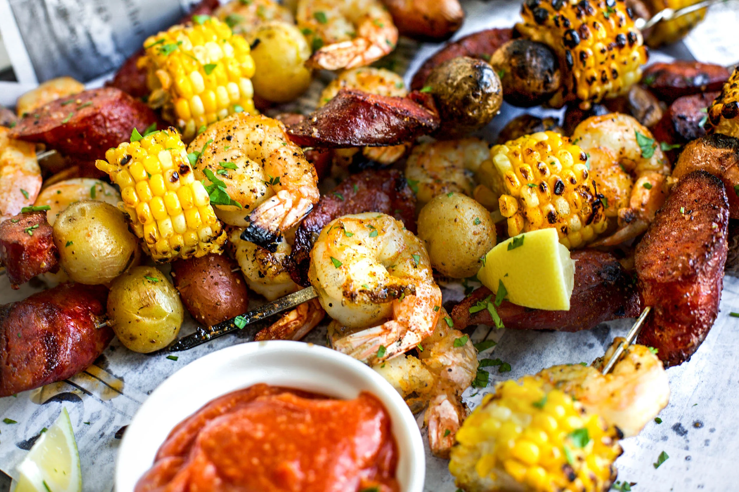 I like to serve up a nice big green salad on the side and dinner is done with just a few simple ingredients and loads of flavor. It’s just the way a summertime dinner should be if you ask me, and I love the extra flavor that the grill adds here versus when everything is boiled. Less mess with the same nostalgic flavors that take me back to slow evenings with my family in Tennessee? Yes please!