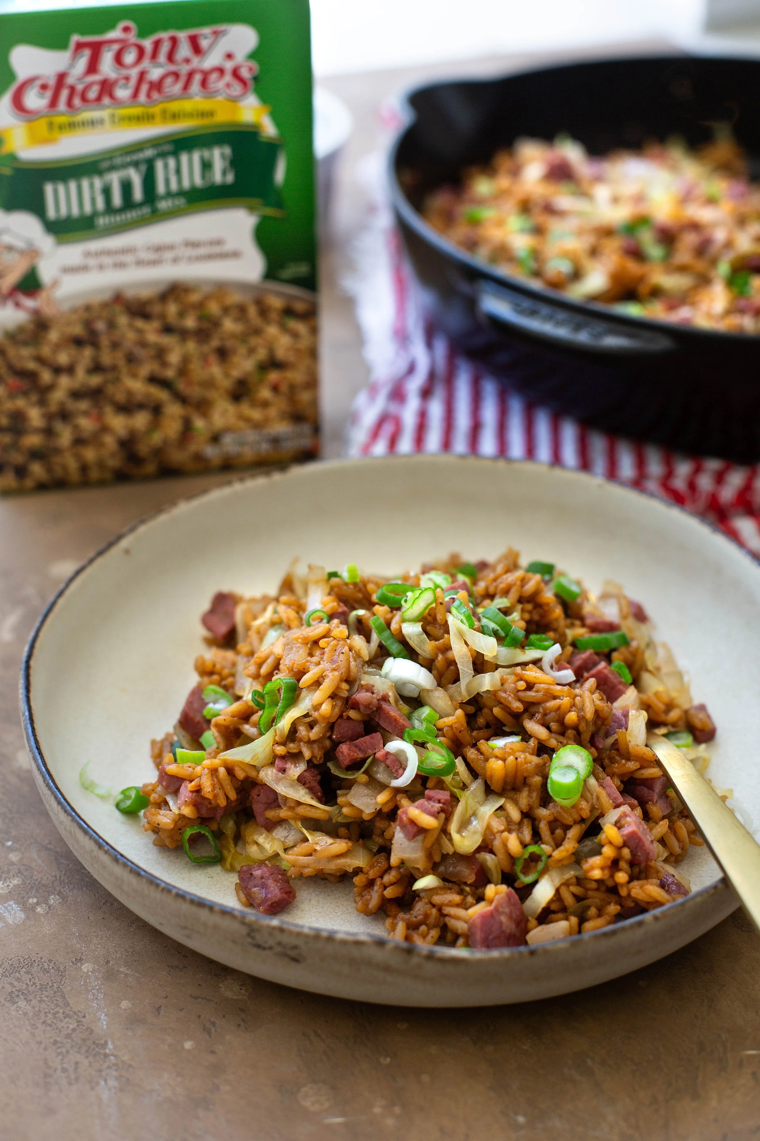 So comforting and full of flavor, Louisiana Dirty Rice is a traditional hearty dish that is full of ground meats, veggies, and of course rice. I created a fun spin on a classic recipe to create this delicious Corned Beef and Cabbage Dirty Rice featuring Tony Chachere’s Creole Dirty Rice Dinner Mix for the ultimate way to celebrate your favorite Louisiana flavors with an Irish twist!