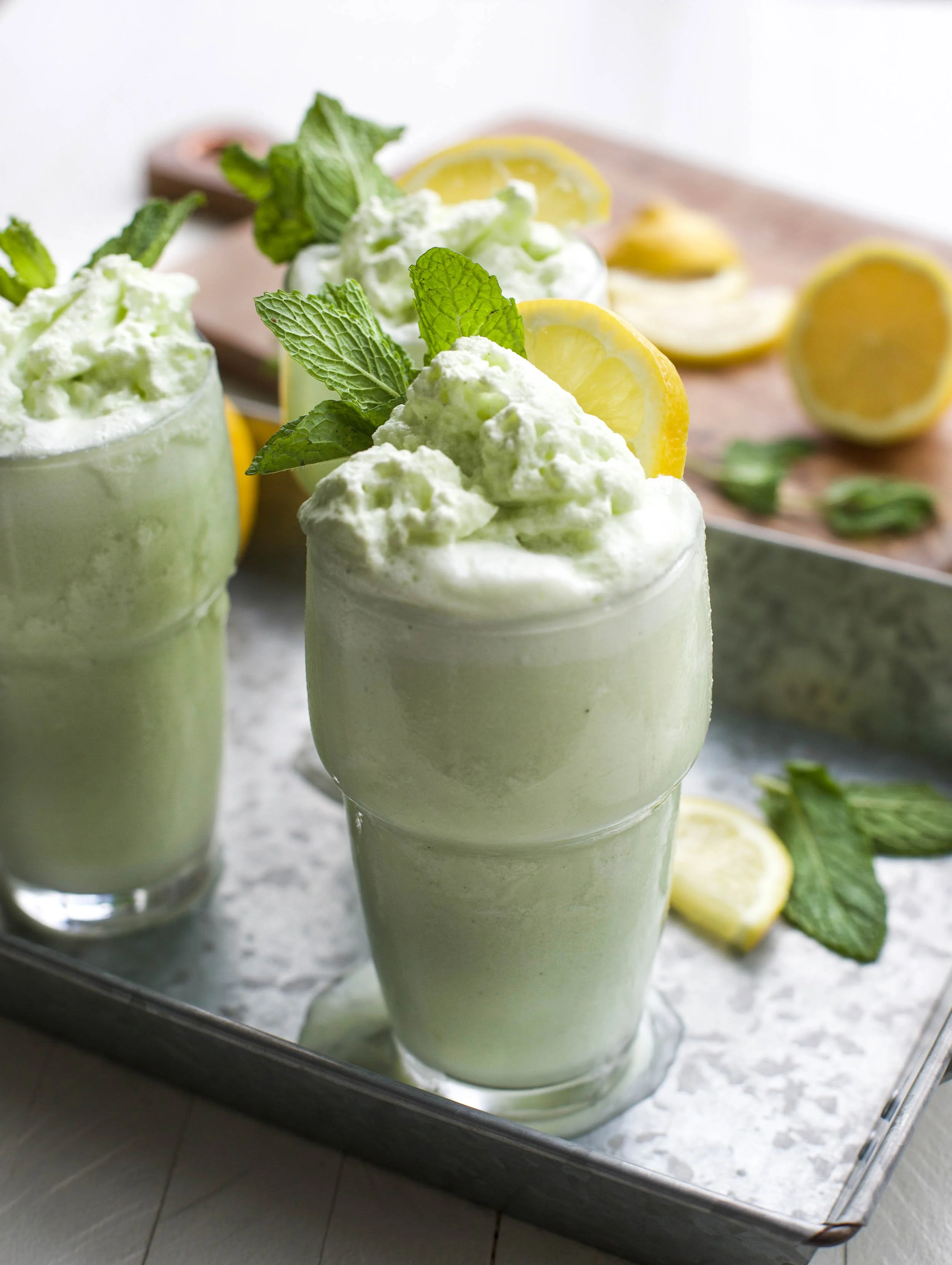 I like to make a pitcher of this boozy frozen whipped mint lemonade and serve it up at the pool or beach or even at a backyard BBQ. It’s so good and easy and freezing the lemonade into cubes ends up making the consistency so perfect, just like an slushie! It’s going to become a favorite cocktail for all of the warmer months for sure.