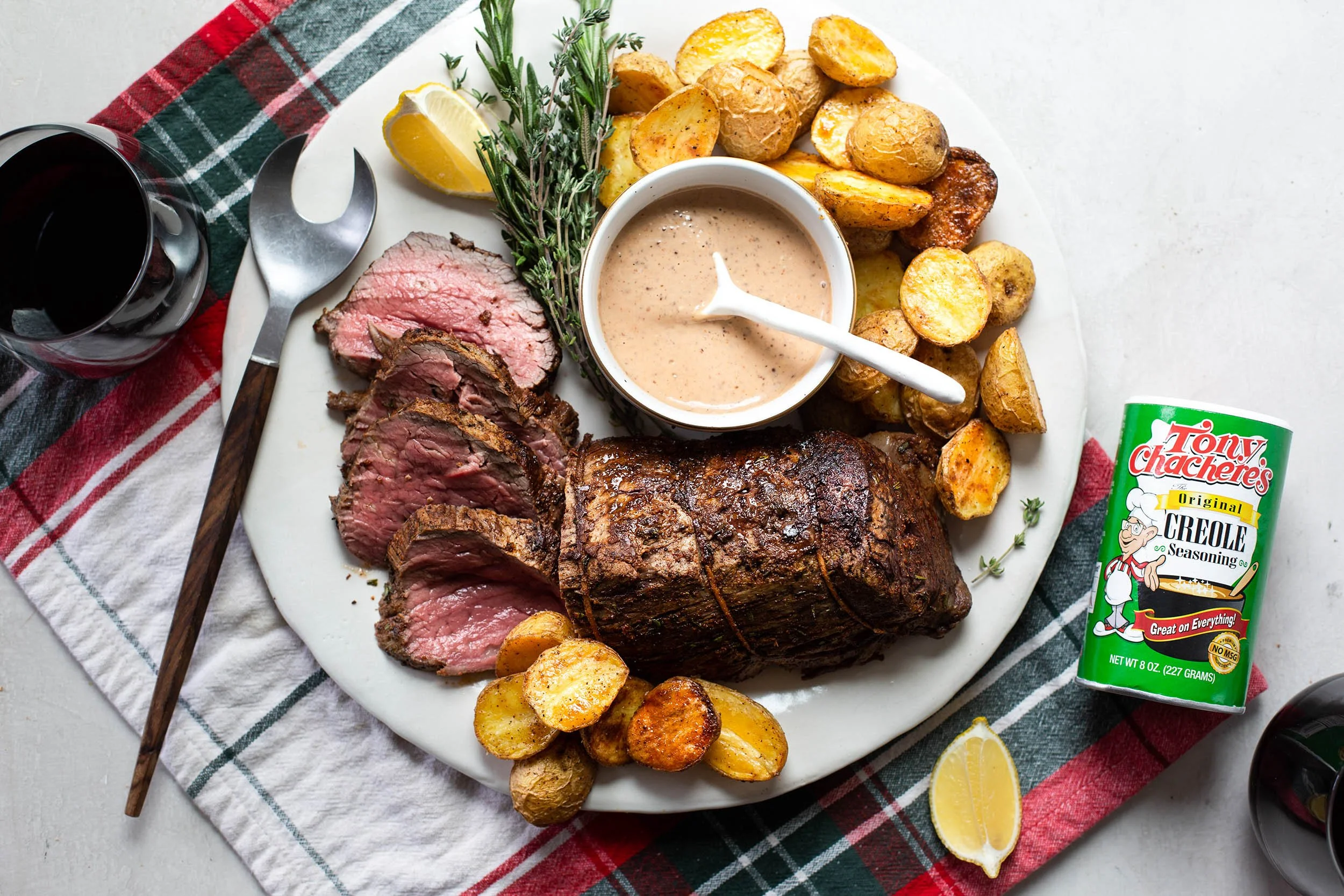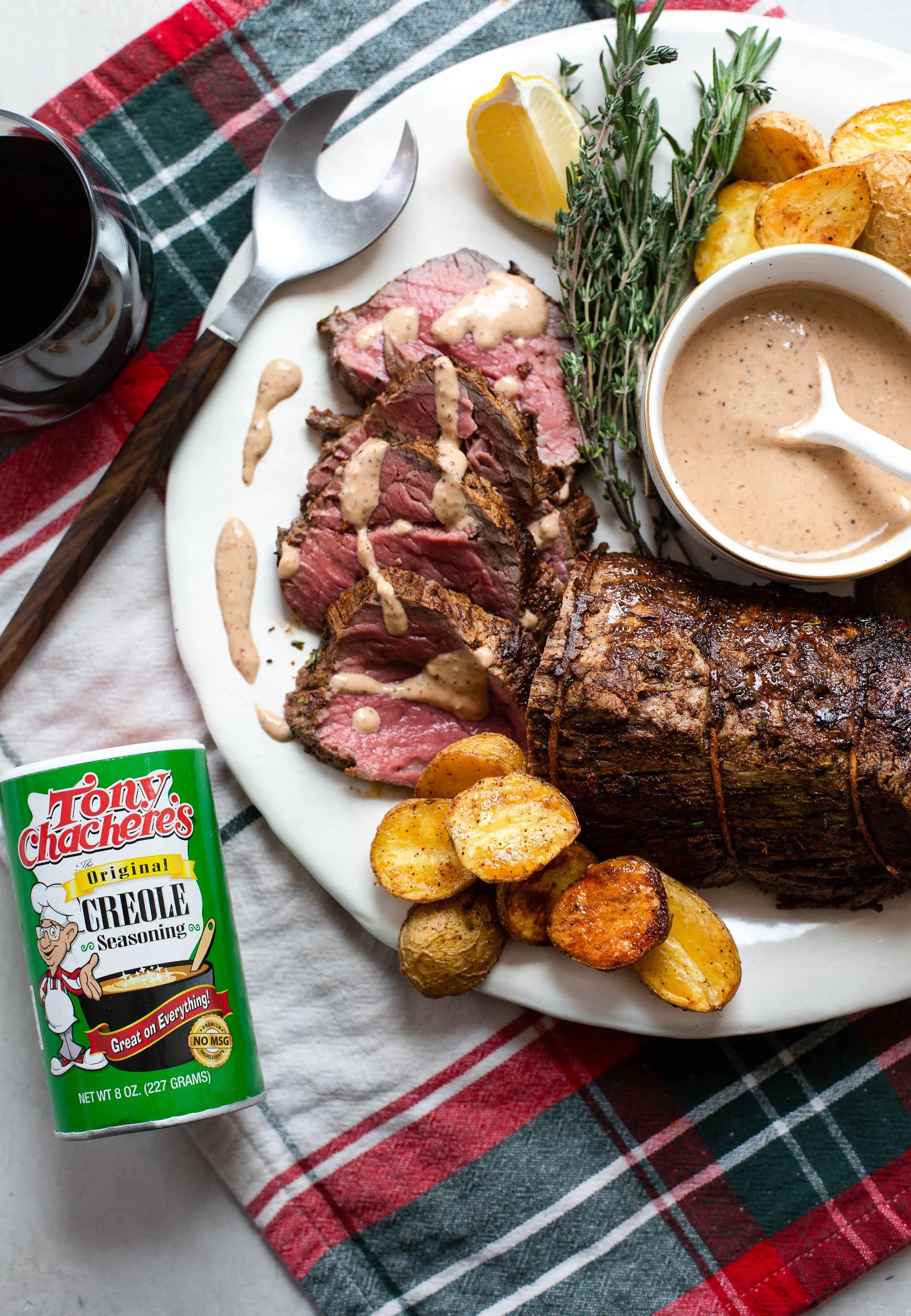 A whole beef tenderloin is one of those perfect holiday main dishes that intimidate a lot of at home cooks. I am here to take that intimidation away and to share with you all about how to cook a whole beef tenderloin right in your own kitchen and have it come out perfectly cooked every time. I partnered with my friends at Tony Chachere’s to bring you this delicious twist of a recipe for beef tenderloin and it will no doubt be show stopper on your holiday table. This recipe for my Cajun beef tenderloin with remoulade is full of flavor and is perfect for serving up at any holiday dinners you may have this season.