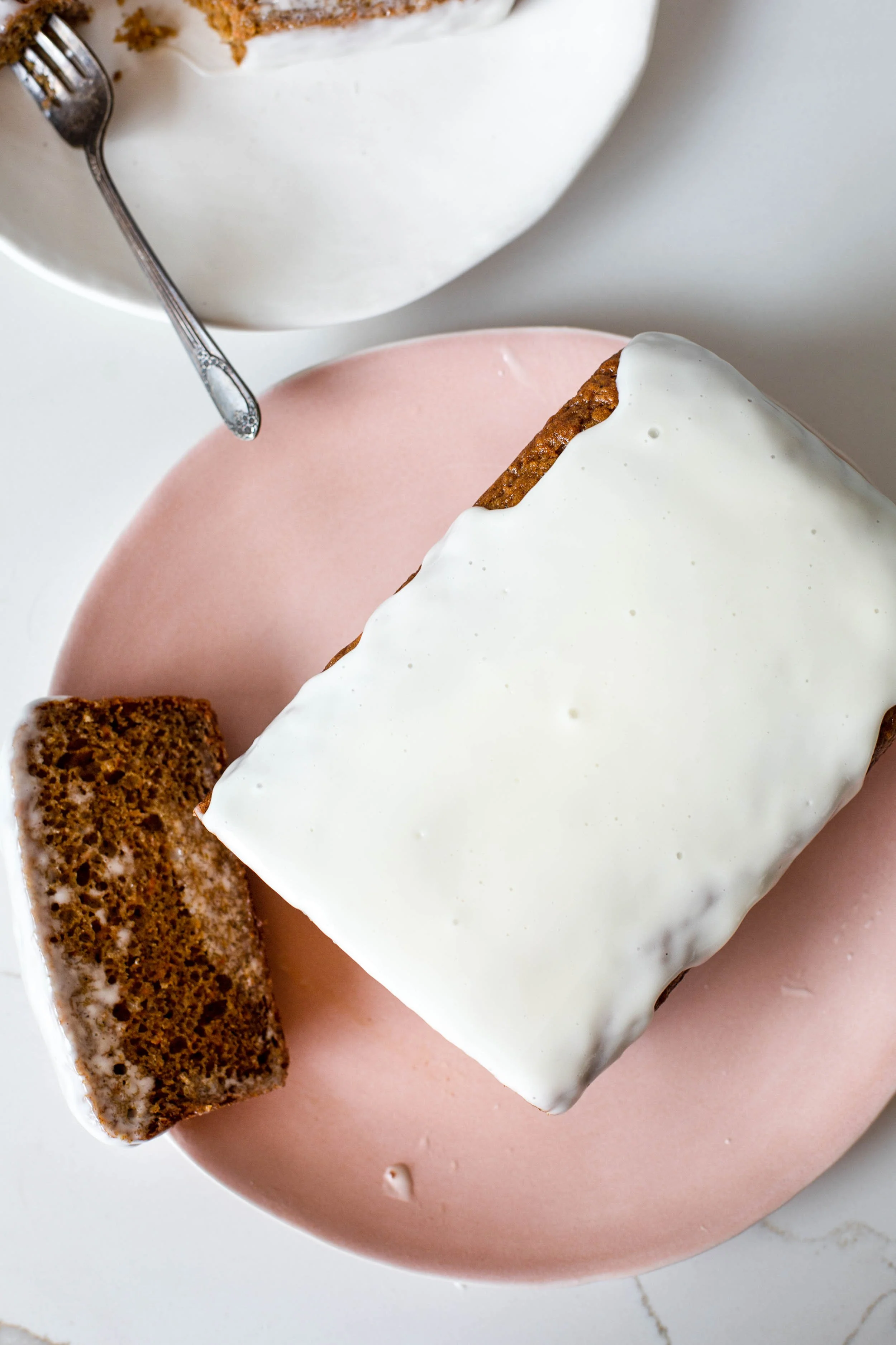 I am a little bit of a purist when it comes to carrot cake and prefer mine without raisins or nuts, but if that is your jam, feel free to add those to the recipe as well. You can also substitute whole wheat flour instead of all purpose as well as subbing out a different sugar if you prefer as long as quantities are kept the same. This carrot cake bread will keep in the fridge for up to a week, but I doubt it will ever last that long!