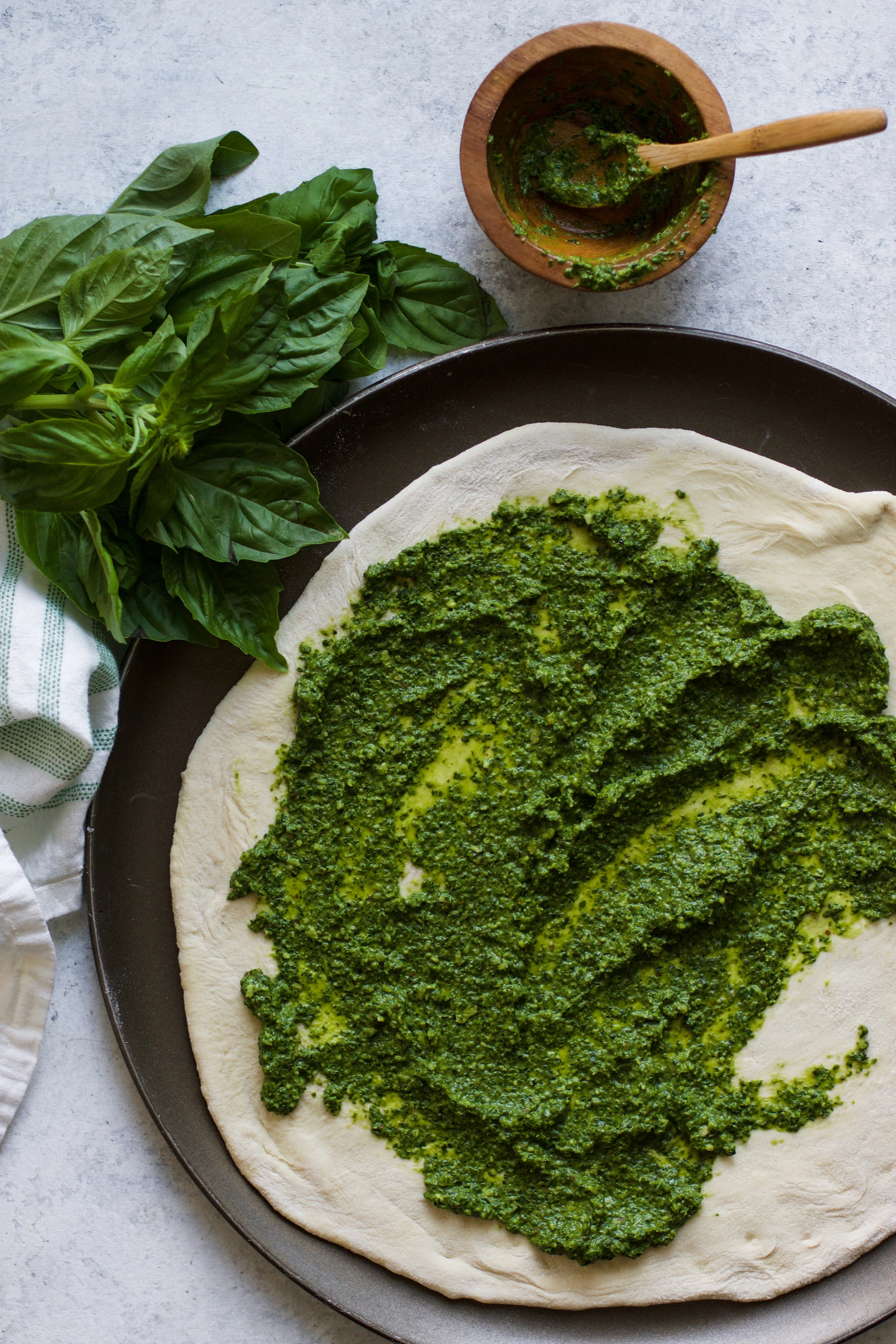 One of the things I like to do for meal prepping is to make sauces at the beginning of the week.  I like this because even if I don't know exactly what is on the menu, if I have a delicious sauce in the fridge waiting on me, I can usually creates a yummy dinner in no time!  Sauces like my basic basil pesto are one of my staples that I almost always have on hand!  When I say basic basil pesto, that is not to take away from how utterly delicious a basic pesto actually can be.  What I mean is that it is the most simple form of pesto, a basic formula to build on for any future pesto creations.  I love having a batch of this in the fridge or the freezer for pizzas, pastas, sandwiches, eggs, and more and I think you are going to love making a homemade basic basil pesto in your kitchen too!