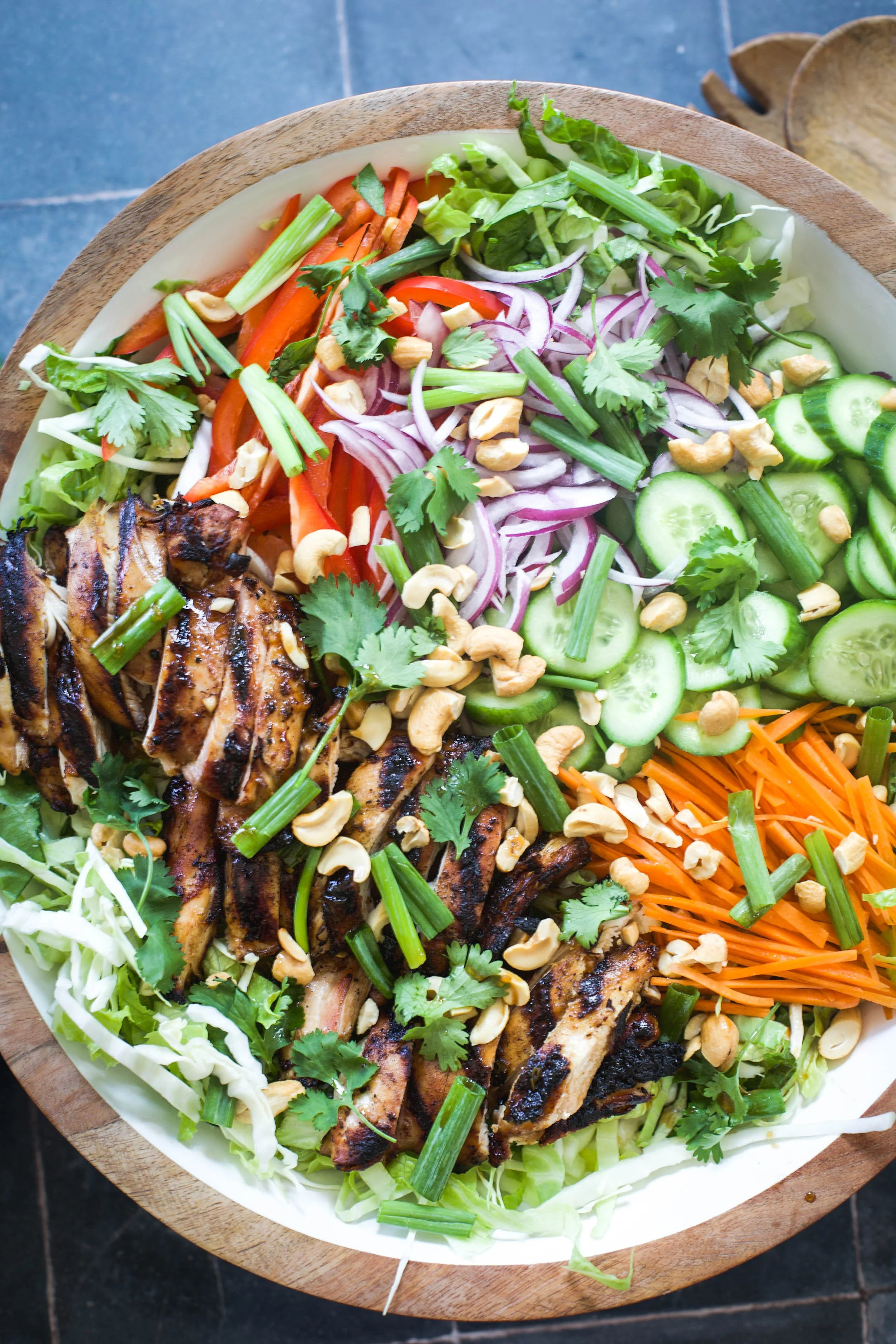 It might be soup season, but let’s not give up on salads just yet. This Asian inspired salad is loaded with crunchy vegetables, a tangy and sweet dressing, delicious marinated apricot chicken, and is topped with salty cashews. It’s easy enough to make any night of the week and you can prep everything in advance for lunches or dinner. My recipe for this Apricot Asian Chicken Salad is one that you are going to want to make on a weekly basis.