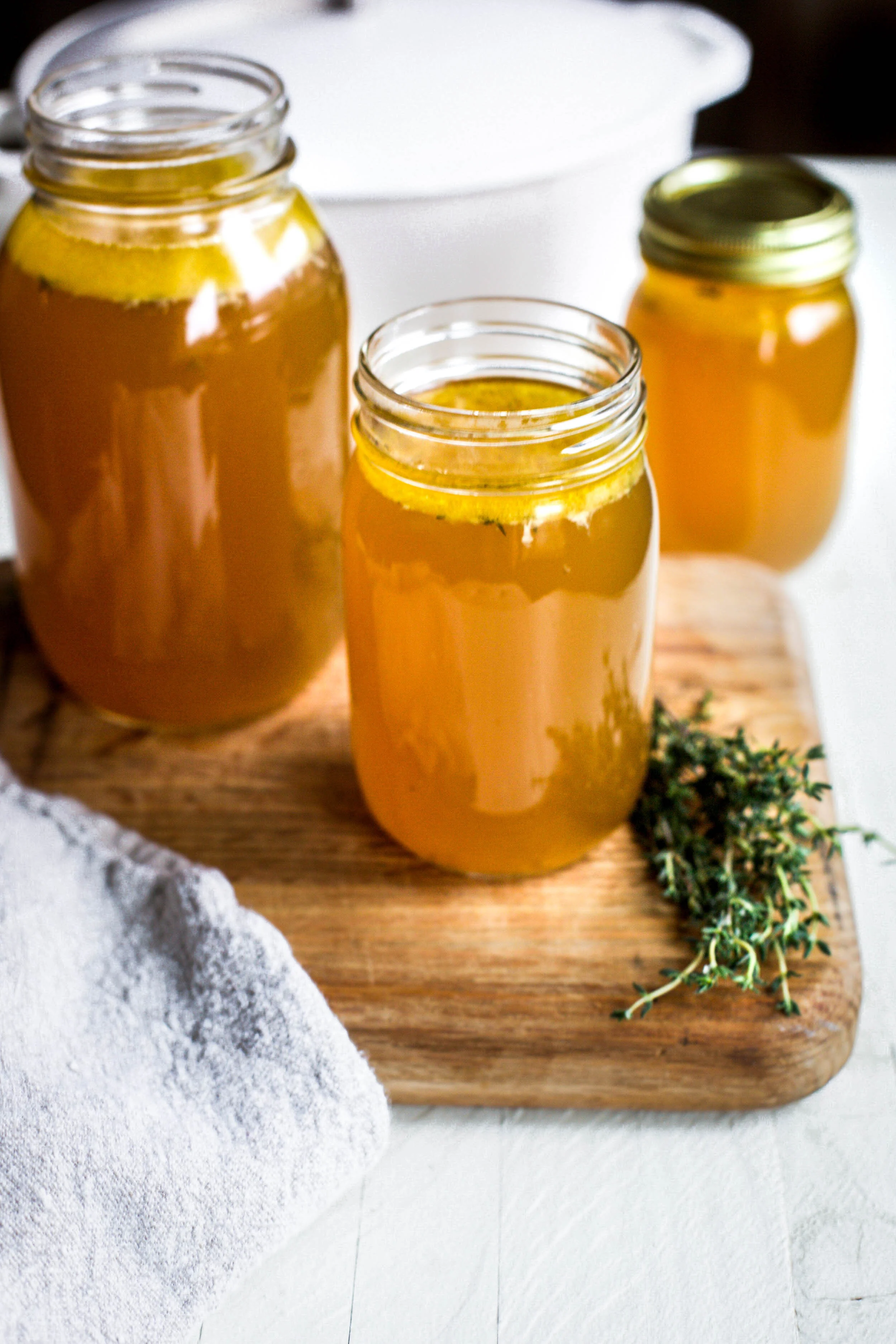 Homemade chicken stock is one of those recipes, that until you finally make your own, you don’t realize what a huge difference in flavor it can make to recipes of all kinds! I will admit I always have store bought stock on hand for emergencies, but my preferred way is to make sure to make a batch of homemade chicken stock almost weekly to use in recipes throughout the week. Homemade stock is so nourishing and full of nutrients. It’s a great way to use up any veggies that are looking a little less than perfect hanging out in the kitchen too. My easy homemade chicken stock and is going to become one of your favorite fridge and freezer staples and the recipe couldn’t be any easier to make!