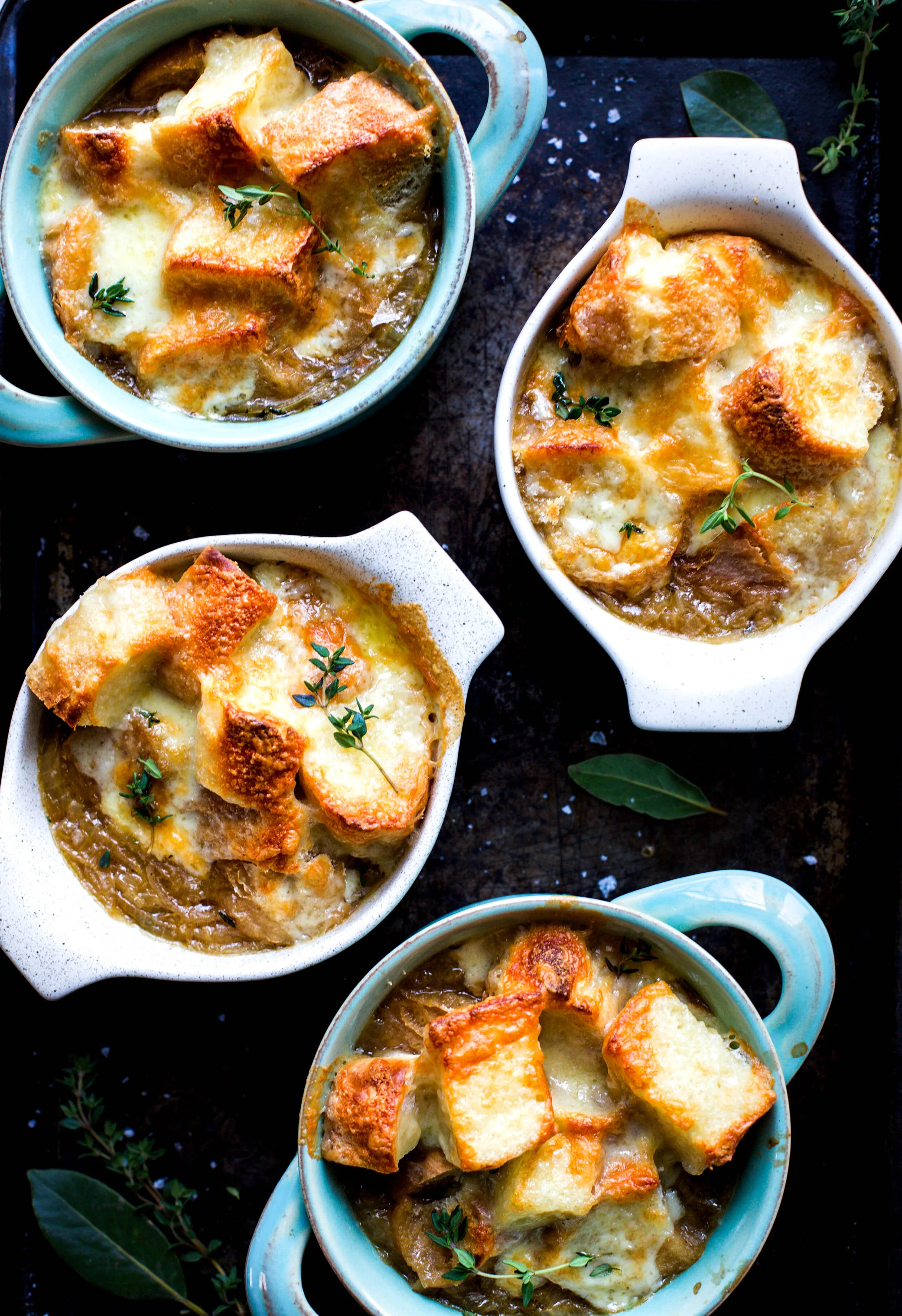 Soups are always a favorite for dinners at my house. There is something so comforting about a bowl of soup that just can’t be duplicated with any other meal. French onion soup is one of those soups that for whatever reason I tend to get when I am at a restaurant, but don’t make at home as often. I recently made it and realized just how easy it actually is to make French onion soup and decided I definitely need to share the recipe with you and that we all should be making it more often right in our own kitchens. My recipe for French onion soup is one that just has a few ingredients, but is packed full of flavor and is super satisfying too! My simple French onion soup will quickly become one of your favorites to add into your soup rotation any day of the week!