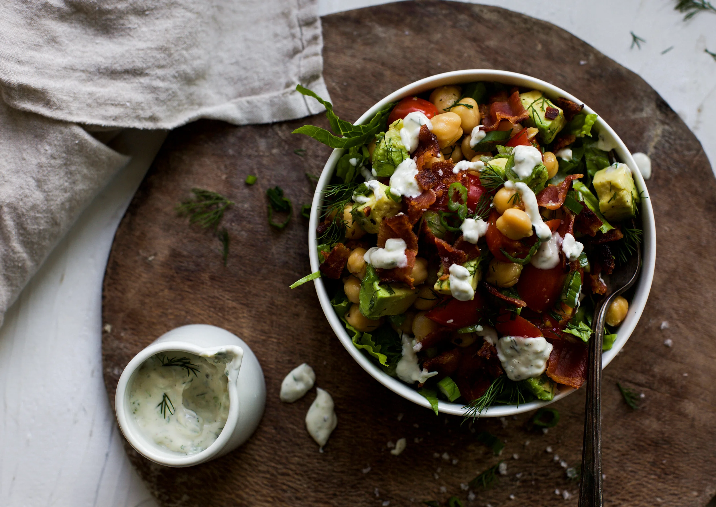 Chickpea BLT Salad with Cilantro Dill Yogurt Dressing