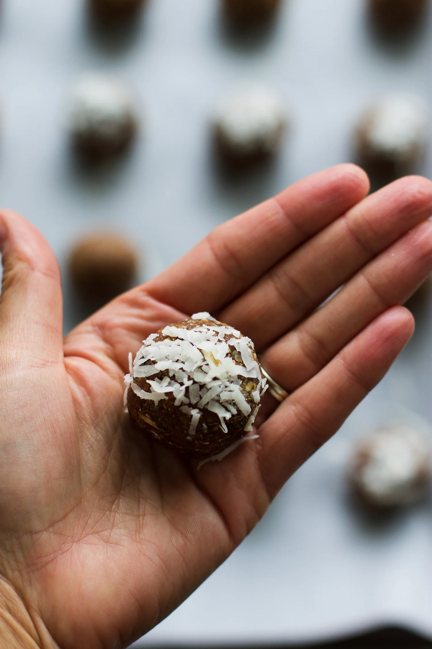 • Form into 1 inch balls and then roll in extra shredded coconut or hemp seeds if desired.
