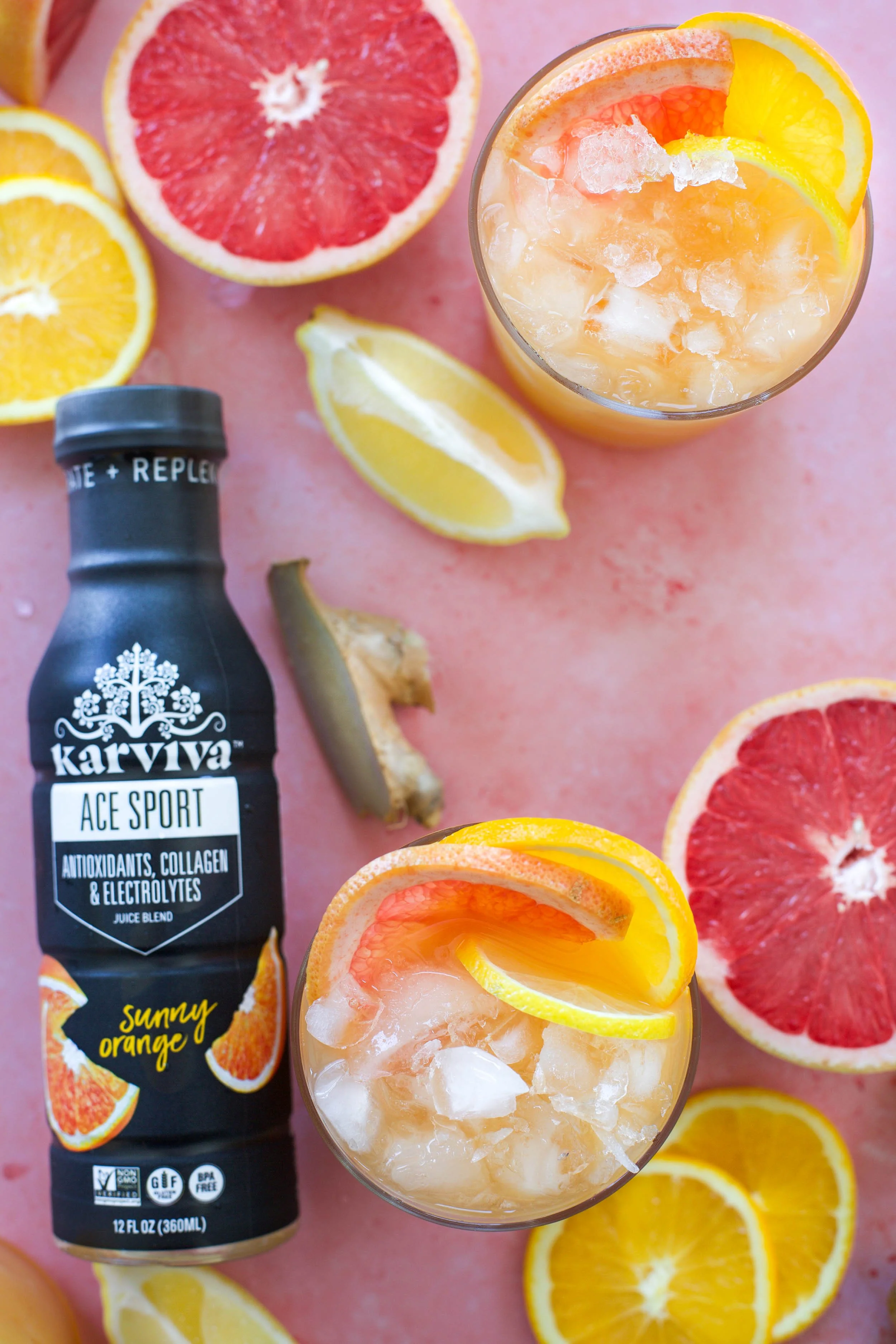 I love that citrus comes into its peak season right when we need it most and making fresh juice with all of the varieties is one of my favorite ways to enjoy citrus right now. I have been been drinking Karuna’s Ace Sports drinks for a while now and love that they alone are loaded with vitamins and nutrients that fuel my every day. These recovery drinks are loaded with collagen, vitamin C and A and are low in sugar too making them the ultimate post workout drink as well!