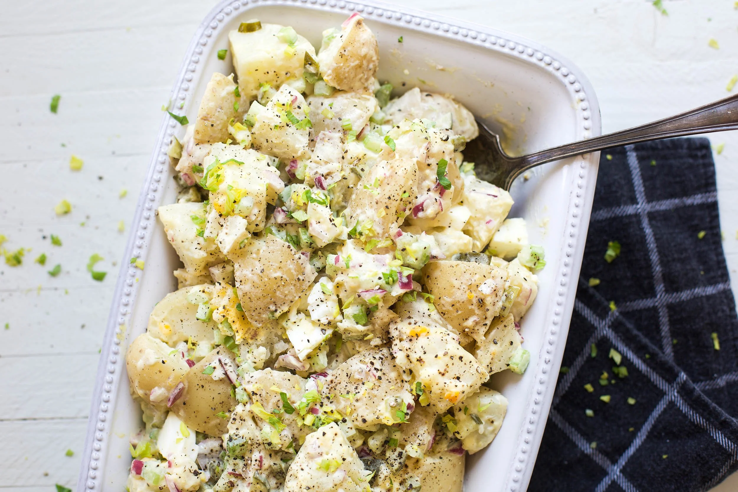 Besides the point that potato salad is delicious, I also love that potato salad can be made in advance, matter of fact, it’s better if it sits overnight. If you don’t have time to let it sit overnight, I at least recommend chilling it for a couple of hours so that the flavors can merry together.
