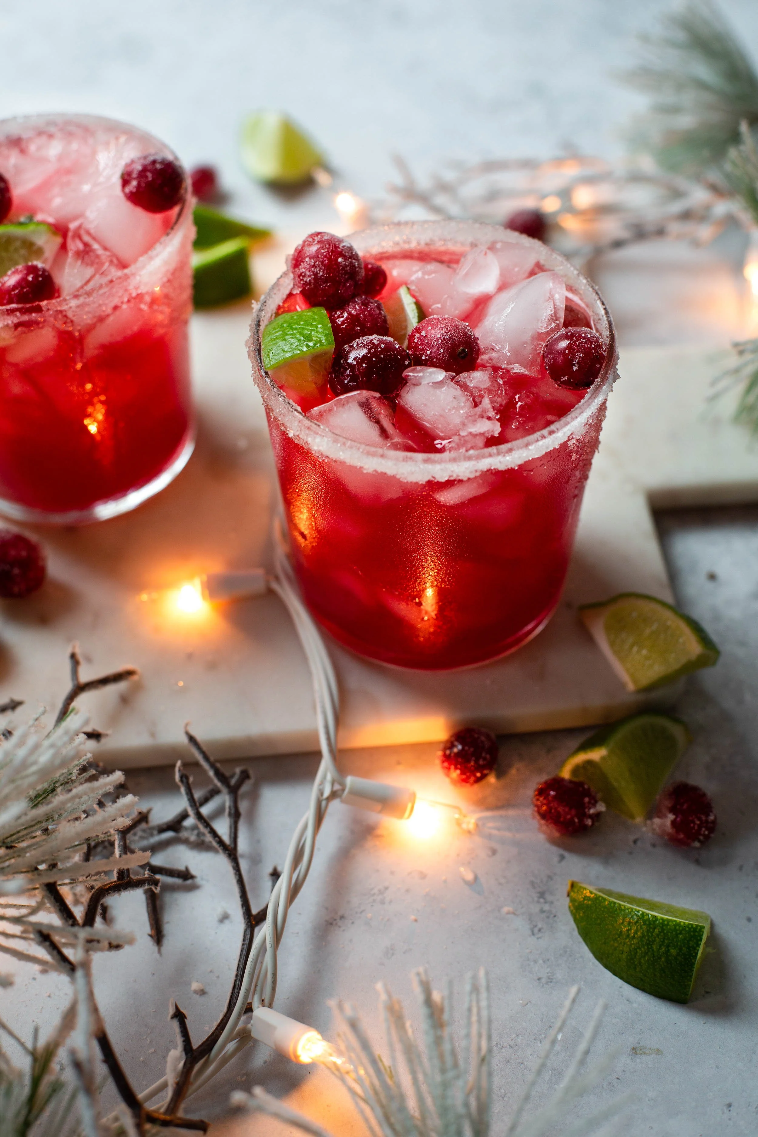 Garnish with lime wedges and sugared cranberries and serve immediately.