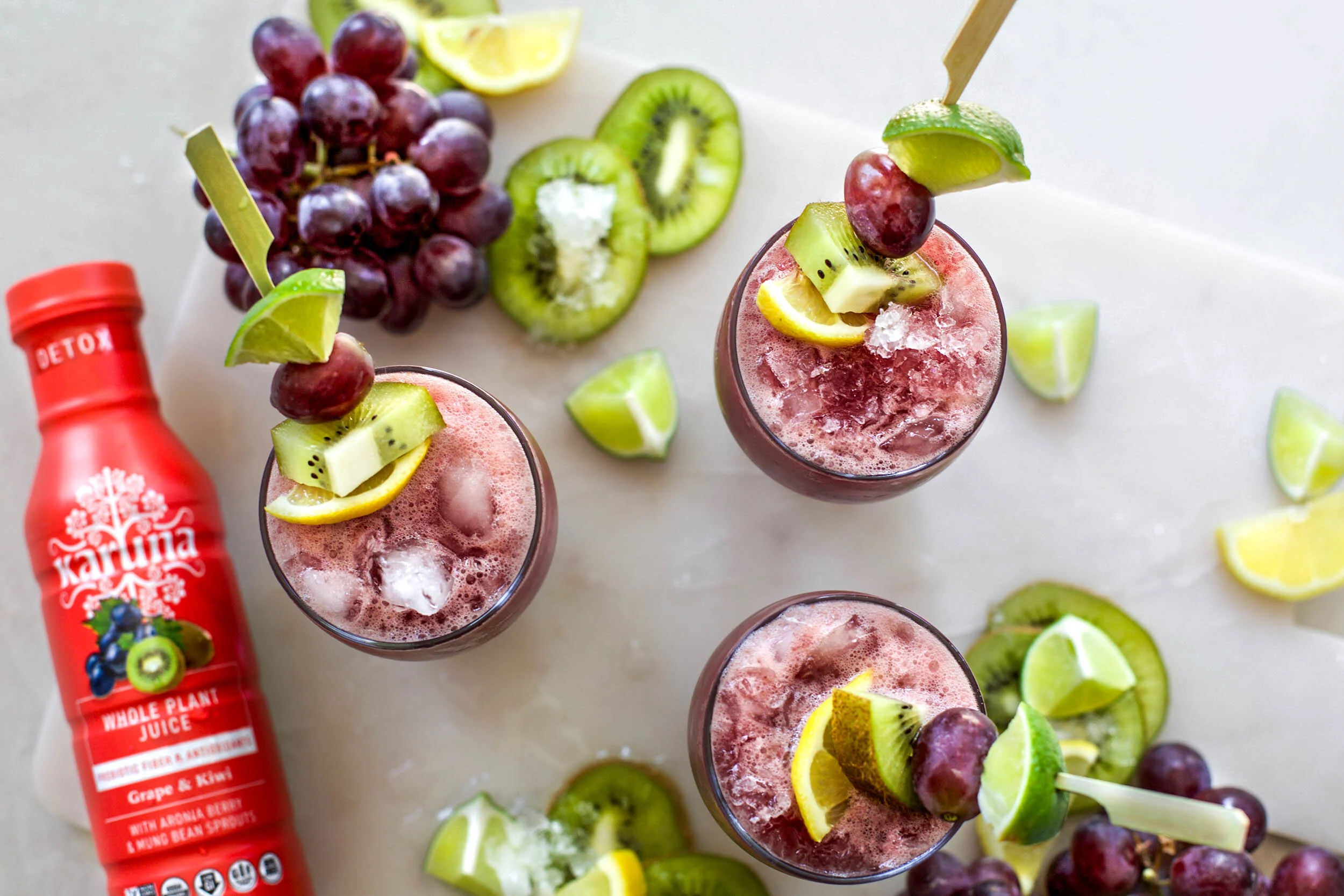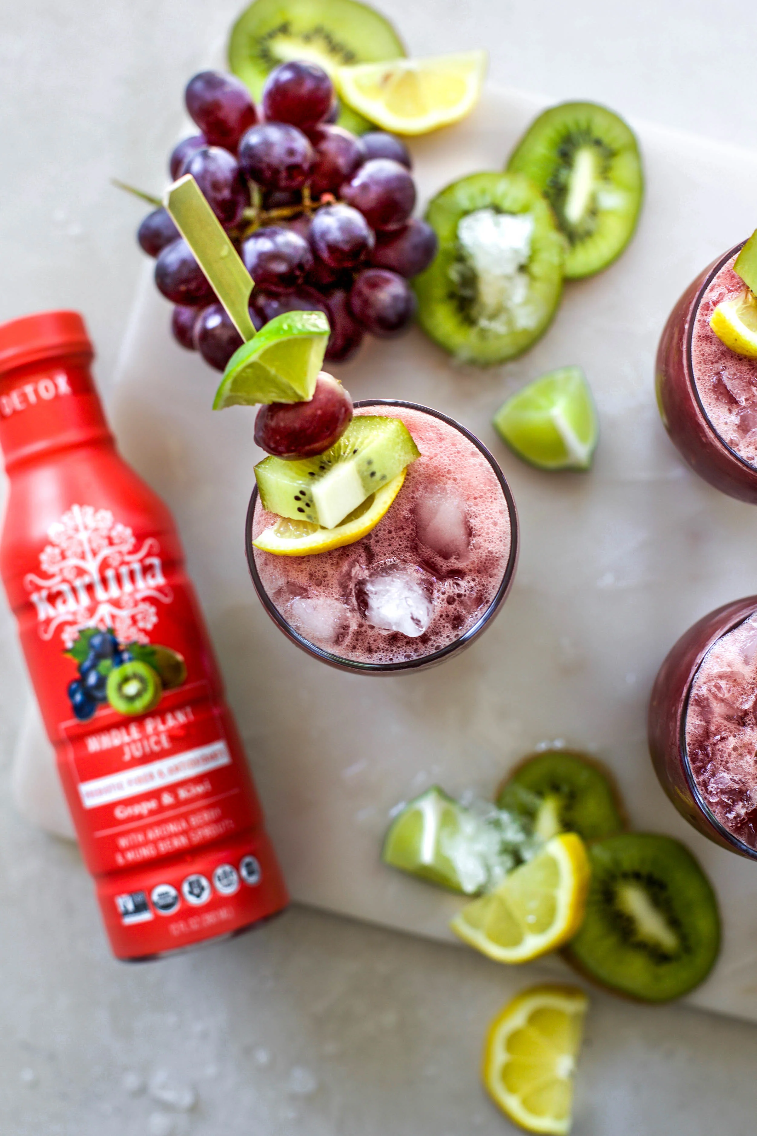 As we are approaching warmer weather, I am all about finding drinks that are hydrating but something other than water that are good for me too. I love agua frescas because it’s a drink that is made from fruit and so you get a few extra vitamins, it tastes great, and is perfect to keep in the fridge. That’s why I partnered up with my friends at Karuna to bring you an agua fresca recipe that is going to help your body detox along with giving it fuel it needs any day of the week. This recipe for detox grape and kiwi agua fresca is so refreshing and delicious, you are going to love making it to keep on hand in your refrigerator all season long.