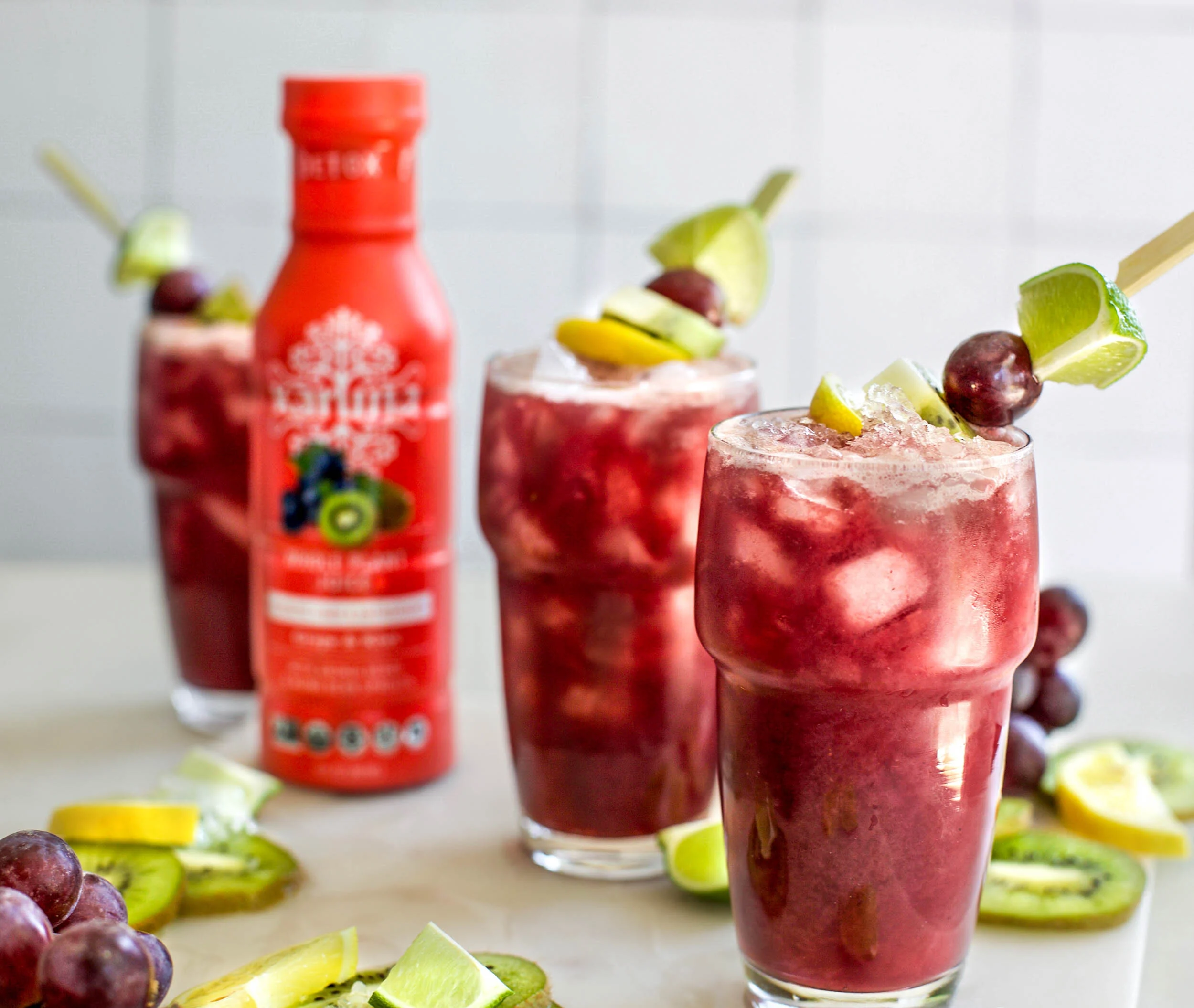 One of my favorite flavors is the detox drink which is made with kiwi, concord grapes, mung bean sprouts, and other ingredients that fuel your body. It’s delicious on it’s own, but I took it up a notch and added extra kiwi, grapes, lemon, and lime juice and turned it into a tasty agua fresca that you will love.