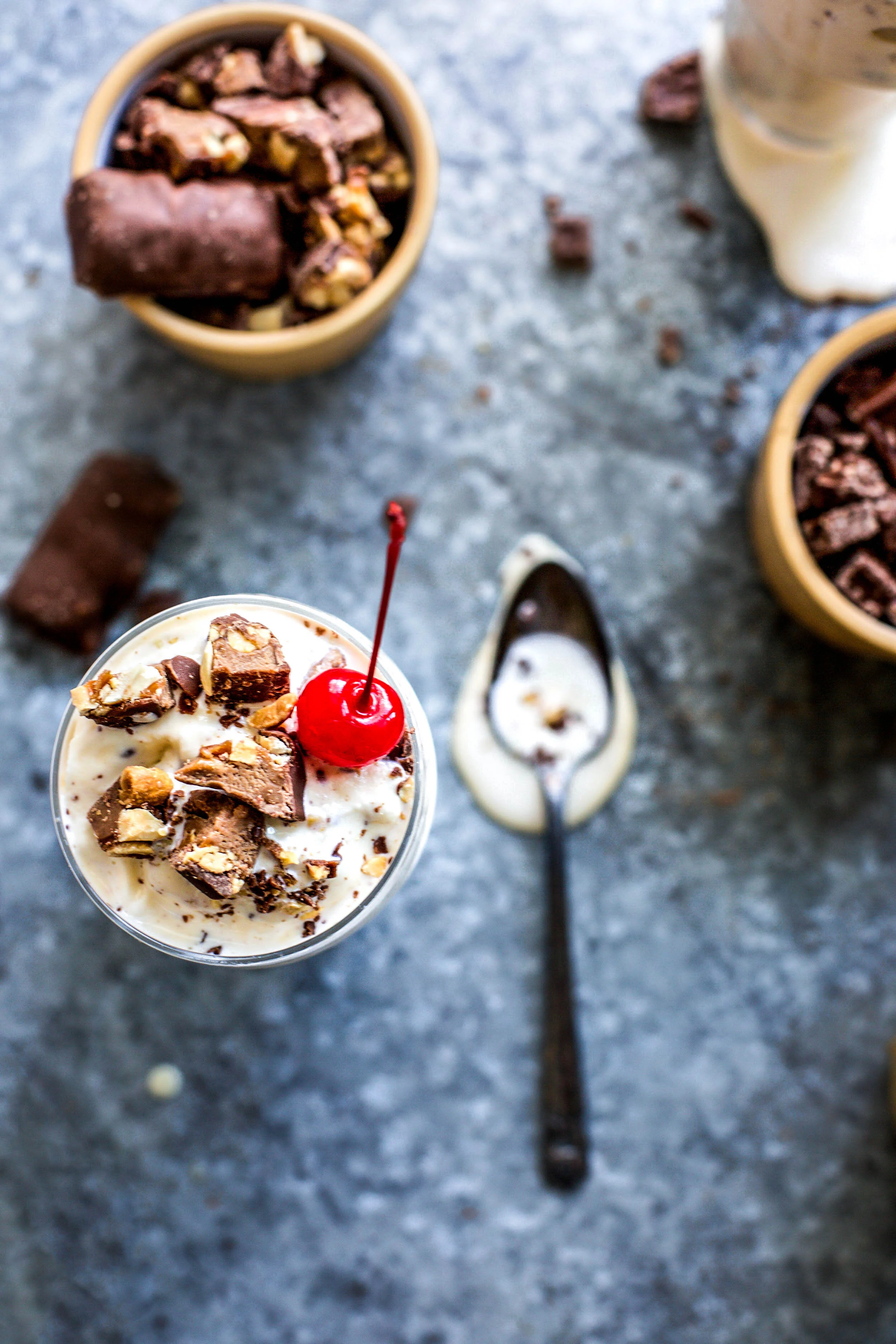 I am a Baby Ruth girl all the way because I love the new and improved recipe with dry roasted peanuts, caramel , and the chewy bite it has—whereas my hubby is a Butterfinger guy all the way. He loves the peanut-buttery flavor and the crispy texture that it gives the ice cream, and my son always goes for the Crunch® because he loves the classic chocolate flavor and crisped rice inside. I mean let’s be honest, I love them all, but I love the idea of a DIY bar where you can set all of the options up. Everyone gets to add as much or as little of the candy bars to their ice cream, before turning them into creamy flurries to be enjoyed by all!