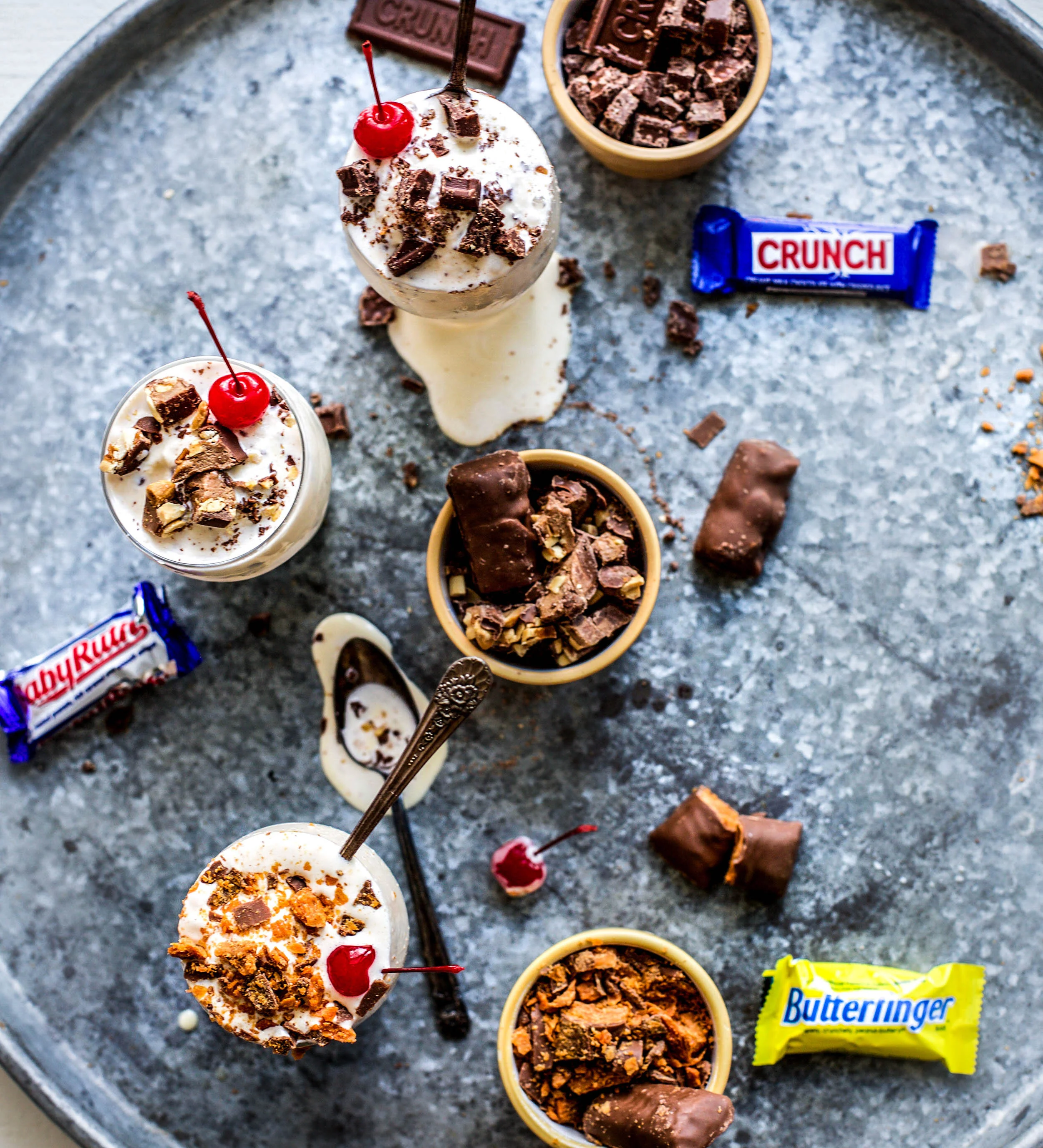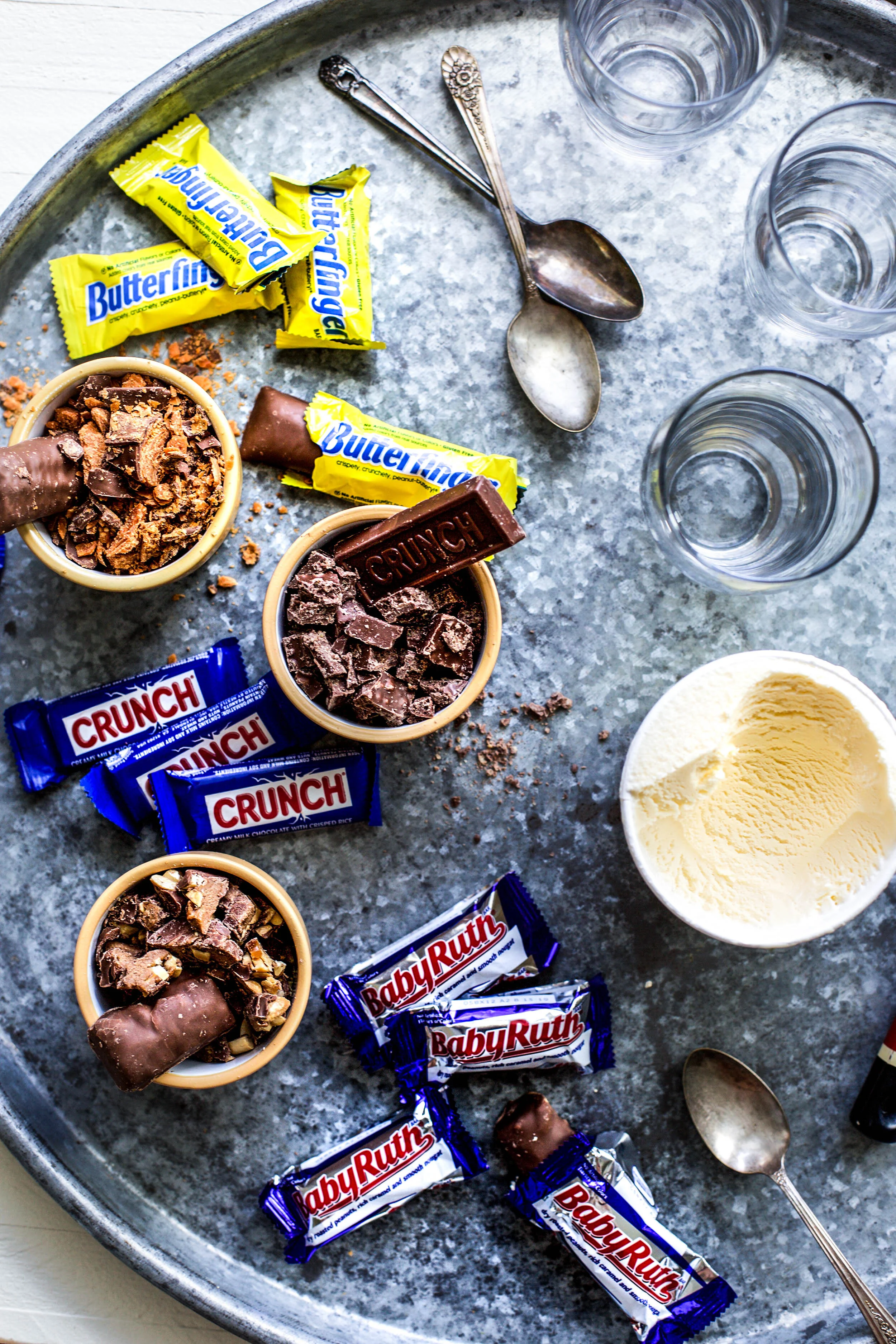 Summertime is here, and it’s that time of year where we enjoy more cool treats to help us survive the heat of the season. Ice cream is one of my favorite ways to stay cool, and my family is always on board with enjoying a frozen treat. I created a fun way to incorporate my favorite candy bars Butterfinger®, Crunch®, and Baby Ruth® into vanilla ice cream to make everybody happy all summer long. I love to create a DIY candy bar for homemade flurries where your family and friends can create their ultimate summer treat.