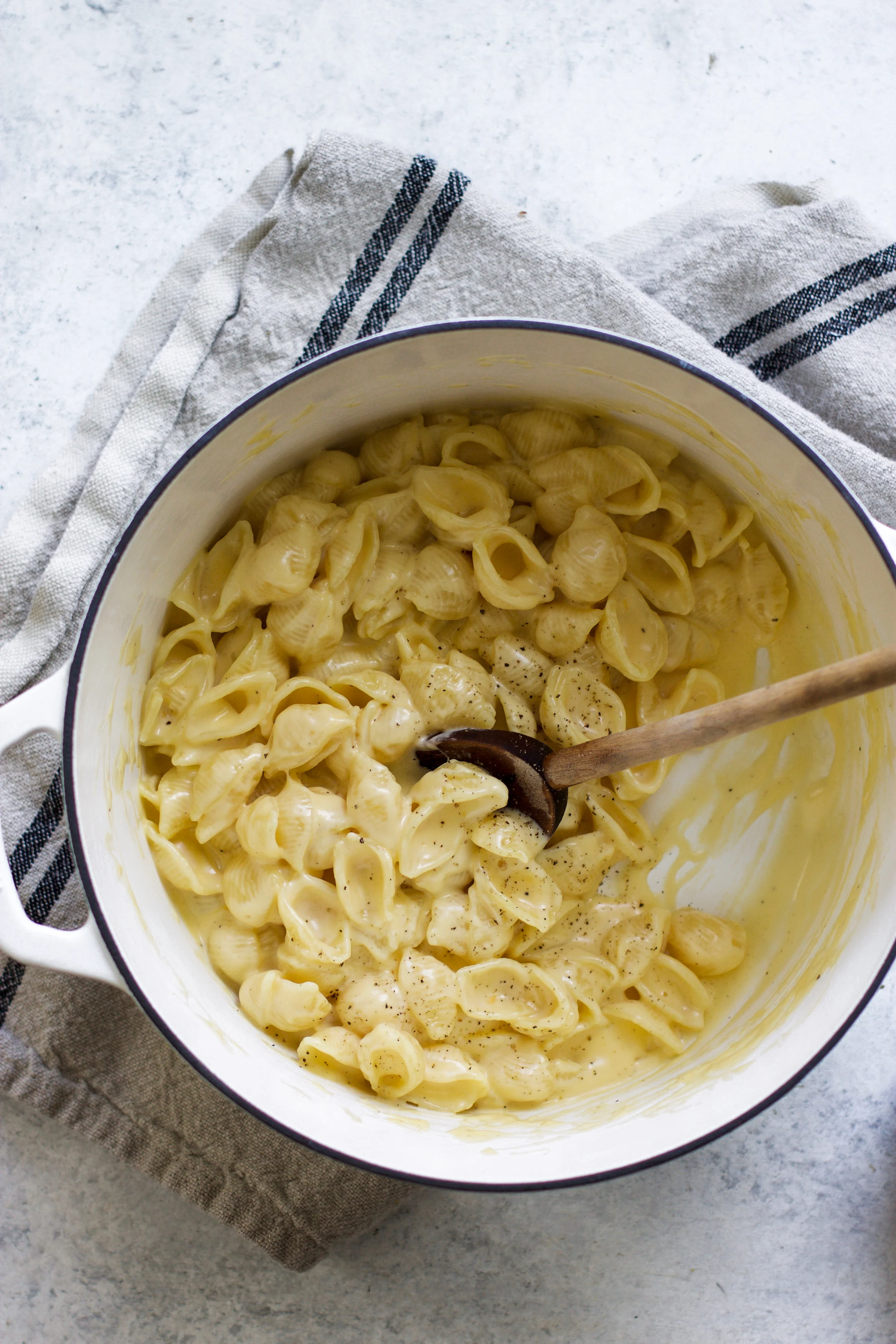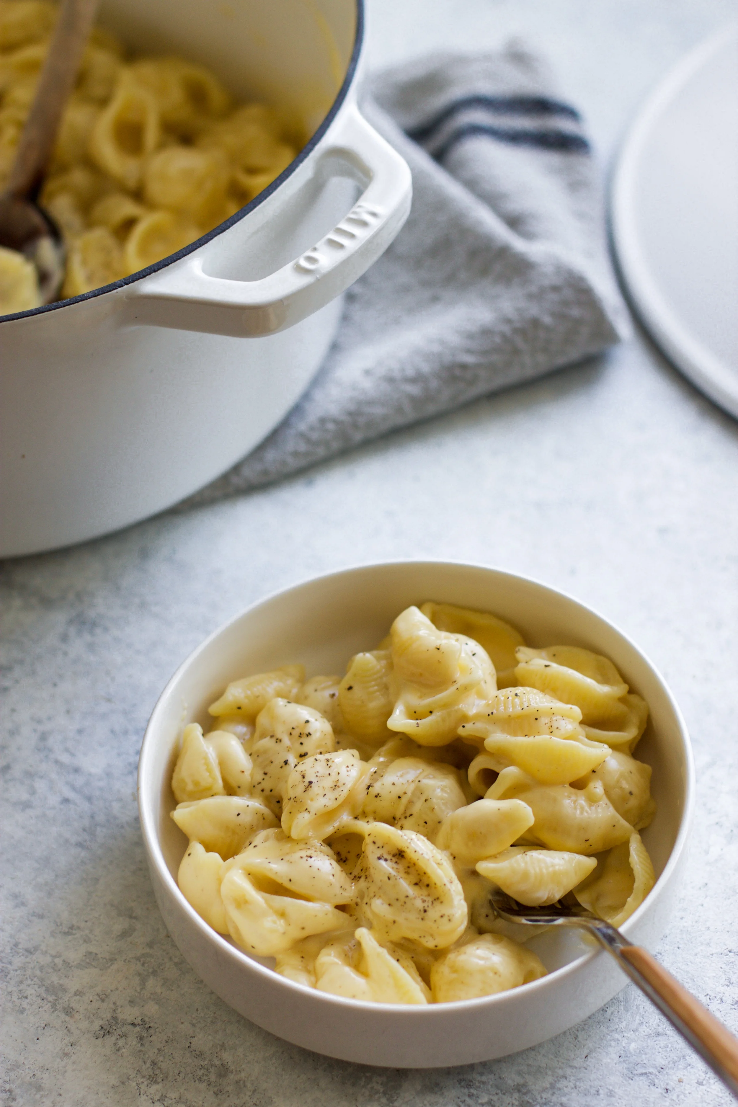 This recipe is delicious on it's own, but it also makes for a delicious side dish for any weeknight dinner or holiday table!  You are going to wonder how you didn't know about this method before now!  You can also make this mac-n-cheese gluten free by subbing regular pasta for your favorite gluten free version!  I love making a batch of this and then reheating leftovers for Parks' lunchbox the next day!  I will add peas to his for a little veg action to complete his lunch and it's way better than the instant kind you buy at the store!