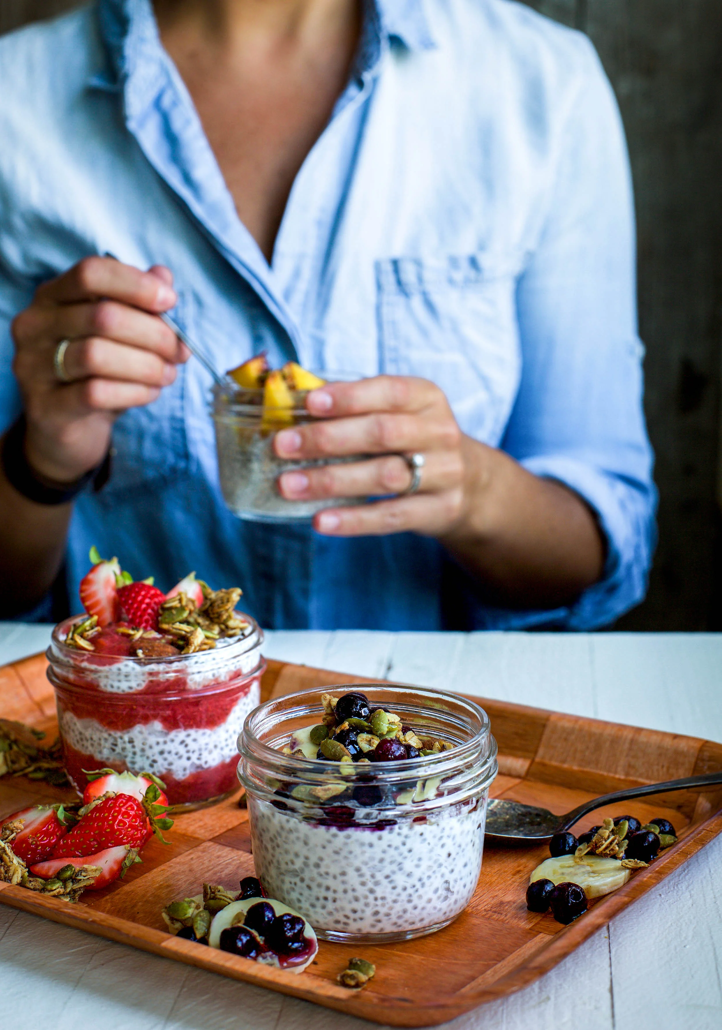With back to school starting for some this week, easy breakfasts that can be prepped in advance are essential for getting out of the door on time! I love to have ready to eat breakfasts in the fridge for the whole family because I have a kid who wakes up hungry and a hubby who takes his breakfast to go! Some days I get tired of overnight oats and eggs so switching it up to keep things interesting is key! Chia pudding is one of those breakfast that I tend to forget about and then when I remember, I go through a chia pudding phase where I can’t get enough! Currently I’m in that phase, and because it’s so easy, I created easy chia pudding (three ways) so that you can set yourself up for success in the mornings!